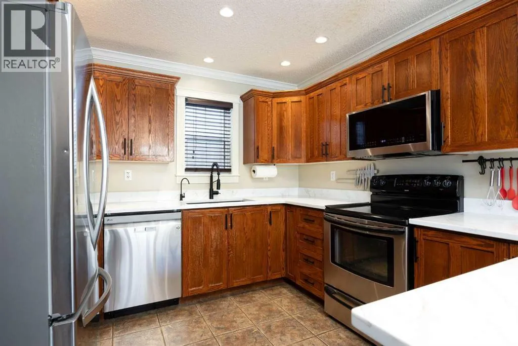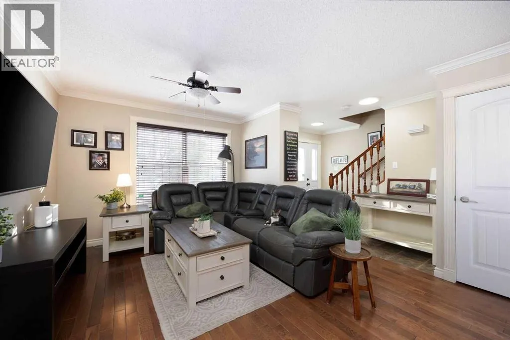 Welcome to 210 Grouse Way, a warm and wonderfully maintained home tucked onto a corner lot in the heart of Eagle Ridge where convenience meets comfort and every major update has already been taken care of for you.Step inside to a bright and inviting main level finished entirely in hardwood with no carpet in sight, creating a seamless and timeless feel. The kitchen is both functional and beautiful with rich wood cabinetry complemented by a brand new white quartz countertop installed in 2025, updated black fixtures in 2025, a new dishwasher, microwave and sink completed in 2025, plus a fridge and stove replaced in 2016. The adjacent dining area offers an eat up bar that overlooks the living room, making it the perfect place for morning coffee, homework sessions or hosting friends. A cozy gas fireplace gently defines the space between kitchen, dining and living areas while still maintaining that open, connected feel everyone loves. The main level also includes a convenient two piece powder room, infloor heat for added comfort and a heat pump with air conditioning wall unit installed in 2022 to keep things comfortable year round.Upstairs you will find three bedrooms including a spacious primary retreat complete with both a walk in closet and an additional secondary closet for extra storage. The four piece main bathroom was fully renovated in 2025 and offers a fresh, modern finish that feels straight out of a design magazine. Hardwood flooring continues throughout the upper level, reinforcing the clean, cohesive aesthetic of the home.The fully developed basement adds even more functional living space with vinyl plank flooring installed in 2024, a cozy family room accented with charming wainscotting, two additional bedrooms and a three piece bathroom that makes this level ideal for teens, guests or a growing family.Behind the scenes, the updates continue with a washer and dryer replaced in 2016, a water softener added in 2022, hot water on demand installed in 2023 and an attic insulation top up completed in 2022, all contributing to efficiency and peace of mind.Outside, the 20 x 26 detached garage provides excellent storage and parking and received a new garage door in 2021, with additional parking available beside. The backyard is ready for summer evenings with a deck and fire pit area that invite connection, laughter, and marshmallows under the stars.Situated on a corner lot in desirable Eagle Ridge, this home is just steps from schools, daycares, walking trails, shops, restaurants, the movie theatre, bowling alley, pubs, transit and more. 210 Grouse Way is the kind of home that feels good the moment you walk in and even better knowing all the thoughtful updates have already been done for you. (id:27476)