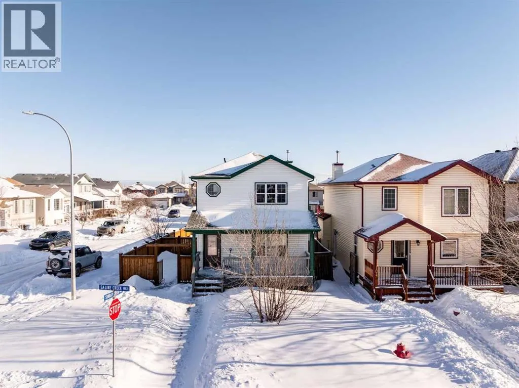 DOUBLE DETACHED HEATED GARAGE! CORNER LOT! SEPARATE ENTRANCE! Welcome to 100 Saline Creek Way, a fantastic opportunity offering space, functionality, and income potential. The main floor features a spacious living room designed to accommodate the whole family, beautifully accented by a cozy gas fireplace. The kitchen offers ample cabinet and counter space, stainless steel appliances, a convenient island, and a corner pantry, while the dining nook sits just off the kitchenâperfect for everyday meals and entertaining. Upstairs, youâll find three generously sized bedrooms, including a large primary retreat complete with a walk-in closet and a 4-piece ensuite. A second 4-piece bathroom completes the upper level. The basement features a separate entrance to an illegal suite offering two bedrooms, a full kitchen, separate laundry, and a 3-piece bathroomâideal for extended family or rental potential. Situated on a desirable corner lot, this property also boasts a heated double detached garage with additional side parking, plus a fully fenced and landscaped yard. Call now to book your personal showing! (id:27476)