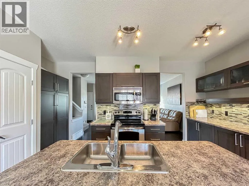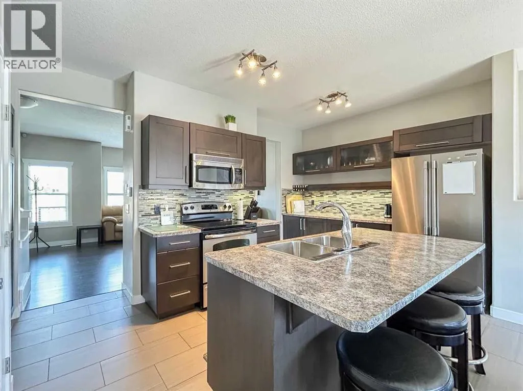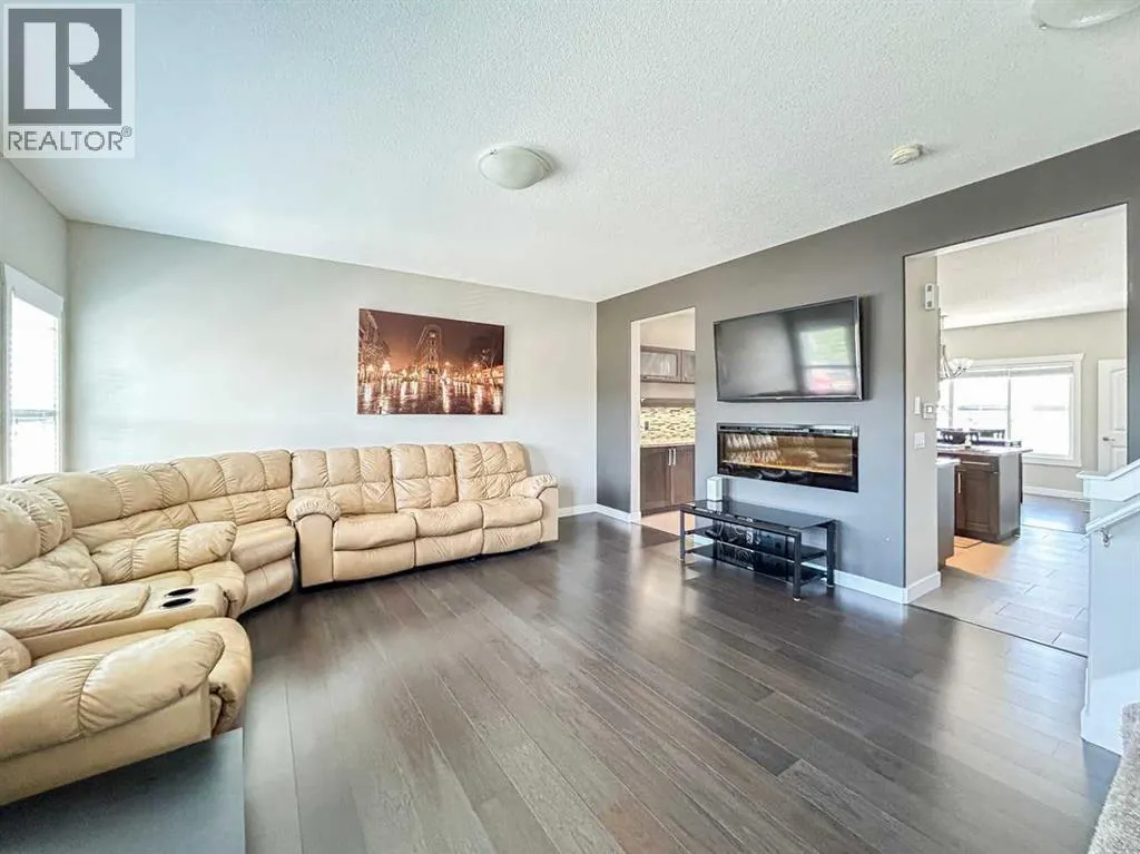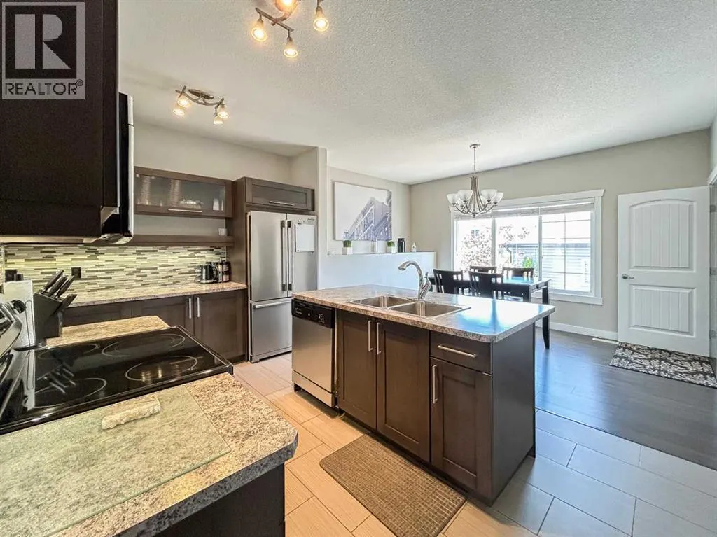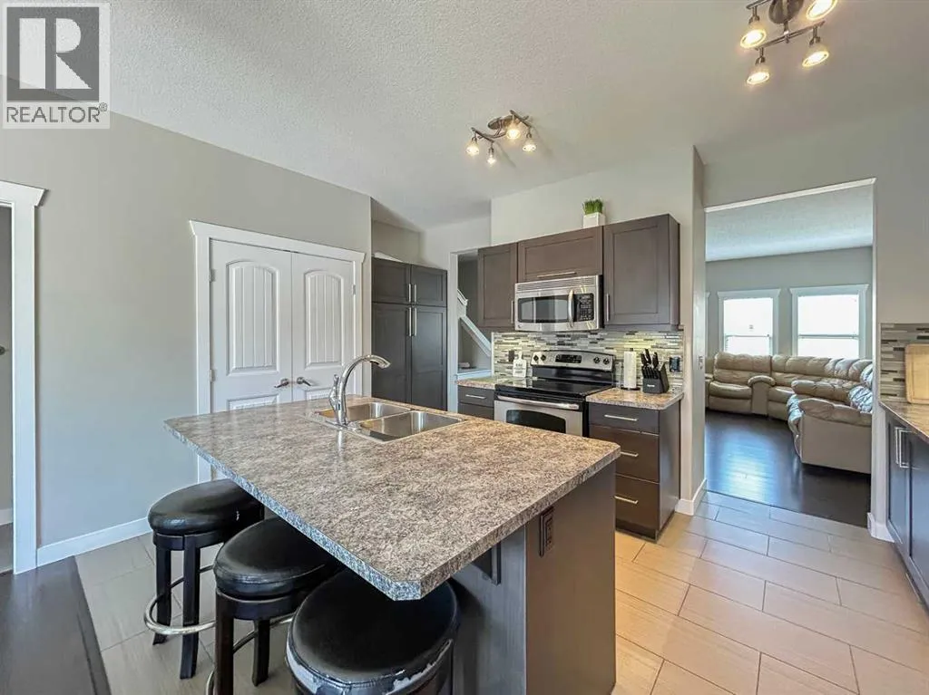 What a great location for this fully developed and turnkey home. Just bring your personal belonging and move right in! As you enter the home you are greeted by an open concept main floor with a large living room with gleaming hardwood floors and a Cozy gas fireplace there are lots of large windows to let in all the natural light. The eat in kitchen has S/S appliances, Island with breakfast bar and seating for 3. There is no shortage of storage in this home as it has loads of cupboards and counter tops, large pantry and large broom closet. This eat in kitchen has space for a full kitchen table. itâs the perfect place to entertain family and friends for Sunday dinner. There is a 2pc washroom on this level for your convenience as well. Up stairs we go to the second floor where you will find 3 bedrooms, and the master bedroom has a 5 pc ensuite with his and hers sinks. large walk-in closet and plenty of room for everything else you would need. The basement with its own separate entrance is fully developed to include a nice open concept floor plan, the living room has an electric fire place the perfect place to relax after a long day at work. The large bedroom has a over sized walk-in closet with a 3-pc bathroom. This home has recently been professionally cleaned and awaits new owners. Book your personal showing today! Bonus And for those hot summer night ahead there is Central A/C and Hot water on demand for those who love a long shower. This property is close to all the amenities you will need and the eagle ridge commons. Lots of great local eateries and night life close by. And 2 schools directly across the street for the little ones. Parks trails and ponds and biking trails. There is a double detached heated garage and 2 more parking stalls, private back yard with BBQ and patio and side gate with easy access to the side walkway. (id:27476)