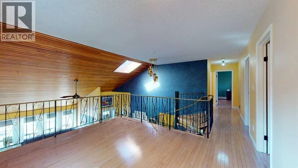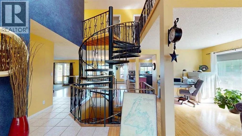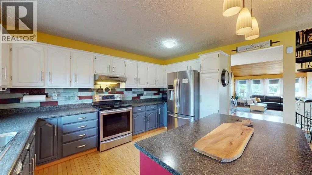 Beautiful & Unique Family Home â Designed for Comfort and Functionality!Welcome to this spacious and character-filled home that offers everything your family needs and more. With no carpet throughoutâfeaturing hardwood, ceramic tile, and laminate flooringâthis home is both stylish and low-maintenance.The heated double garage provides convenience year-round, while the inviting open-concept main floor is perfect for everyday living and entertaining. Enjoy the vaulted ceiling and wood-burning fireplace in the bright living room, which flows seamlessly into a versatile formal dining room or home office.The kitchen is a chefâs dream, with plenty of cabinetry, a central island with storage and a breakfast overhang, and views of both the dining area and the cozy family roomâcomplete with a second wood-burning fireplace. The main floor also includes a 2-piece powder room and laundry room for added convenience.Upstairs, the primary bedroom features a private balcony with scenic views, a large closet, and a luxurious 5-piece ensuite with jetted tub and dual sinks. Two more generously sized bedrooms, a main 5-piece bathroom, and a bonus loft area ideal for a reading nook, play space, or office complete the second level.The finished basement offers even more space with a rec room, a fourth bedroom with a walk-in closet, a 3-piece bathroom, a sauna, and a huge storage room that could easily be converted into additional living space.Step outside to an enormous fenced and landscaped yard thatâs ready for family fun. Thereâs a large deck, oversized shed, and plenty of room for a garden, trampoline, pool, and moreâtruly a backyard with endless possibilities!This unique and well-loved home is a rare findâoffering both space and flexibility for families of all sizes. (id:27476)