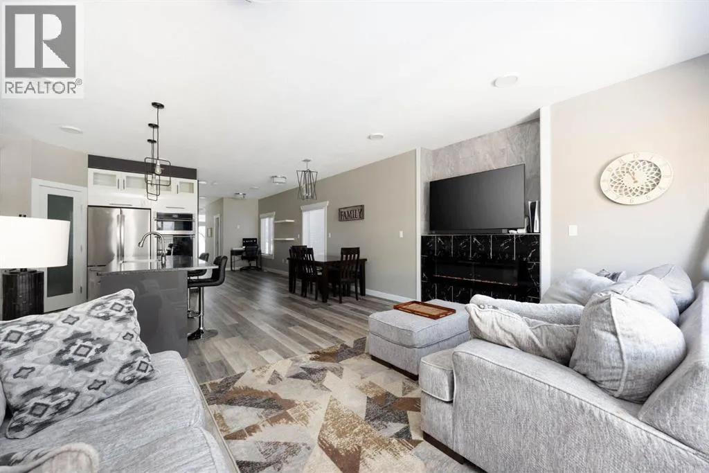 Welcome to 221 Shalestone Way - a beautifully finished home offering the perfect blend of modern design, functional space, and everyday comfort in the heart of Stonecreek! From the moment you step inside, you are greeted by a bright and inviting entryway with elegant detailing that sets the tone for the rest of the home. The main floor showcases a stunning open-concept layout with durable vinyl plank flooring throughout (no carpet home), large windows, and a seamless flow between the living, dining, and kitchen areas. The kitchen is a true highlight, featuring sleek two-tone cabinetry, quartz countertops, stainless steel appliances, and a large central island with seating that anchors the space. Stylish pendant lighting and clean, modern finishes elevate the overall design, while the layout makes it ideal for both entertaining and daily living. The kitchen opens directly into the spacious dining area and living room, where a striking feature fireplace wall creates a warm and cozy focal point. Also on the main floor is a versatile flex space near the front of the home, perfect for a home office, study area, or additional sitting space, along with a convenient powder room. Upstairs, youâll find a thoughtfully designed layout that includes a spacious bonus room, ideal for family movie nights, a play area, or an office space. You'll be wowed by this primary bedroom, which offers a true retreat, complete with a cozy reading nook as you enter, creating the perfect space to unwind. The ensuite features his and hers sinks, a corner tub, and is complemented by a spacious walk-in closet that provides ample storage. Two additional bedrooms share a bathroom which also offers dual sinks, making it both functional and convenient for busy households The fully developed basement extends your living space even further, offering additional bedrooms, a full bathroom, and a large recreation area that can easily adapt to your lifestyleâwhether for entertaining, relaxing, or accommodatin g guests. Outside, youâll appreciate the large, fully fenced and landscaped backyard, perfect for summer enjoyment and outdoor living. With its modern finishes, thoughtful layout, and move-in ready condition, this home offers exceptional value in a desirable location close to schools, parks, walking trails and everyday amenities that Stonecreek has to offer! Call to book your viewing today! (id:27476)