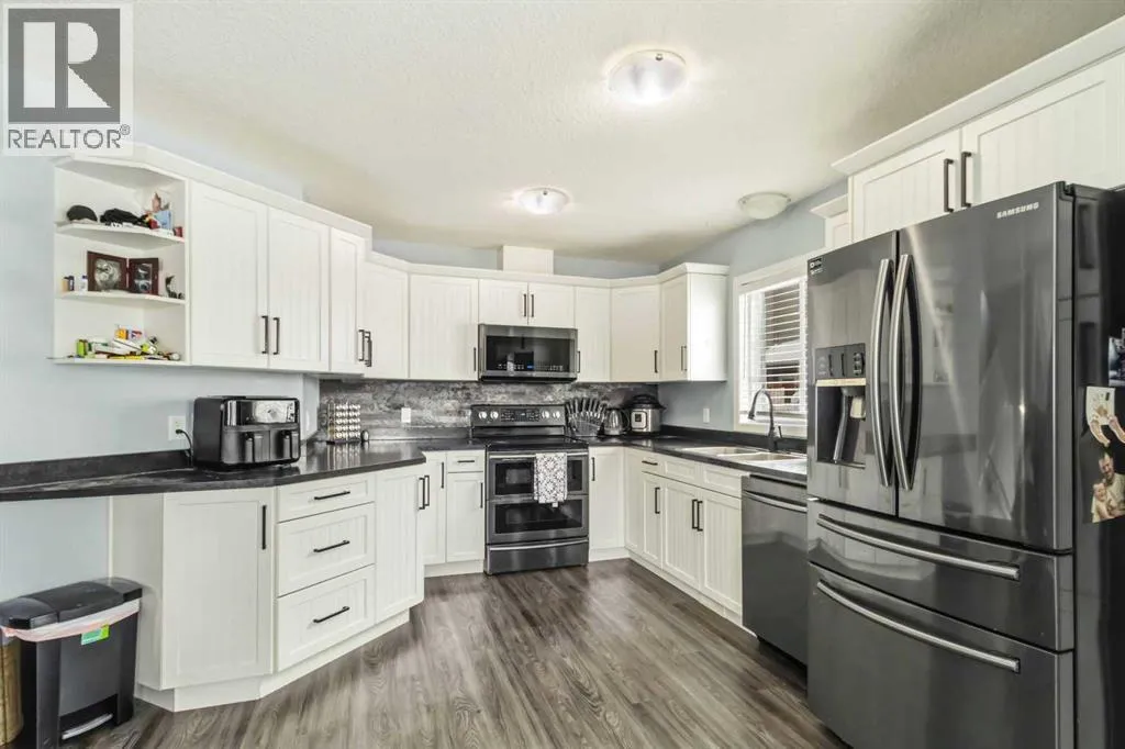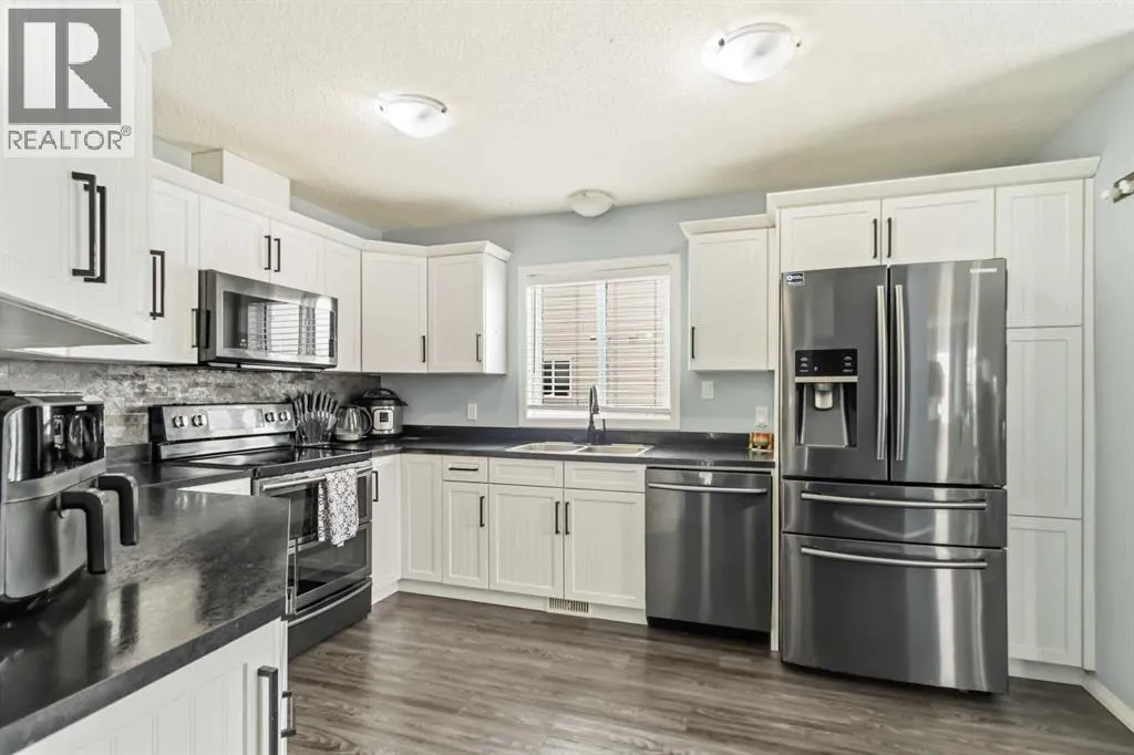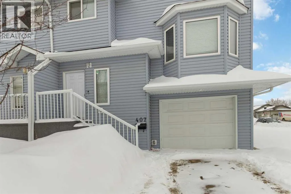 Welcome to 104 Loutit Road Unit 407 in the sought-after Lakewood Townhomesâan exceptional corner unit offering space, style, and versatility in the heart of Timberlea.This beautifully designed home features 2 bedrooms, 2.5 bathrooms, and a functional layout that appeals to both homeowners and investors alike. Coming up from the foyer, youâre welcomed by a bright, open concept main floor with durable vinyl flooring throughout. The spacious living room is filled with natural light from a charming bay window and anchored by a cozy gas fireplace, making it perfect for entertaining. The adjoining dining area offers lovely views and direct access to the balcony, creating a seamless indoor-outdoor flow.The kitchen is both stylish and practical, with ample counter space and crisp white cabinetry complemented well by elegant black stainless steel appliances. The double-oven stove and 4-door fridge are such a great plus for those who love to cook and host. A convenient 2-piece powder room completes this level.Upstairs, youâll find two generously sized bedrooms, each featuring its own private 4-piece ensuite, which is a rare and highly desirable feature for comfort and privacy. A dedicated upper-level laundry area adds to the homeâs functionality.The fully developed basement with a separate entrance provides even more flexibility, offering a spacious recreation room and an additional area perfect for a home office, gym, or playroom, making the whole space ideal for modern living or potential for added financial flexibility. Additional highlights include central air conditioning, a single attached garage, and driveway parking.Located close to parks, playgrounds, schools, shopping, and walking trails, this property offers convenience, comfort, and strong investment potential in one of Fort McMurrayâs most desirable communities.Whether youâre looking for your next home or a smart investment, 104 Loutit Road Unit 407 is a rare opportunity you wonât want to miss. Chec k out the photos. floor plans and 3D tour, and call today to book your personal viewing. (id:27476)