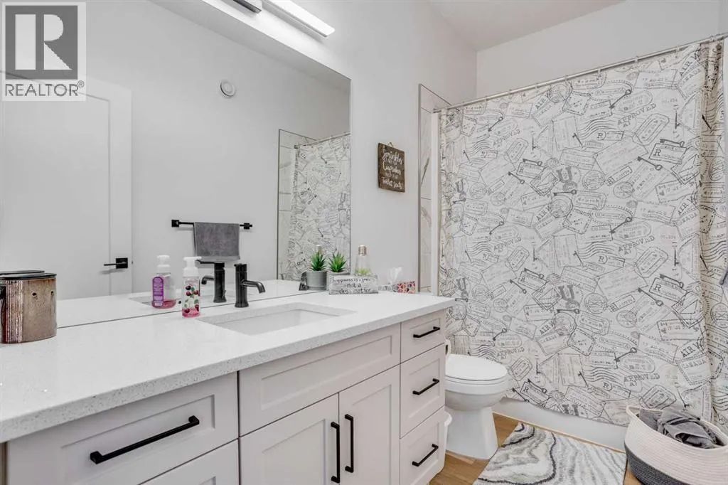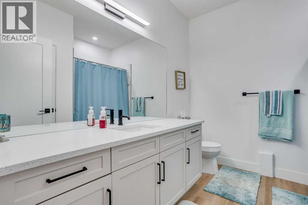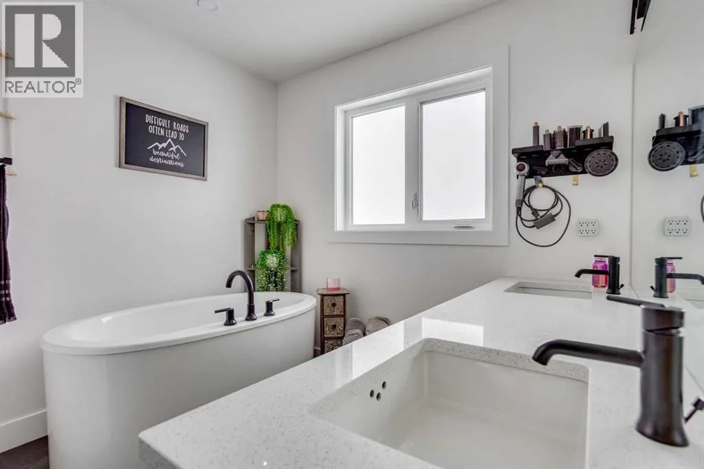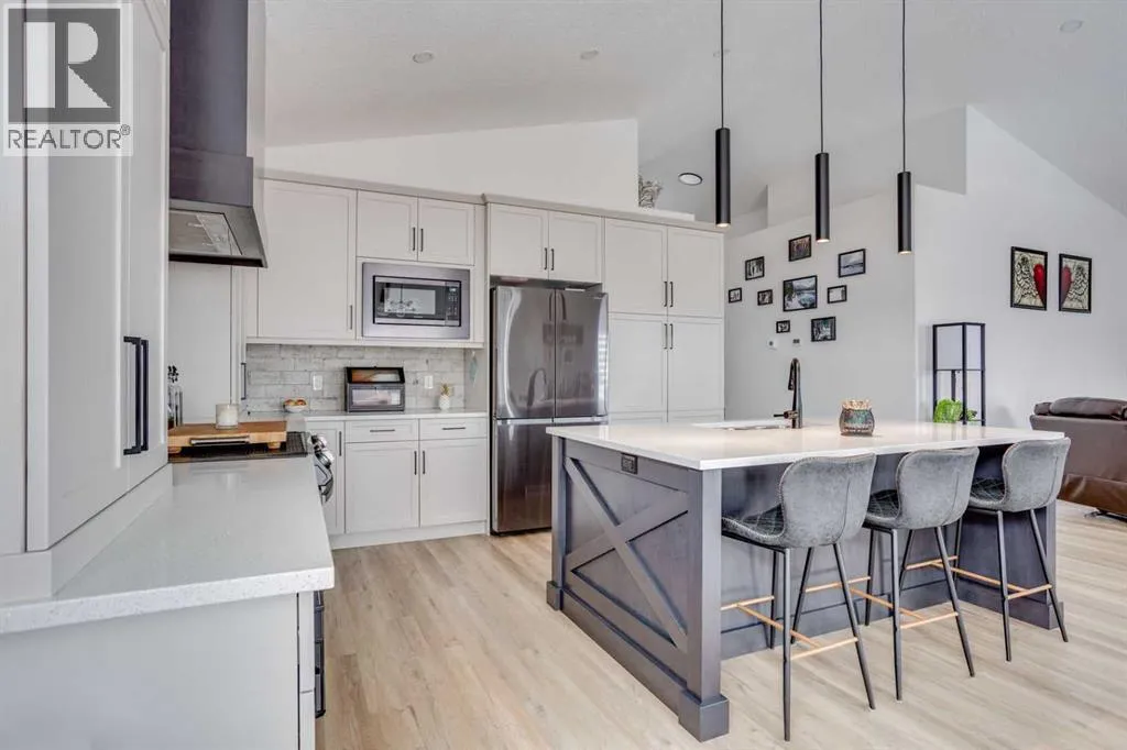 TRIPLE CAR ATTACHED DRIVE-THROUGH GARAGE! 2021 BUILT HOME! Welcome to 404 Beacon Hill Drive, a beautifully designed modified bi-level that immediately impresses with its spacious foyer offering direct access to the triple attached heated garage and a generously sized laundry room. The main level features a truly standout kitchen complete with stainless steel appliances, a beautiful custom hood fan, and an abundance of quartz countertops, highlighted by a massive island that anchors the space and provides ample prep and seating area. The kitchen flows seamlessly into the bright and inviting living room, where a sleek linear gas fireplace and modern feature wall create a warm yet contemporary focal point. The dining area easily accommodates the whole family and provides access to the back deck overlooking the fully fenced and professionally landscaped yard (see summer photos). This level is finished with two spacious secondary bedrooms and a full 4-piece bathroom. Privately situated above the garage, the primary bedroom offers a peaceful retreat with a large walk-in closet and a luxurious 5-piece ensuite featuring a soaker tub, dual sinks, and a custom shower. The fully developed basement is designed for entertaining, boasting a large rec room complete with a wet bar and wine fridge area, along with a fourth bedroom, an additional 4-piece bathroom, and plenty of storage space. The basement ceiling also has a sound bar installed to cut down on noise to the rest of the home. The triple car garage is equally impressive with epoxy flooring, forced air heating, and convenient drive-through access to a rear parking pad. Situated across from a tree-lined area and close to schools and amenities, this home also includes central A/C and ample parking, making it the complete package. Call now to book your personal showing. (id:27476)