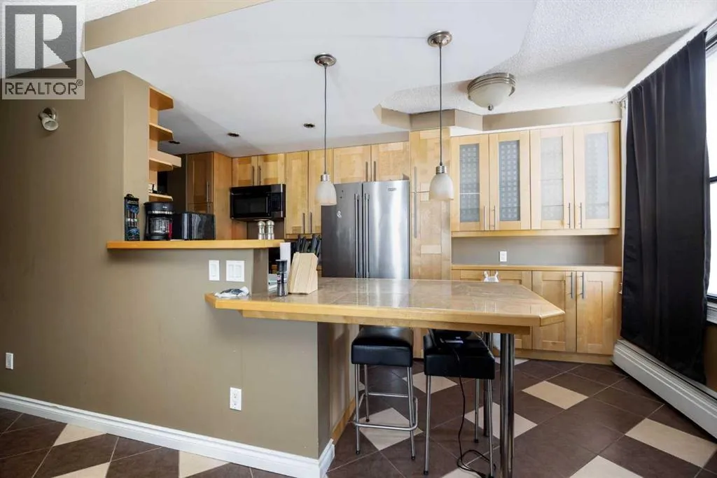 This stunning 2-bedroom condo unit in this concrete building and now available for sale! Located on the 4th floor of a high-rise with concrete construction, this fully renovated gem youâll love the upgraded kitchen with modern finishes and easy-to-clean flooring. Step out onto your private balcony to enjoy beautiful views of the city. Prime Downtown Location, Steps away from downtownâs core with easy access to shops, restaurants, and entertainment! On-site gym available for your convenience. Includes 1 parking stall in the open parkade. This condo has it allâstyle, convenience, and unbeatable views. Donât wait, this one wonât last long! Schedule your showing today and make this downtown dream yours! (id:27476)