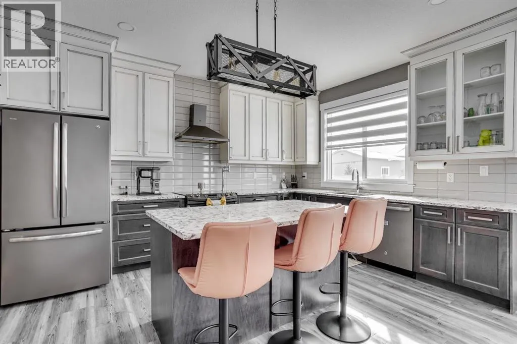 Welcome to 144 Beaverlodge Close â a stunning, custom-built two-storey home offering over 2,659 sq ft of thoughtfully designed living space, complete with a fully legal 2-bedroom suite. Built in 2017 and located in the quiet, established neighbourhood of Beacon Hill, this exceptional property combines modern style, functionality, and income potential.The main level features durable vinyl plank flooring, soaring ceilings, and large windows that flood the space with natural light. A spacious front entry welcomes you into the home, alongside an oversized office perfect for working from home. The living room is highlighted by impressive cathedral ceilings and a beautiful stone-surround fireplace with a wood mantel, creating a warm and inviting atmosphere.The modern kitchen is a showstopper, boasting two-tone cabinetry, a grey subway tile backsplash with pot filler, stainless steel appliances, quartz countertops, a large island, and a generous pantry complete with a rustic barn door.The main floor primary bedroom offers convenience and luxury, featuring a 5-piece ensuite with dual sinks, a modern soaker tub, stand-up shower, and a large walk-in closet. An additional adjoining room provides flexibility and could easily be converted into a second oversized walk-in closet. Main floor laundry adds to the homeâs practicality.Upstairs, youâll find two spacious bedrooms, each with its own walk-in closet, connected by a Jack & Jill bathroom featuring dual sinks, quartz countertops, and ample storage. The upper-level family room is wired for a projector (included) and surround sound, with additional space for relaxation or entertainment.A portion of the fully developed basement is accessible from the main home and includes a large recreational area, one bedroom, and a 4-piece bathroom. The separate entrance leads to the bright and spacious 2-bedroom legal suite, complete with its own kitchen, living area, full bathroom, and private laundry where the current tenants are payin g $1550.00 per month. Additional highlights include central air conditioning for year-round comfort and a 22x20 concrete pad ready for a future garage.If youâre looking for a home that offers space, style, and versatility, this impressive property is a must-see. Book your private showing today! (id:27476)