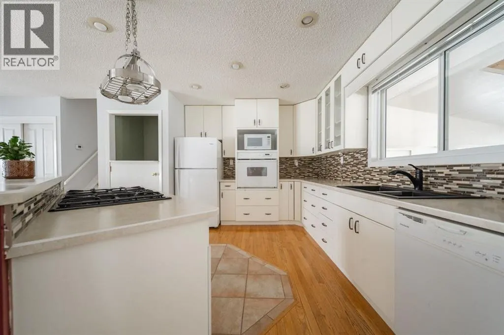 Open House Saturday March 28th 1:00pm-3:00pm | Welcome to 106 Becker Crescent, a beautifully updated four level split located in the heart of Dickinsfield, just steps from trails, schools, parks, and surrounded by a wonderful sense of community. Lovingly owned since 2013, this home has seen extensive upgrades inside and out, offering both comfort and long term value.The exterior has been thoughtfully improved with durable upgrades including an aluminum roof installed in 2015 with a long life expectancy, updated siding, fascia, eaves, and front door completed in 2018. The property offers exceptional parking with a double front driveway, tandem side parking, RV space, and room for up to five or six vehicles, along with a detached garage that is finished, insulated, heated, and features 10 foot ceilings, making it an ideal workshop.Inside, the home offers a bright and open main level with hardwood and tile flooring and fresh paint completed in 2026. The kitchen features white cabinetry, tile backsplash, an eat up island, a JennAir gas cooktop with downdraft, built in oven, and large picture windows that fill the space with natural light.Upstairs, you will find three bedrooms and a four piece bathroom that was updated in 2016 with a new vanity, tub surround, flooring, and toilet. The primary bedroom includes a two piece ensuite, also updated in 2016, and offers space for a king sized bed.The first of the two lower levels features a spacious family room with large windows and a gas fireplace, along with a three piece bathroom that was updated in 2015. The lowest level includes a fourth bedroom with built in cabinetry and additional storage space, as well as a large storage room with a built in workbench and laundry. The hot water tank was replaced in 2025, adding peace of mind.The backyard is a standout feature, offering a large sunny space with a three season sunroom, an apple tree, lilac bushes, raised garden boxes, and two storage sheds. The yard is fenced a nd offers a peaceful setting to enjoy throughout the seasons.Located in a charming neighbourhood known for its strong sense of community and great neighbours, 106 Becker Crescent offers space, updates, and a lifestyle that is hard to match. Schedule your private showing today. (id:27476)