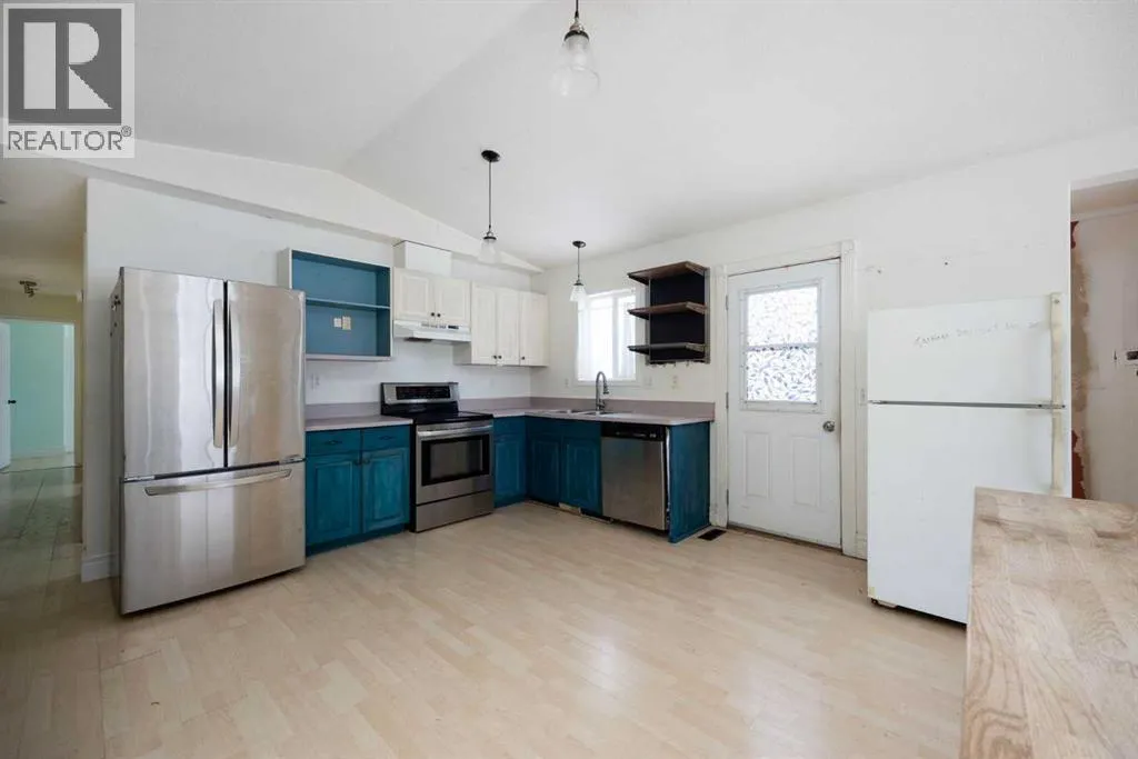 Investor and first time home buyer Alert! â Corner Lot Opportunity with Huge Potential!Welcome to this fully finished home situated on a desirable corner lot, offering excellent value for buyers ready to add their personal touch. The property features a fully fenced yard with both side and rear outdoor spaces, including a spacious side deck and an additional large deck off the oversized shedâperfect for storage, a workshop, or even your summer toys.Inside, youâll find a functional open-concept main floor with a generous living room highlighted by a cozy corner fireplace. The layout includes two well-sized bedrooms and convenient side-door access to the backyard. The lower level is developed with newer grey laminate flooring, a large family room, and a dedicated laundry areaâproviding plenty of additional living space.With ample parking in the front and extra storage in the oversized shed, this property checks the boxes for practicality and future upside. Whether you're a first-time buyer looking to build equity or an investor seeking your next project, this home offers undeniable potential.Property is being sold âas is, where is.â All schedules must accompany any offer. (id:27476)