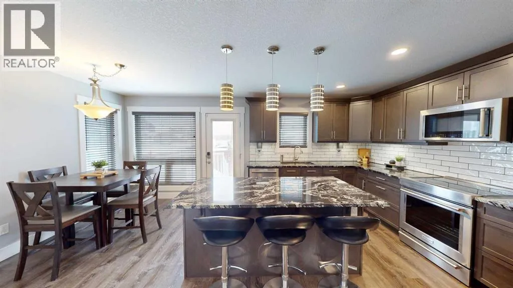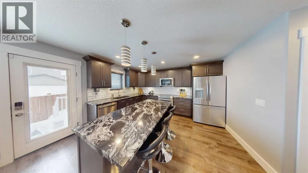 Step into a home that feels truly brand newâwhere every finish is seamless, every upgrade is intentional, and every space has been thoughtfully designed for modern living. Built in 2019 and offering over 1,400 sq ft above grade plus a fully finished basement, this 4-bedroom, 4-bathroom home delivers style, function, and flexibility in one of Fort McMurrayâs most loved neighbourhoods.From the moment you enter, youâll notice the consistency and careâcontinuous laminate flooring flows throughout the entire home, paired with flawless paint that shows like new with no dings or wear. The main level is warm and inviting, anchored by a gas fireplace and enhanced with smart lighting that brings both convenience and ambiance. The kitchen is a standout, featuring granite countertops, stainless steel KitchenAid appliances, an induction range, convection oven, over-the-range microwave, under-cabinet lighting, and a pantry for added storage and everyday functionality.Upstairs offers three well-appointed bedrooms, including a spacious primary retreat complete with a walk-in closet and private ensuite. The fully finished basement expands your living space with a fourth bedroom, full bathroom, dedicated laundry room with steam washer and dryer, and a stylish wet bar with wine fridgeâperfect for entertaining or creating your own cozy escape.Outside, the home continues to impress with a large covered front porch, a fully fenced backyard, and a deck complete with a gas BBQ lineâideal for summer evenings and weekend gatherings. With two parking spaces and room to build a future garage, thereâs flexibility here to grow with your needs.Located in the quiet, family-friendly community of Abasand, this home is just steps from greenspace, trails, parks, and schools, while also offering quick access to downtown amenities, shopping, and the hospital. Situated along a bus route and in an area known for ATV access, this location offers a unique blend of convenience, lifestyle, and outdoor connection that buyers love.This is the kind of home you walk into and instantly feelâitâs been cared for, upgraded, and ready for its next chapter. (id:27476)