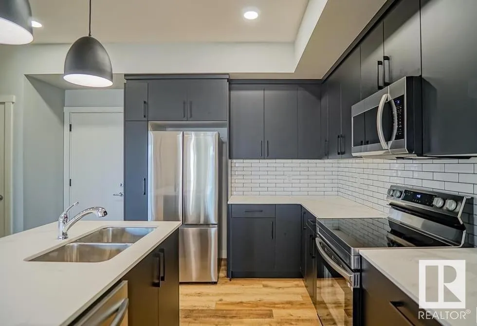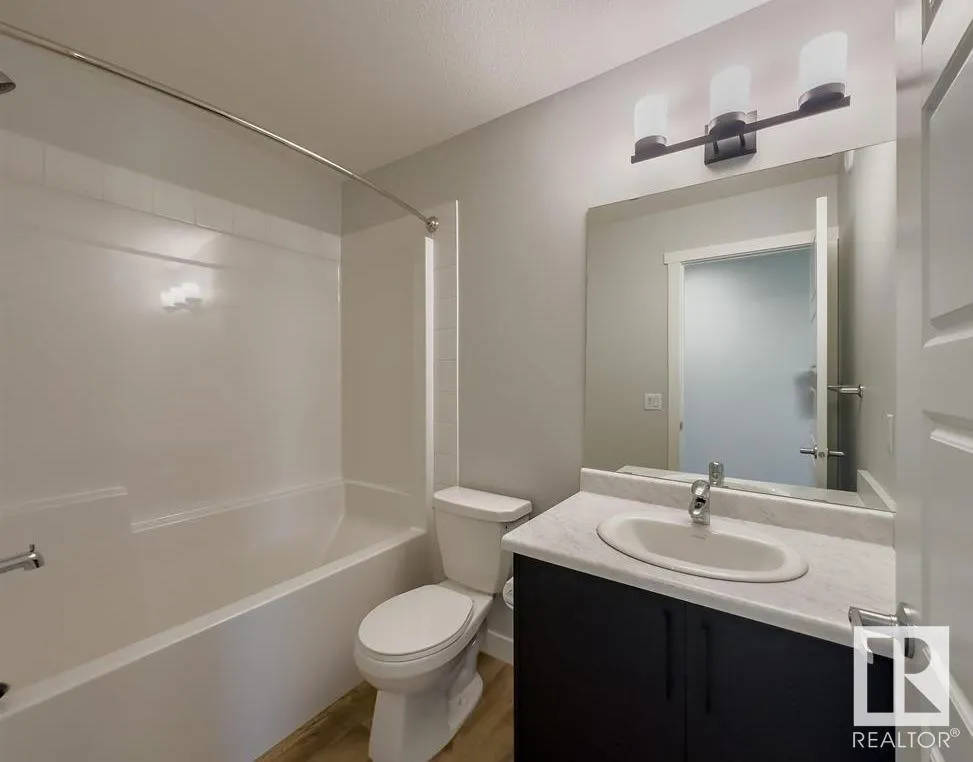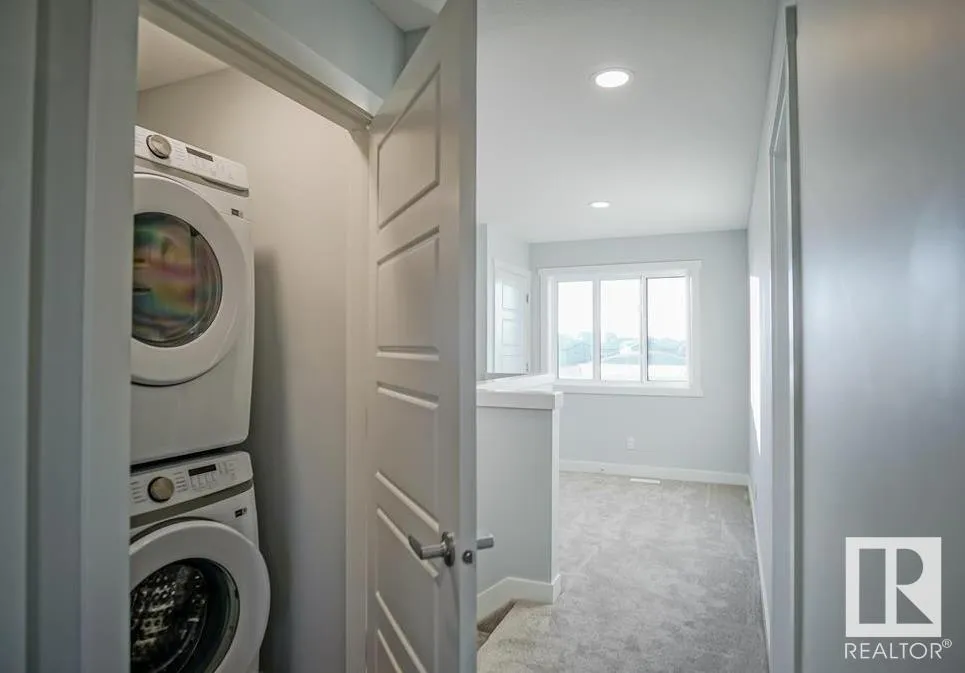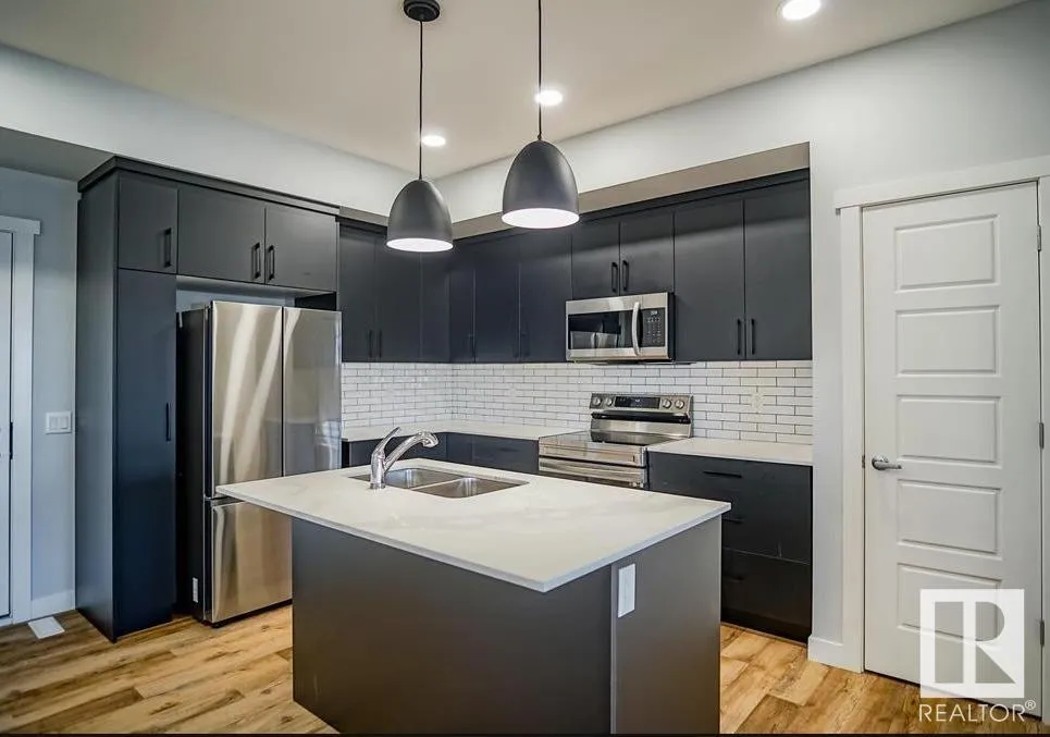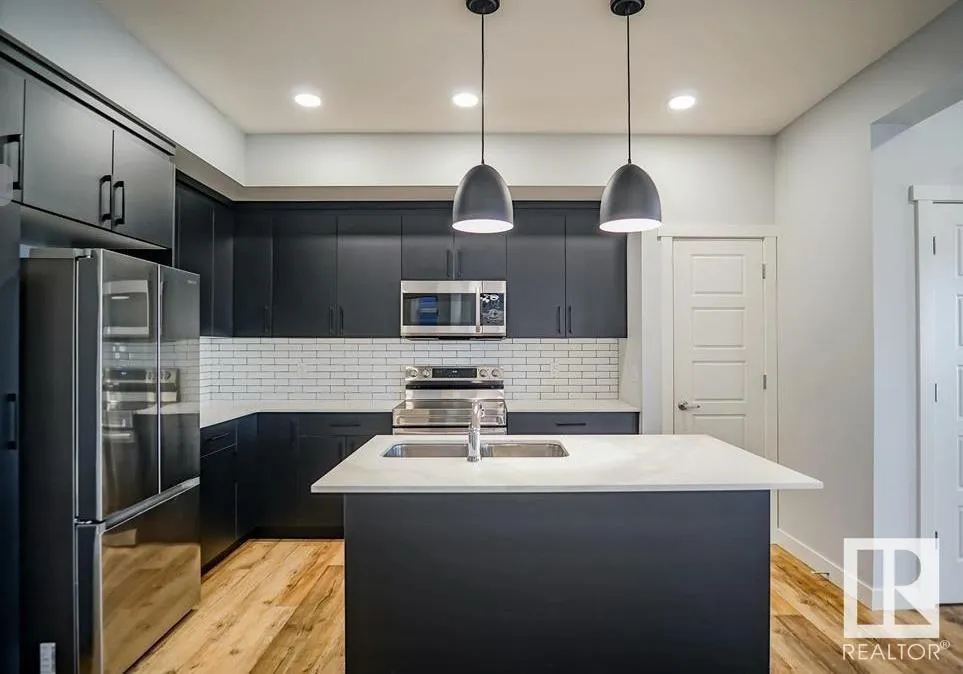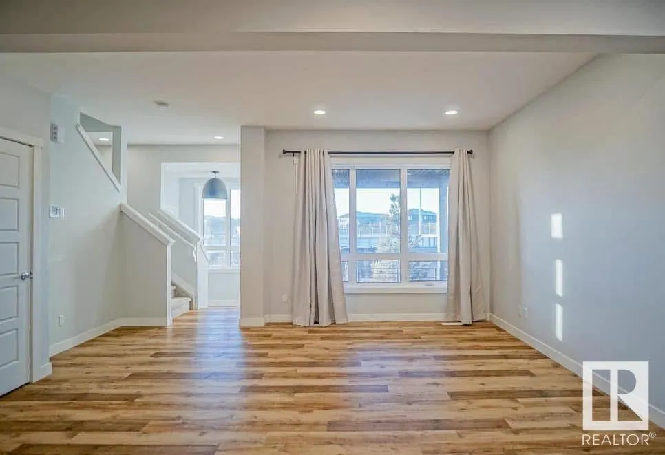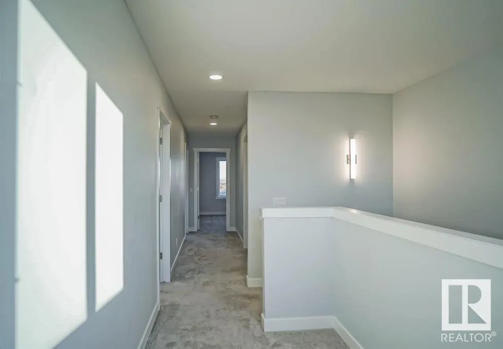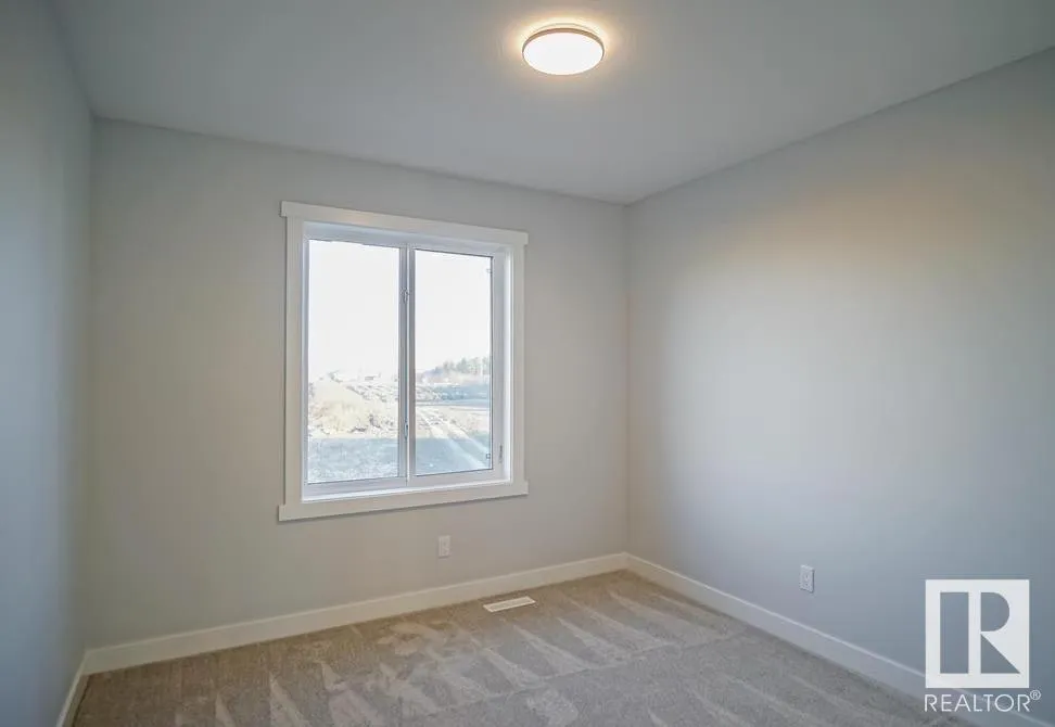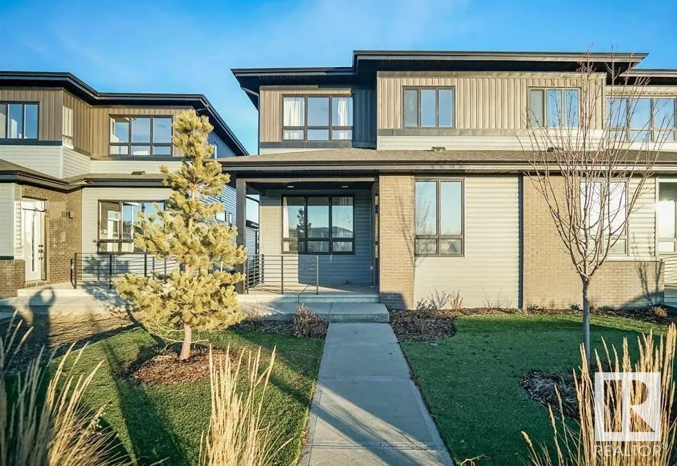 Welcome to this Half duplex of 1419 Sqft in Fort Saskatchewan. Open concept boasting an L-shaped kitchen with cabinetry, quartz countertops and stainless steel appliances. Greeted by the main floor foyer will take you to the spacious living room with large size windows, a powder room, and a rear attached Double rear attached garage. Upstairs you will find primary suite, complete with a walk-in closet and 3 pcs en-suite. Additionally, there are two bedrooms common washroom and a nice size loft, perfect to be used as home office. A covered veranda to enjoy your evenings and to admire your front yard finished with artificial turf with maintenance-free landscaping. A large basement is open to ideas. Situated across the community outdoor Skating Rink, This house is a perfect starter home with modern looks and close to all amenities. (id:27476)