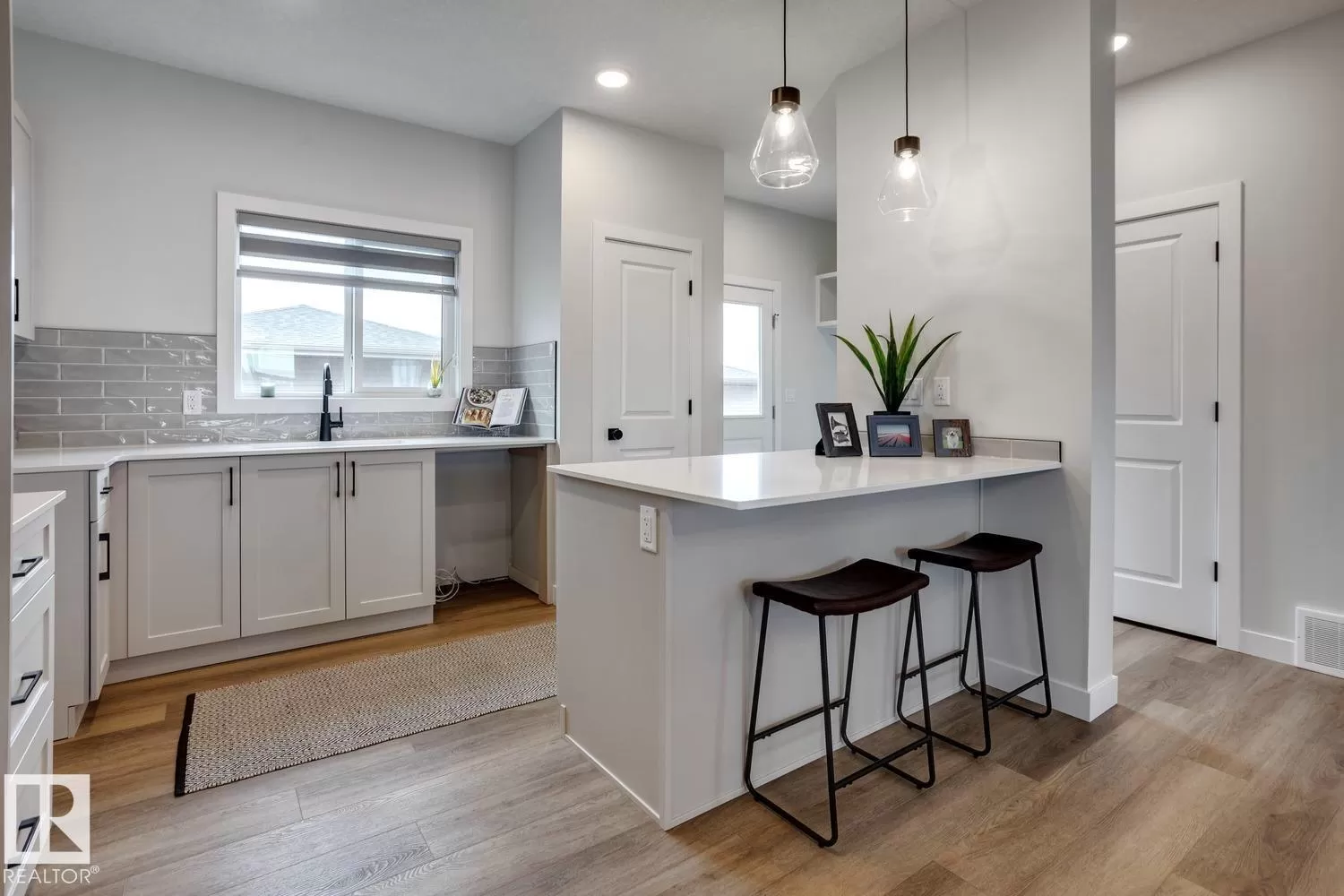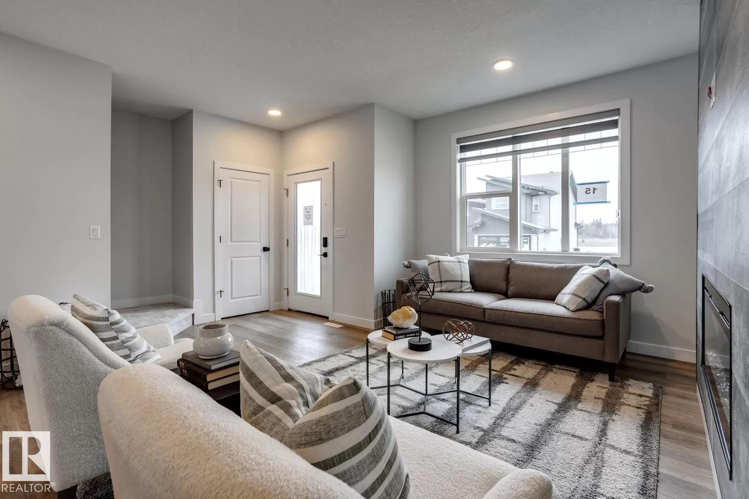 5 Things to Love about this new Alquinn Home in Sienna: 1) Modern Design & Open Concept â 9ft ceilings, an airy main floor layout, and a stylish electric fireplace create a warm, inviting space. 2) Chefâs Kitchen â Breakfast bar, pantry, ample storage, and included stainless steel appliances make it perfect for daily living and entertaining. 3) Smart Layout â Back mudroom with cubbies and bench, convenient 2pc bath on the main, plus a separate side entrance. 4) Upstairs Retreat â Primary suite with walk-in closet and 4pc ensuite, two additional bedrooms, another 4pc bath, and upper laundry for convenience. 5) Location & Quality â Set in Fort Saskatchewan, close to amenities, this new build features high-end finishes and thoughtful details throughout. *Photos are representative* (id:27476)