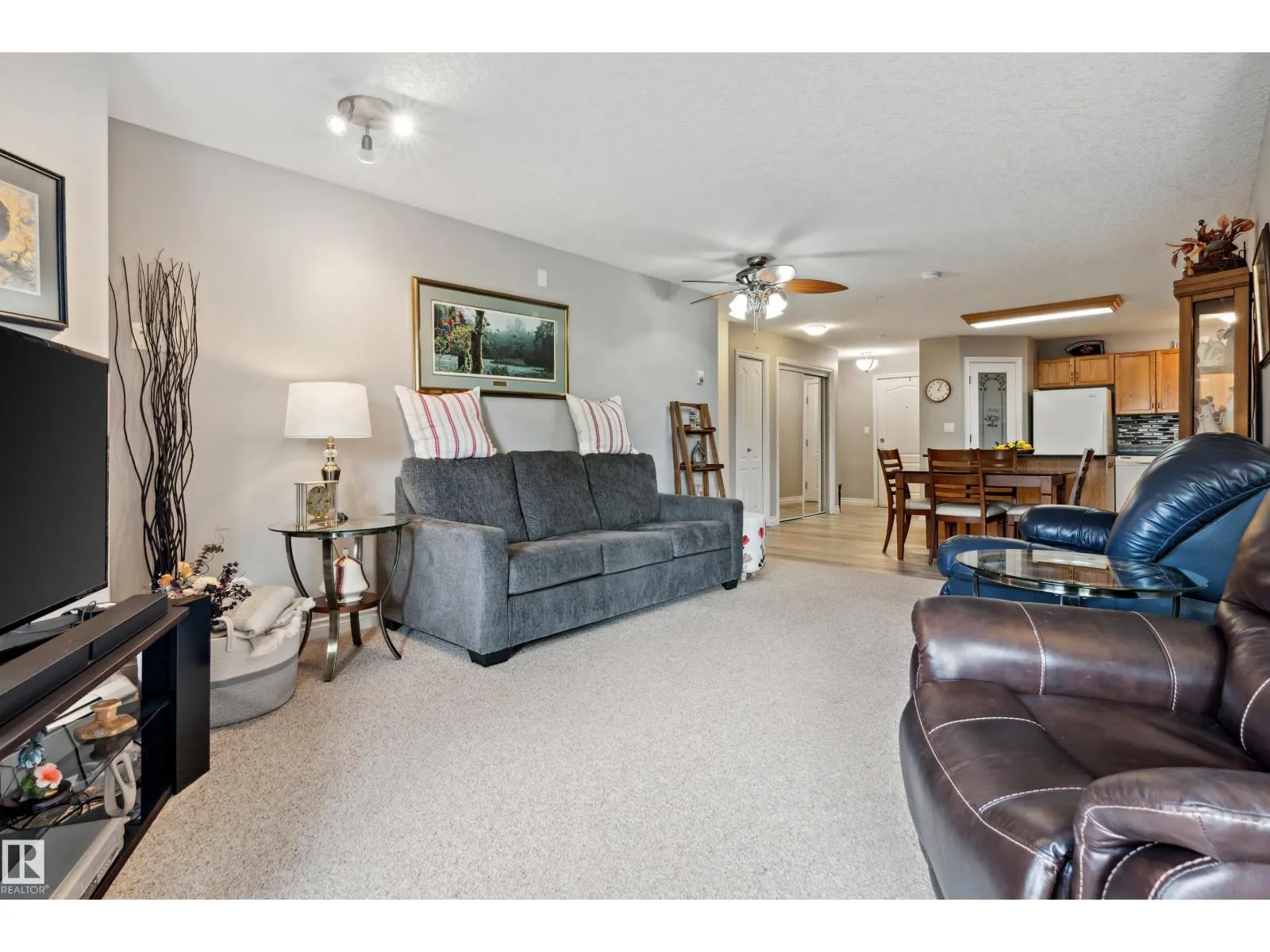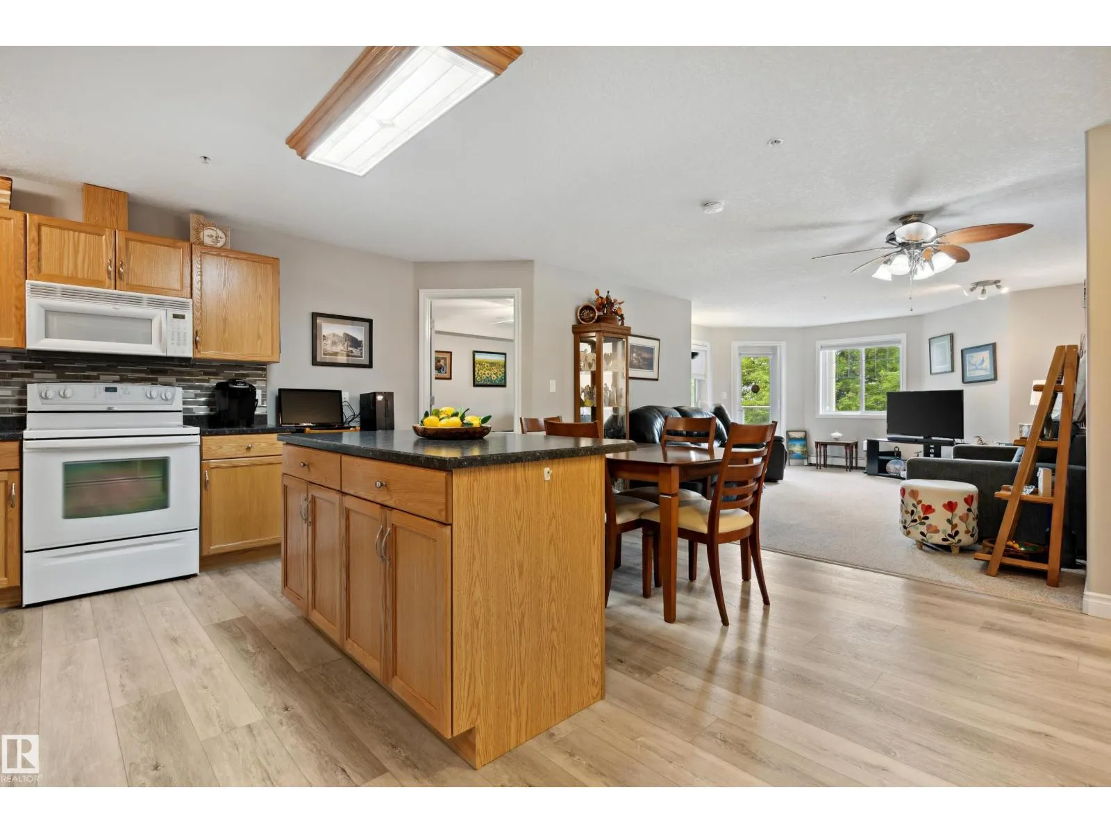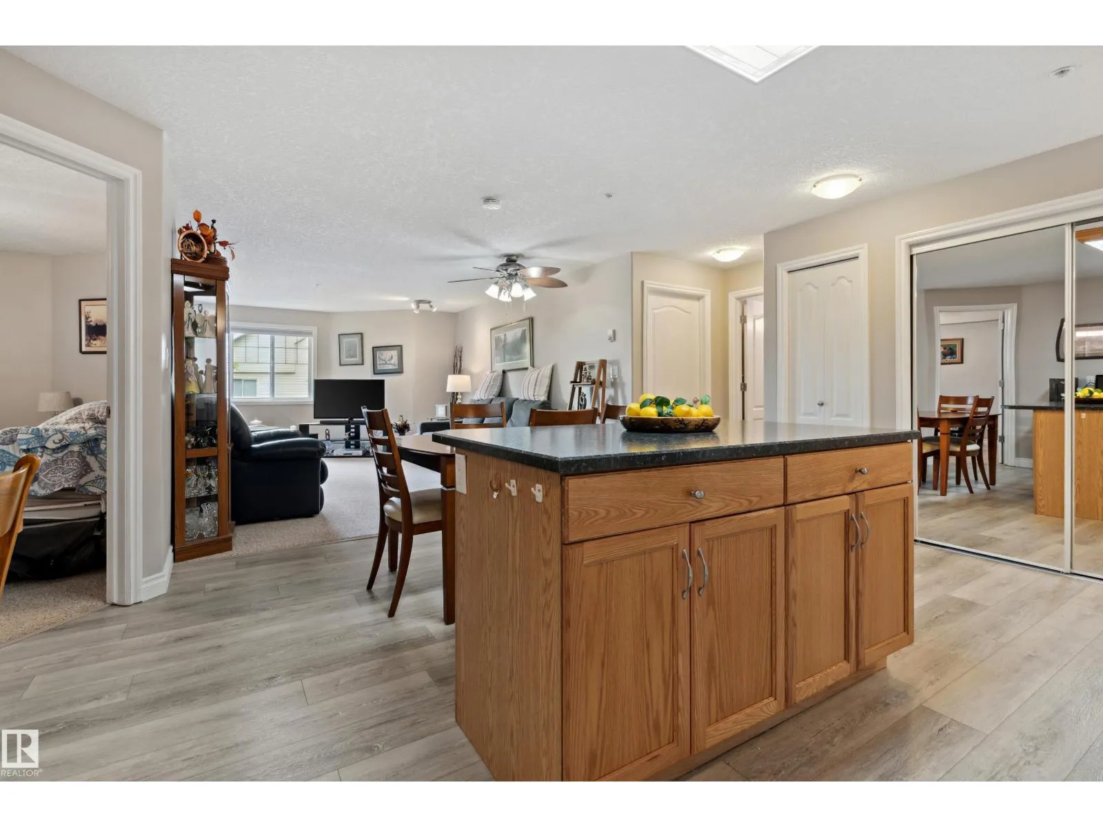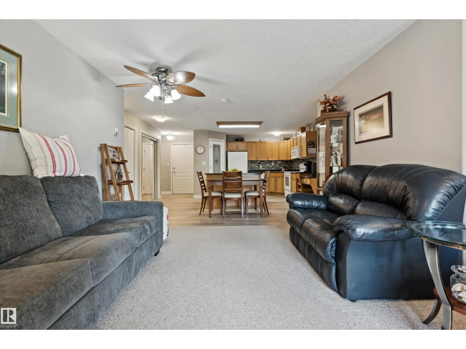 Welcome to this spacious 1057 sq ft 45+ adult condo located close to shopping and all other amenities. The condo offers a warm and inviting open floor plan. The oak kitchen includes ample cabinets, a kitchen island and a walk-in corner pantry. The living room boasts large windows and a garden door leading to a covered maintenance free balcony with a gas hook up for a BBQ. The unit also has two bedrooms with the Primary bedroom having walk-through his & her closets and a 4pc ensuite. This unit also has a 3pc main bathroom, in-suite laundry, a titled underground parking stall and storage locker. (id:27476)