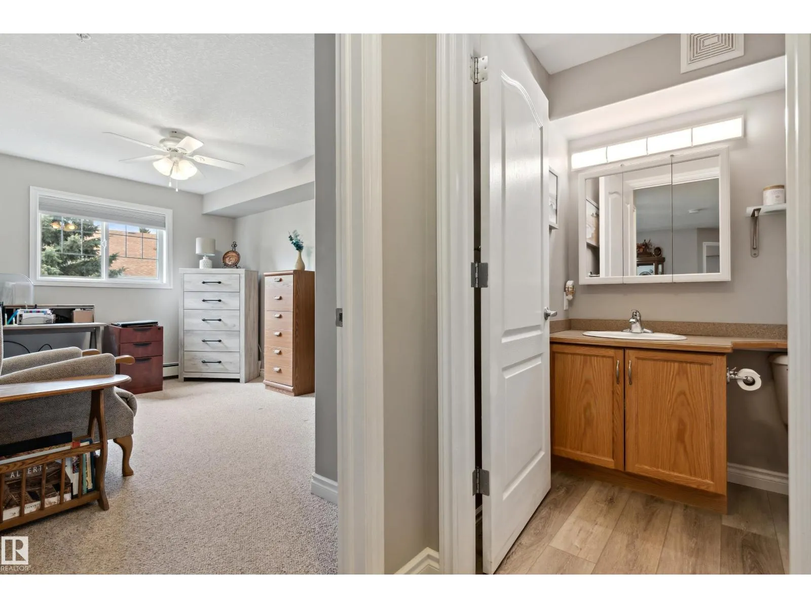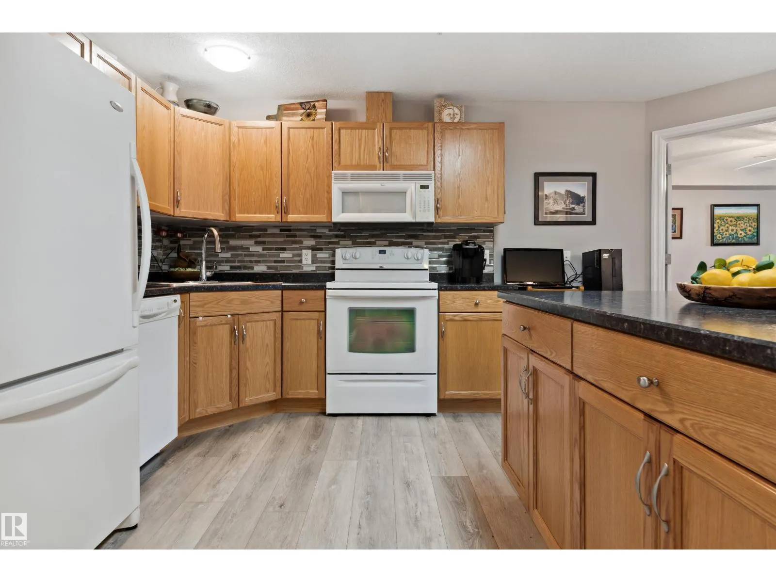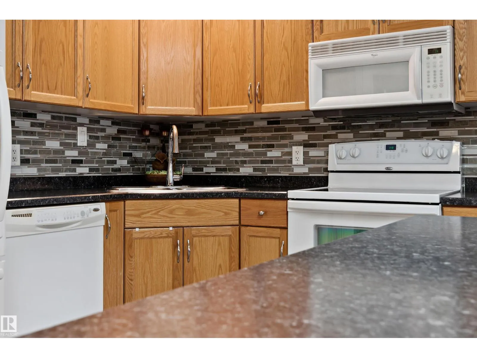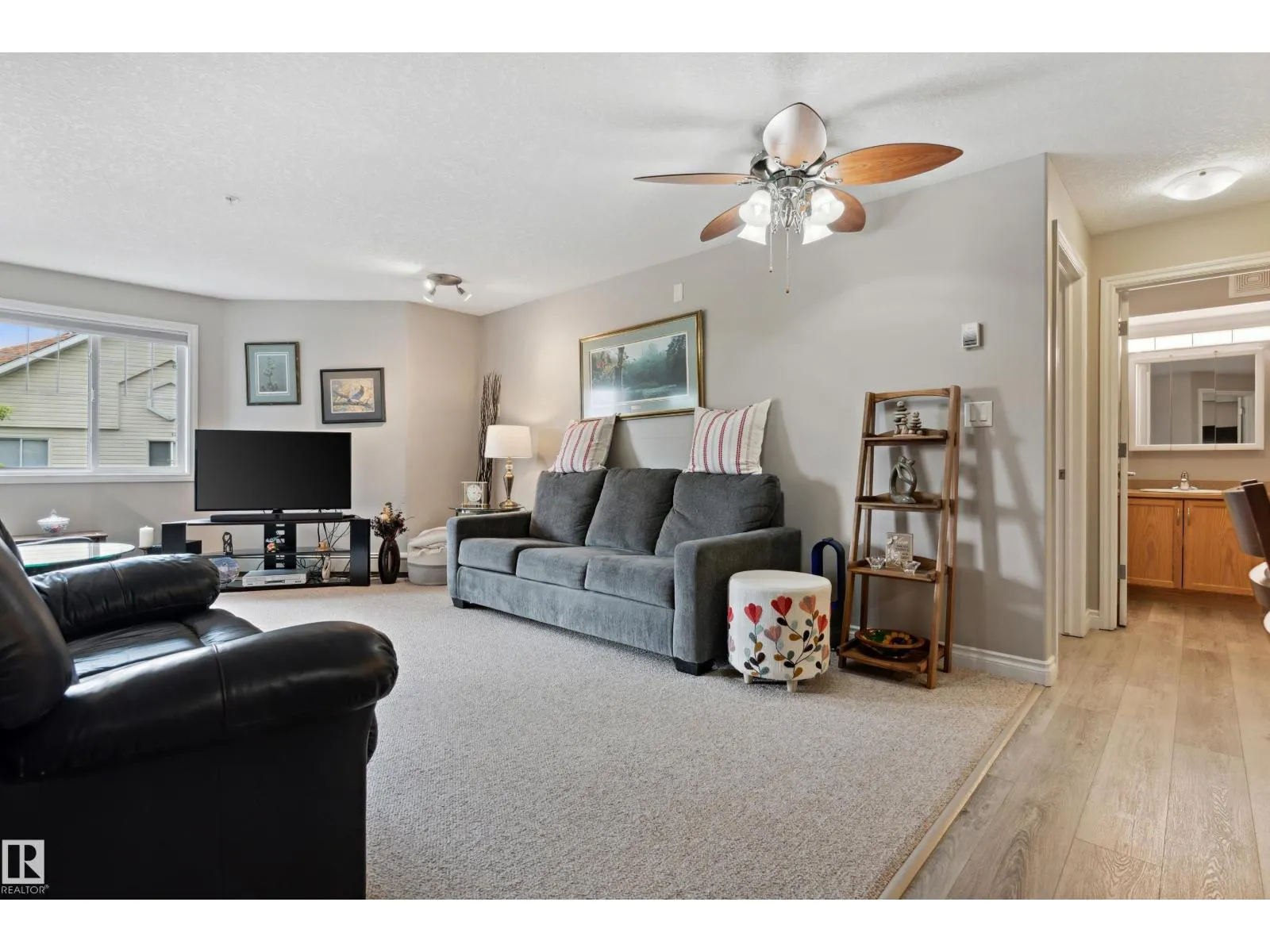 Welcome to this spacious 1057 sq ft 45+ adult condo located close to shopping and all other amenities. The condo offers a warm and inviting open floor plan. The oak kitchen includes ample cabinets, a kitchen island and a walk-in corner pantry. The living room boasts large windows and a garden door leading to a covered maintenance free balcony with a gas hook up for a BBQ. The unit also has two bedrooms with the Primary bedroom having walk-through his & her closets and a 4pc ensuite. This unit also has a 3pc main bathroom, in-suite laundry, a titled underground parking stall and storage locker. (id:27476)