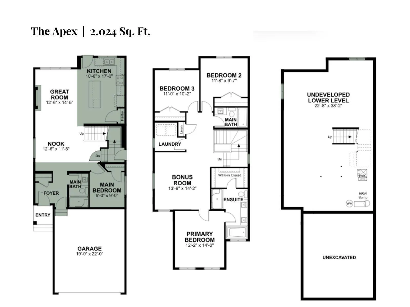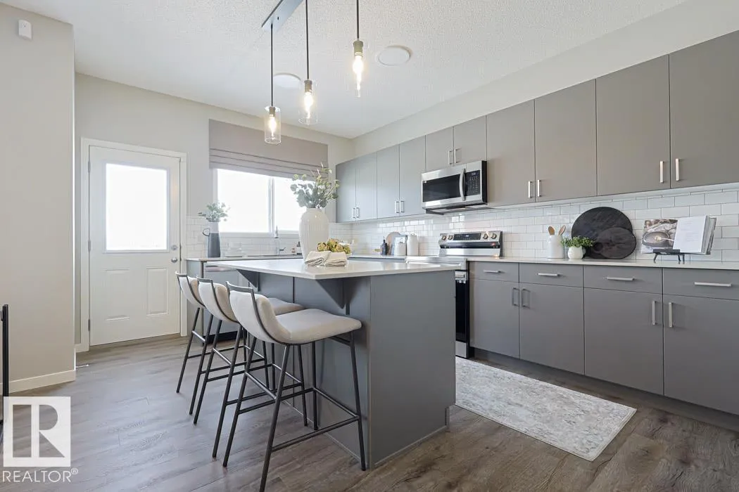 Artfully designed with durability and elegance in mind, the Apex is a four-bedroom home offering the perfect balance of comfort and modern family living. Features include a double attached garage with floor drain, 9 ft ceilings on the main and basement levels, a separate side entrance, and Luxury Vinyl Plank flooring throughout the main floor. The inviting foyer leads to a full 3-piece bath with stand-up shower and a versatile main floor bedroom. The open-concept layout connects the nook, great room with fireplace, and kitchenâfeaturing quartz countertops, island with eating ledge, built-in microwave, Silgranit sink, pendant lighting, chimney-style hood fan, full-height backsplash, soft-close cabinetry, and pantry. Upstairs includes a bright primary suite with 5-piece ensuite, walk-in shower, tub, and large closet, plus a bonus room, laundry, 3-piece bath, and two additional bedrooms. Brushed Nickel fixtures, upgraded railings, basement rough-in, and Sterlingâs Signature Specification complete this home. (id:27476)
