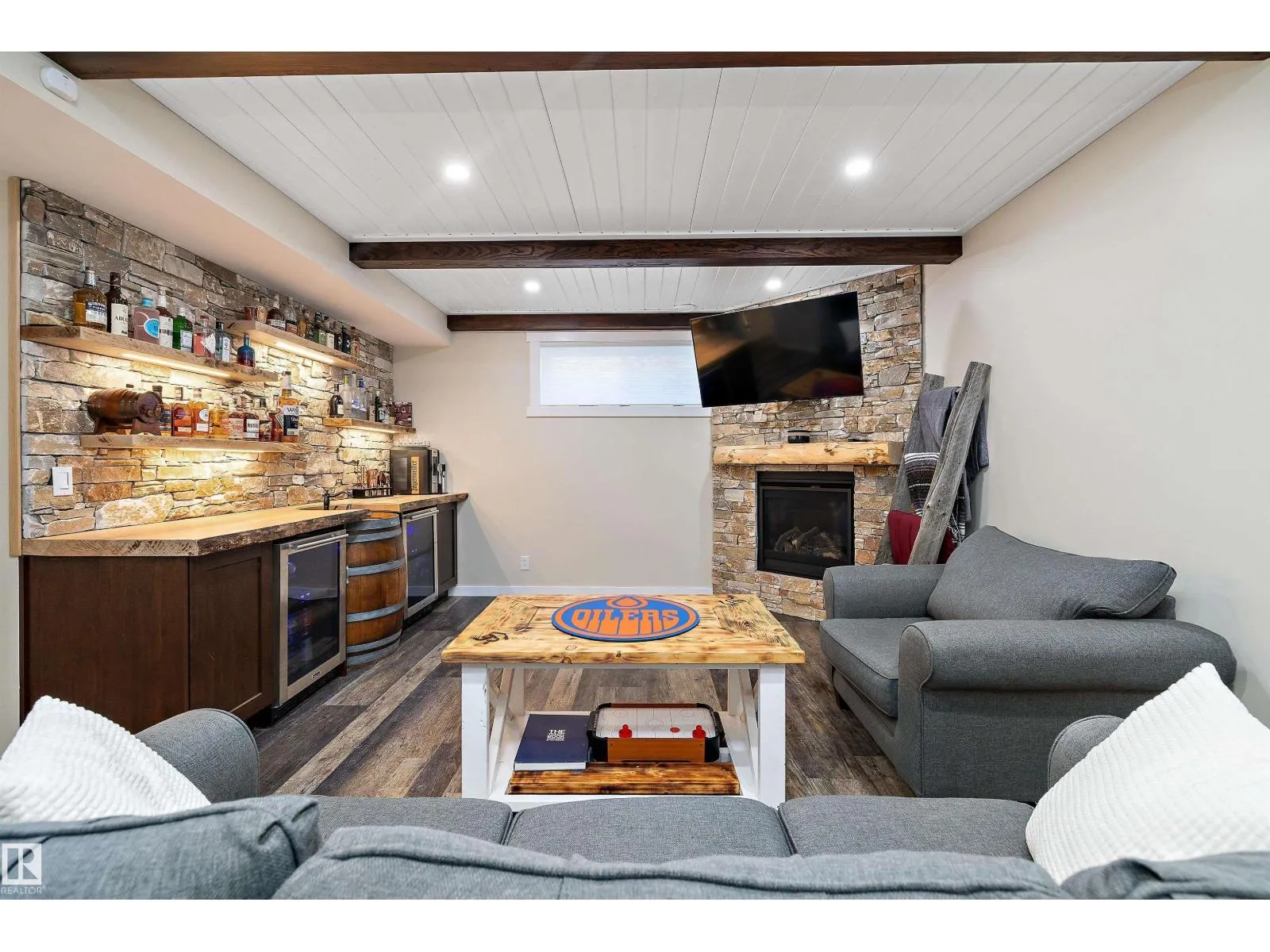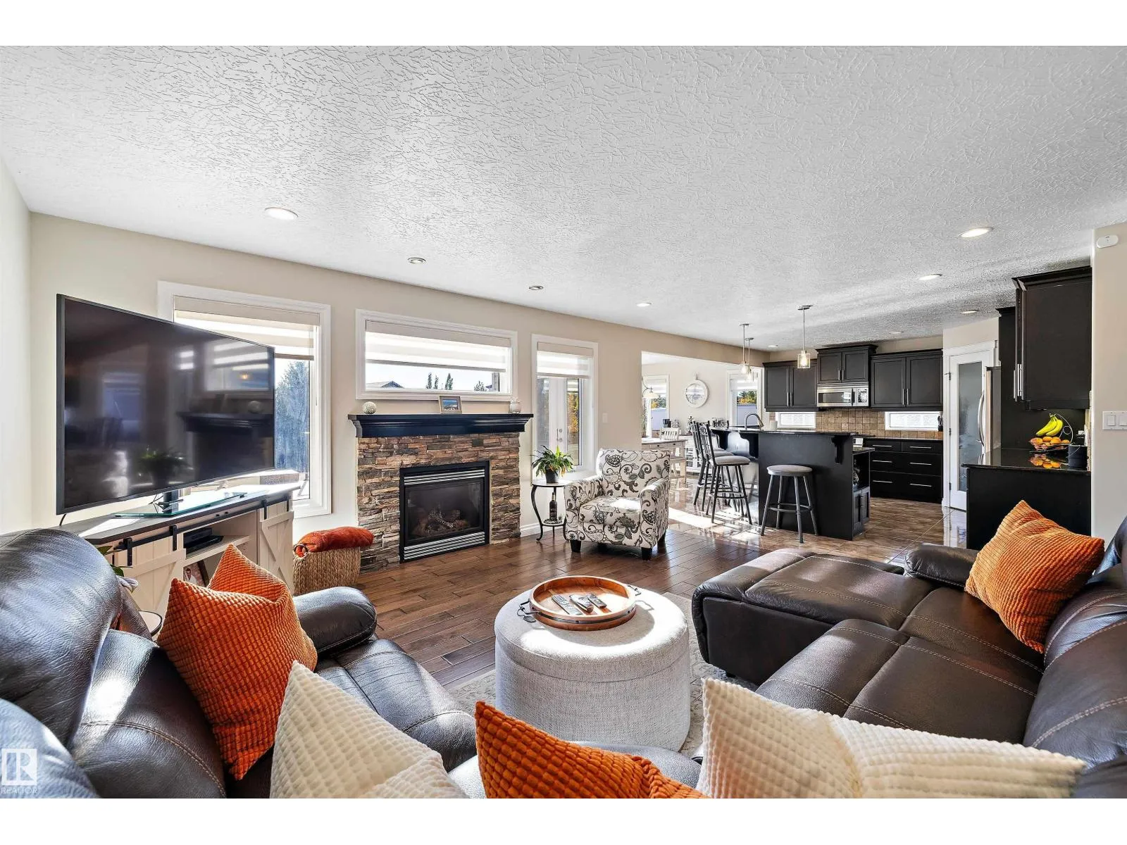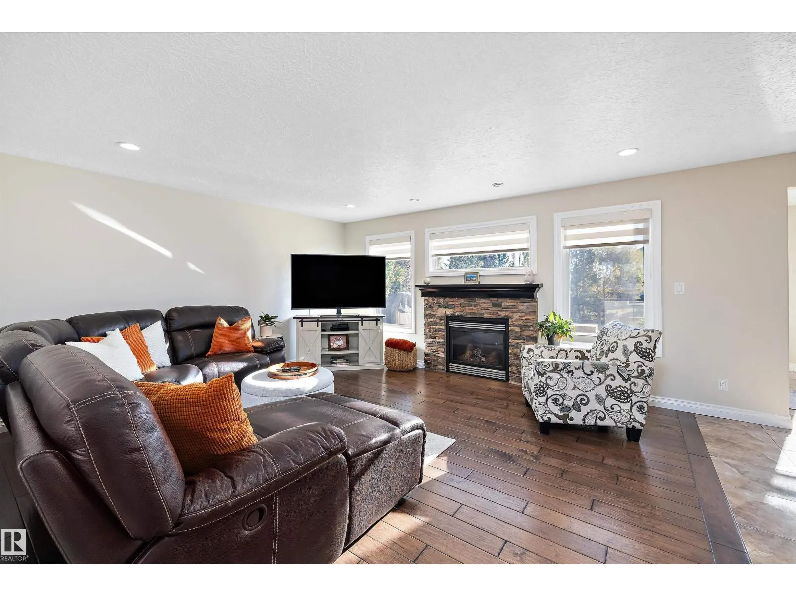 Welcome to this beautifully finished home showcasing quality craftsmanship and exceptional value throughout. The main floor offers a bright open layout with elegant engineered hardwood and ceramic tile, a stylish kitchen with granite countertops, and stainless steel appliances. Upstairs features a spacious bonus room with a cozy gas fireplace and a luxurious 5-piece primary ensuite. The basement is perfect for entertaining, complete with a bedroom, 3-piece bath, laminate flooring, wet bar with beverage cooler, and another gas fireplace. A hidden bonus room adds versatilityâideal for a private wine cellar, gun room, or extra storage. The triple attached garage is heated, insulated, and finished with laminate tile and built-in cabinets. Enjoy outdoor living on the large deck, perfect for family gatherings or relaxing evenings. Additional highlights include an on-demand hot water system, water softener, air conditioning, and all window coverings. Donât miss this opportunity! (id:27476)