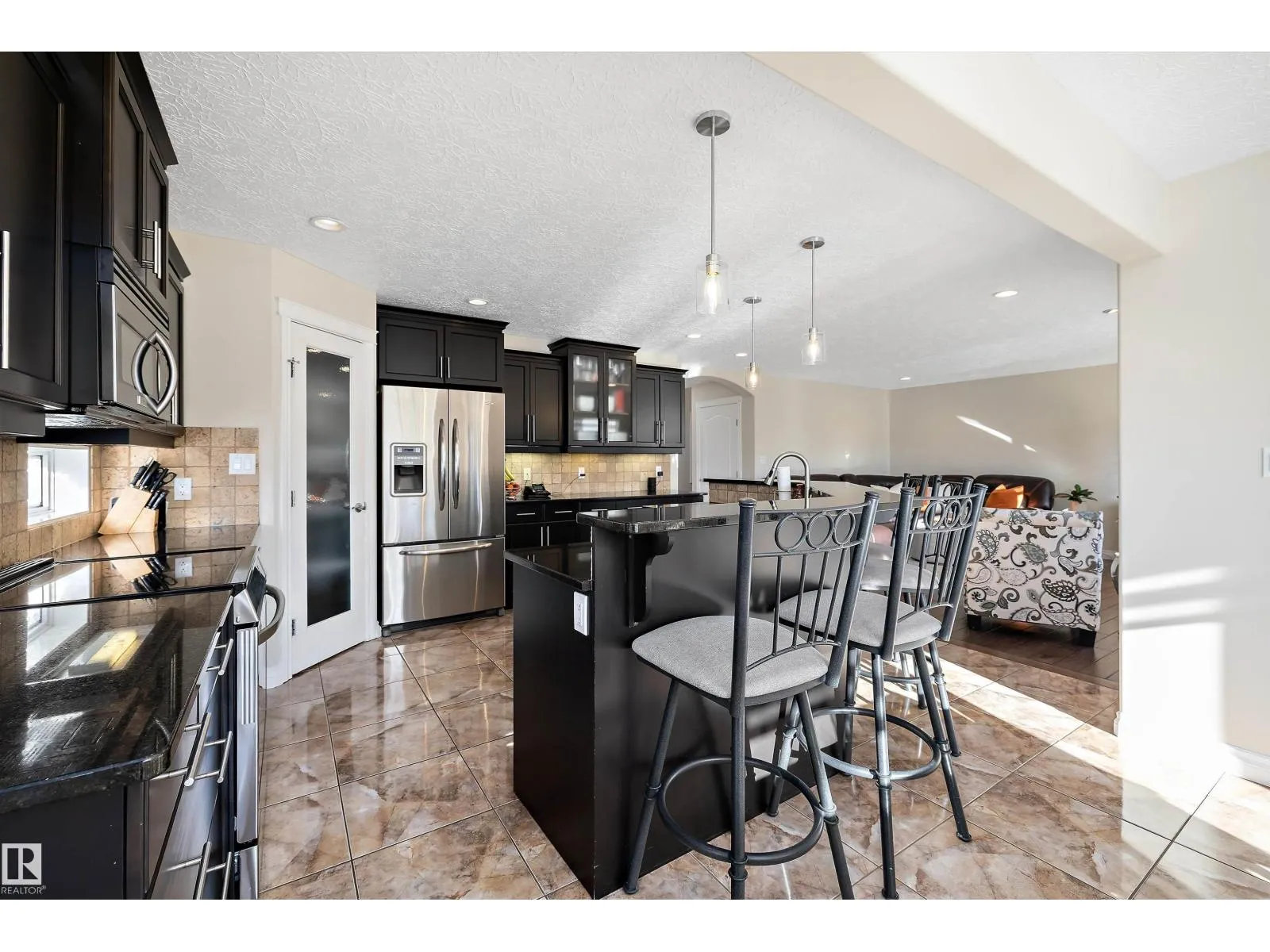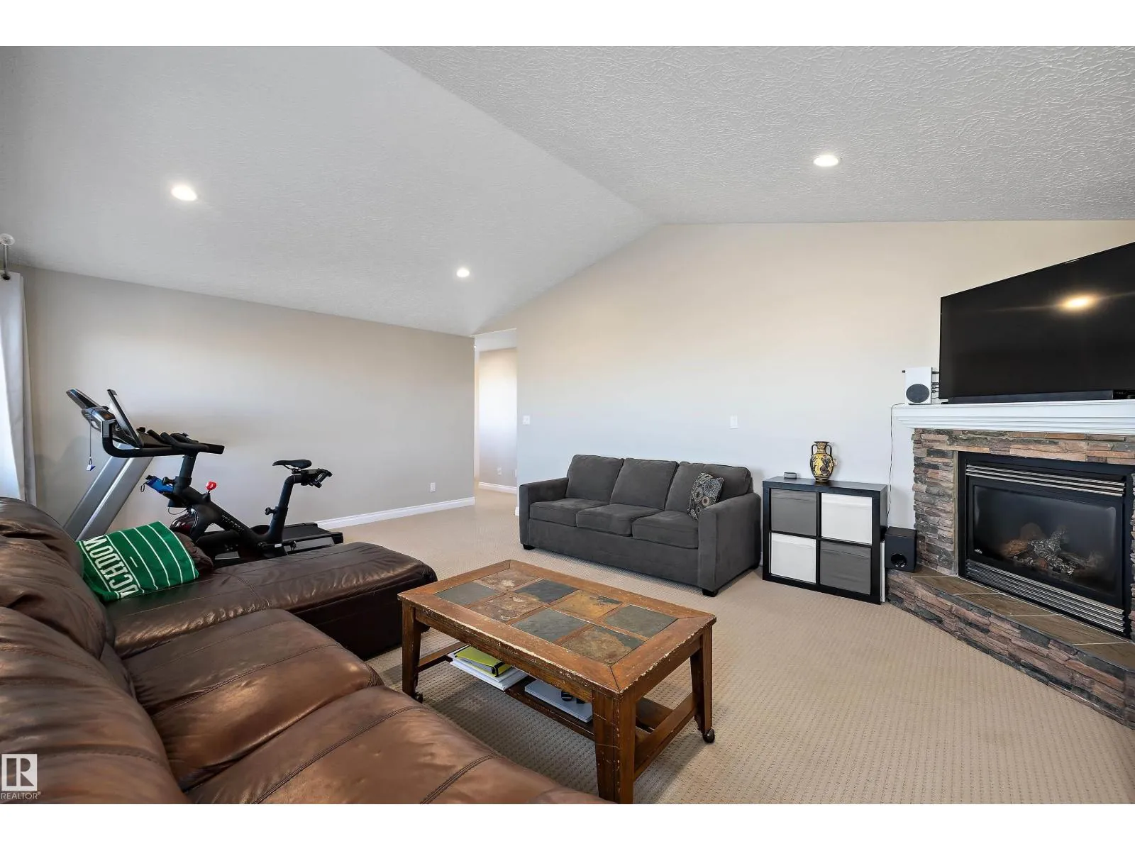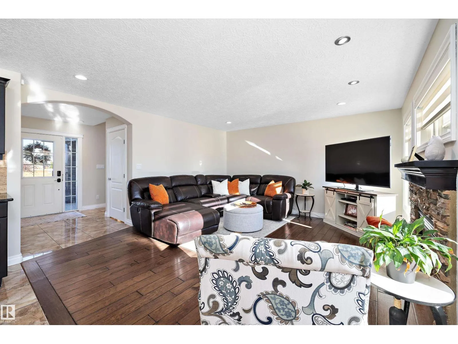 Welcome to this beautifully finished home showcasing quality craftsmanship and exceptional value throughout. The main floor offers a bright open layout with elegant engineered hardwood and ceramic tile, a stylish kitchen with granite countertops, and stainless steel appliances. Upstairs features a spacious bonus room with a cozy gas fireplace and a luxurious 5-piece primary ensuite. The basement is perfect for entertaining, complete with a bedroom, 3-piece bath, laminate flooring, wet bar with beverage cooler, and another gas fireplace. A hidden bonus room adds versatilityâideal for a private wine cellar, gun room, or extra storage. The triple attached garage is heated, insulated, and finished with laminate tile and built-in cabinets. Enjoy outdoor living on the large deck, perfect for family gatherings or relaxing evenings. Additional highlights include an on-demand hot water system, water softener, air conditioning, and all window coverings. Donât miss this opportunity! (id:27476)