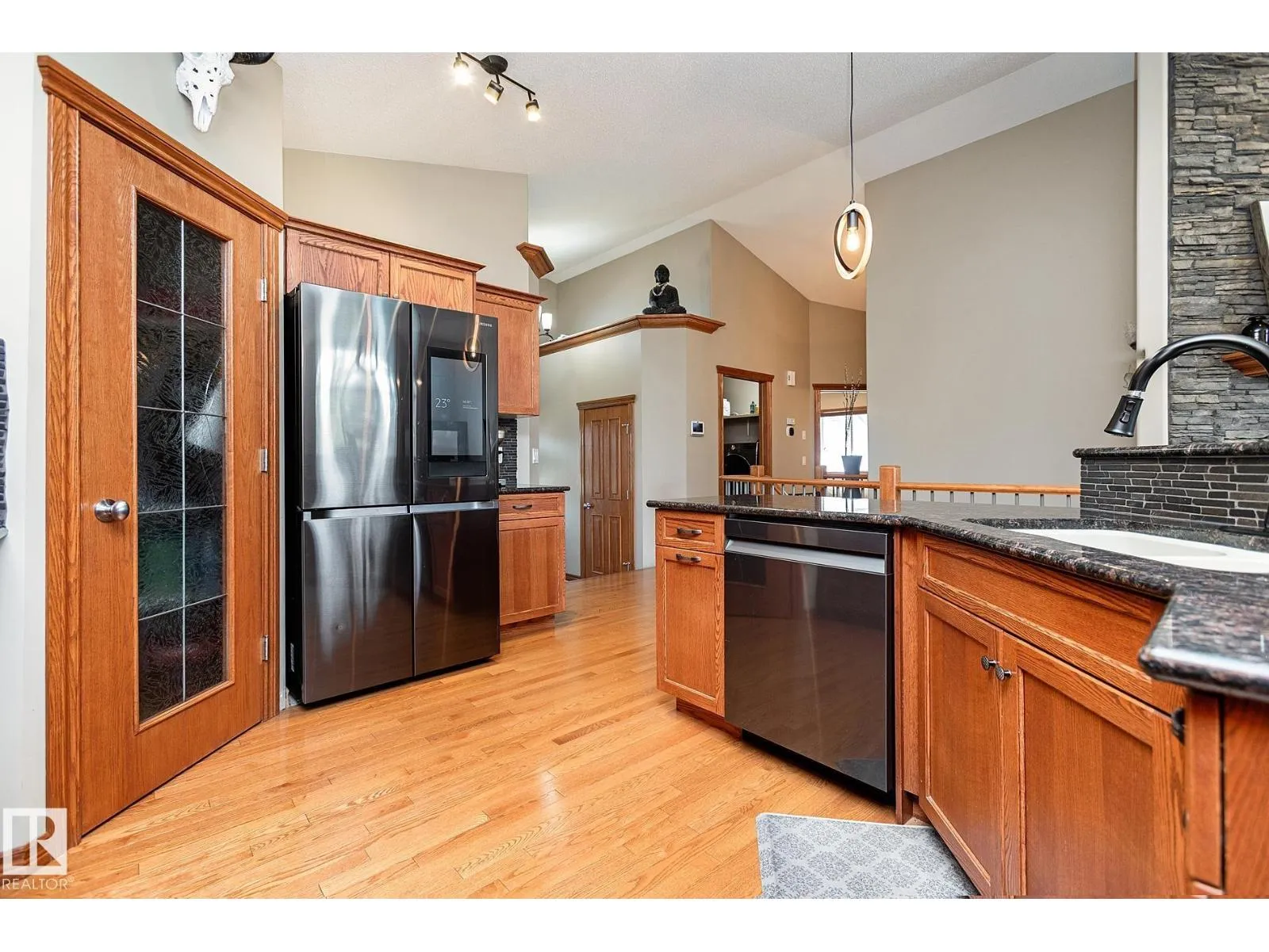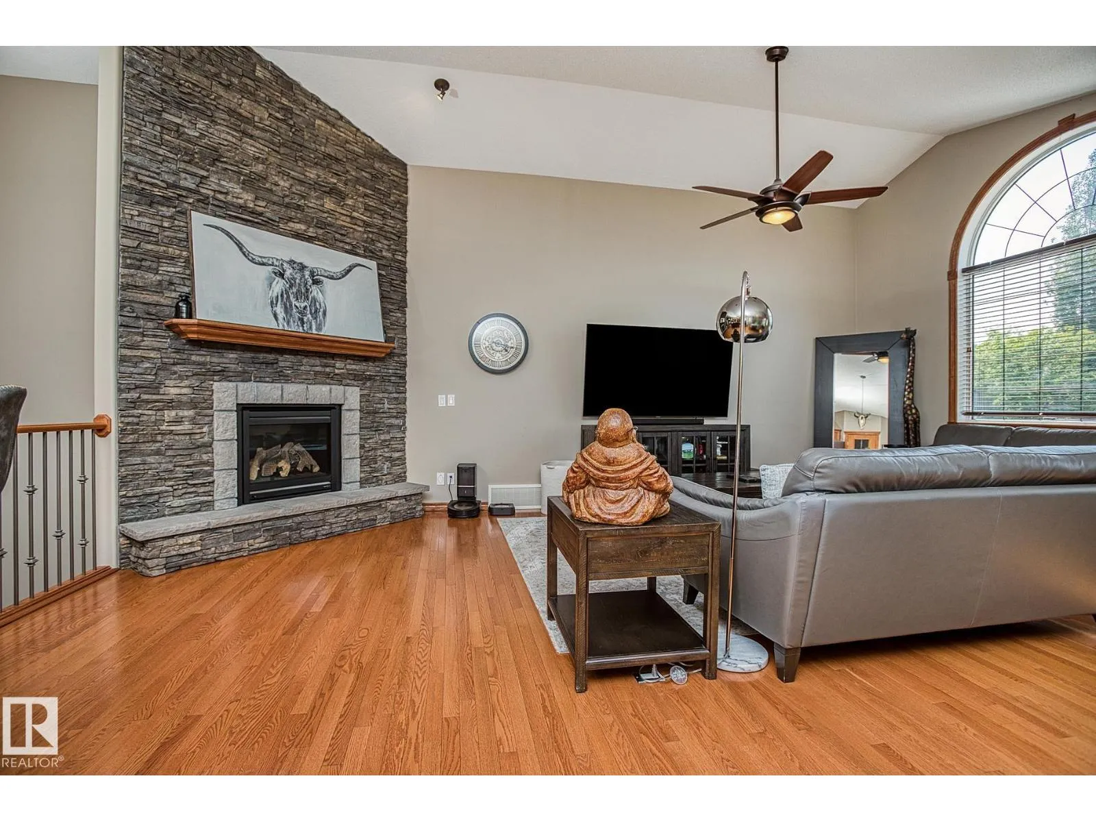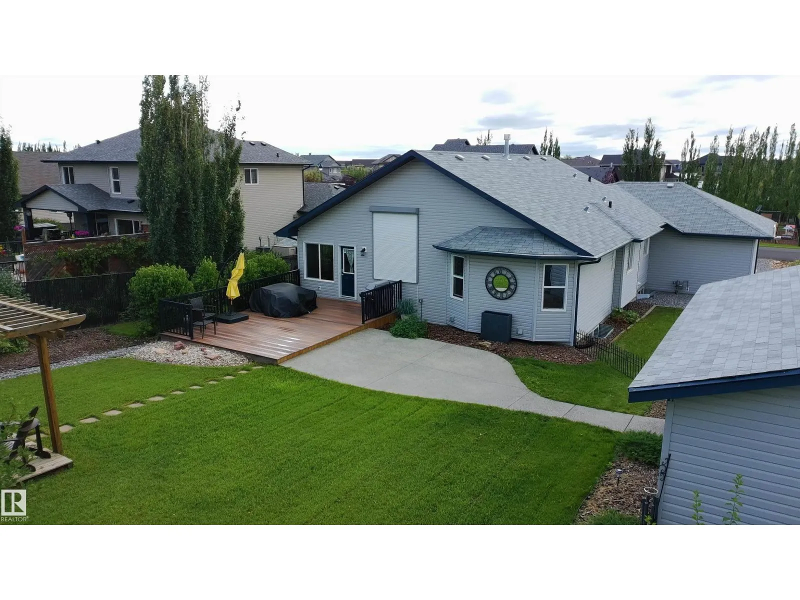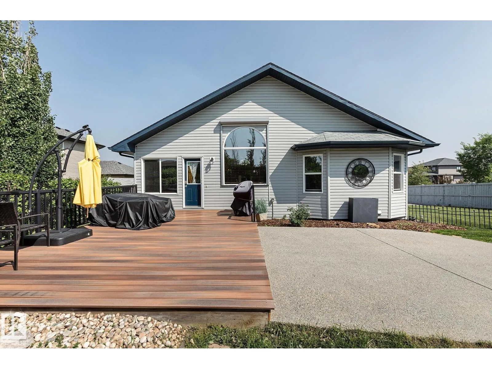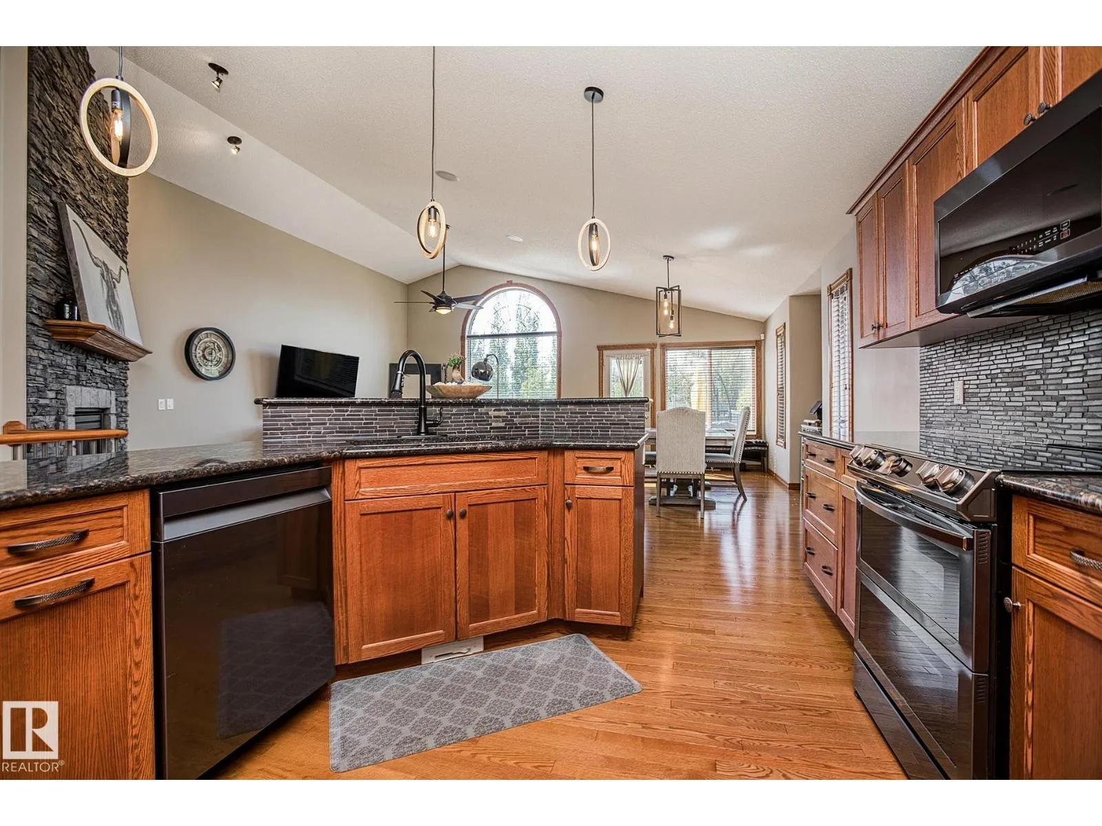 TRIPLE GARAGE-BUNGALOW on 1/3 ACRE LOT! Welcome to this immaculate 1757 sq ft bungalow in sought-after Southfort Estates! Situated on a fully landscaped 1/3-acre lot, this home blends comfort and elegance with vaulted ceilings, hardwood floors, and two cozy gas fireplaces. Natural light fills the open-concept layout, leading to a chef-inspired kitchen with NEW black stainless steel appliances with smart hub fridge, stylish cabinetry, and generous counter space. The dining area opens to the Backyard Oasis including a Fire Pit, Shed that can fit a car, & composite deckâideal for entertaining and soaking up the sun's rays. The luxurious primary suite features vaulted ceilings, a walk-in closet, and a spa-like ensuite. The basement is partially finished with a spacious rec room, additional bedroom, and full bathâoffering flexible living space & tonnes of storage. Not to be missed - Main floor den, remote window shutter, tile accents, central vac. garage with Radiant Heating. Flexible possession. A true gem! (id:27476)