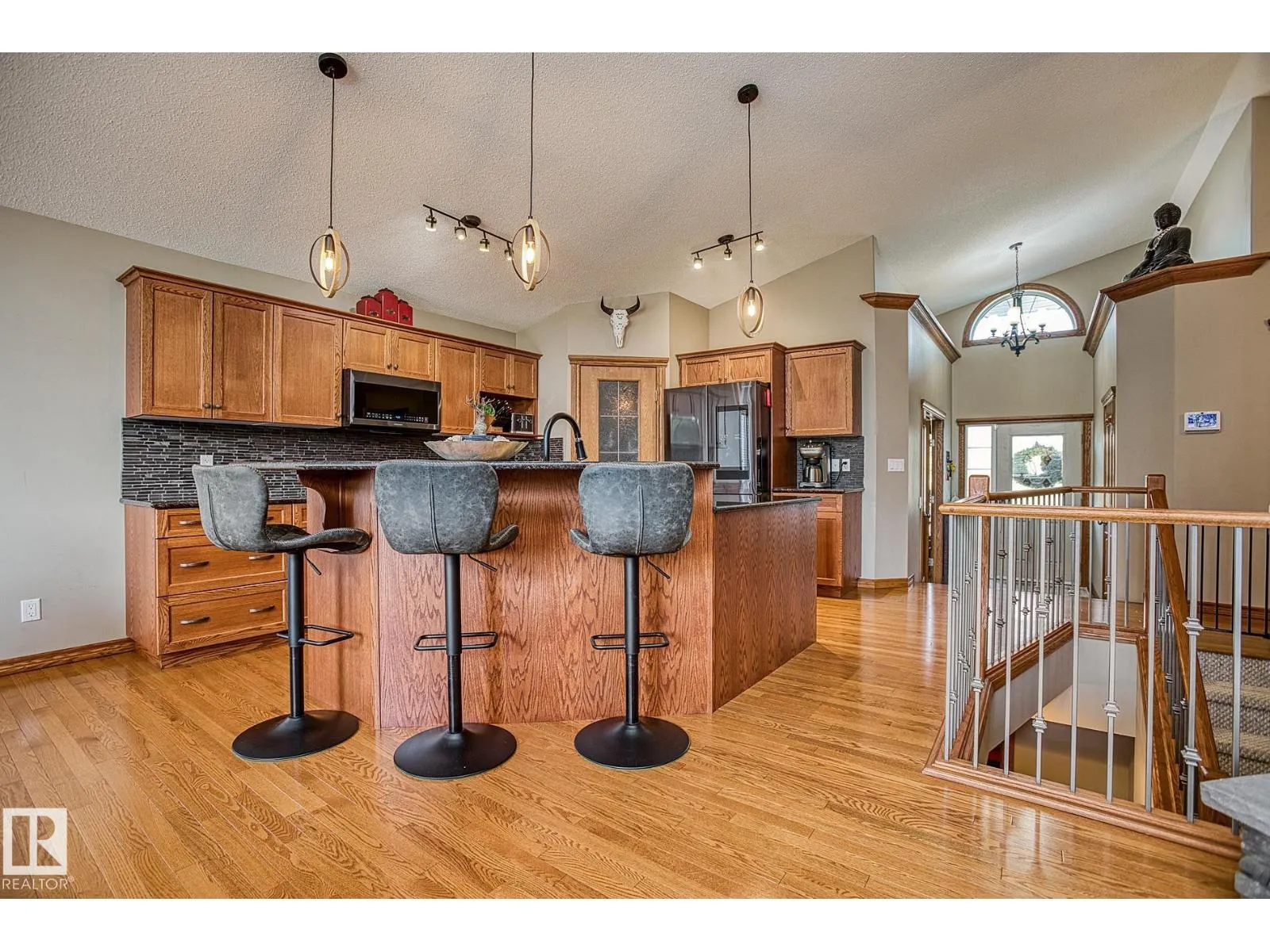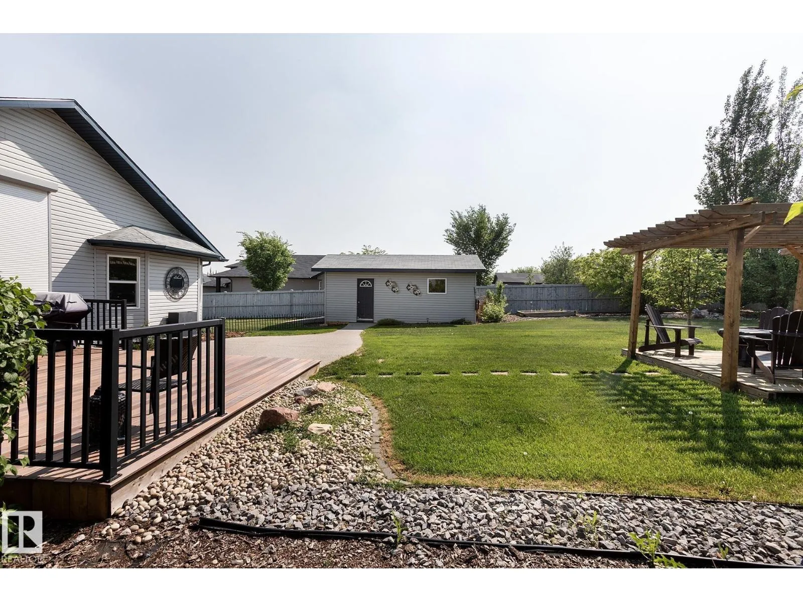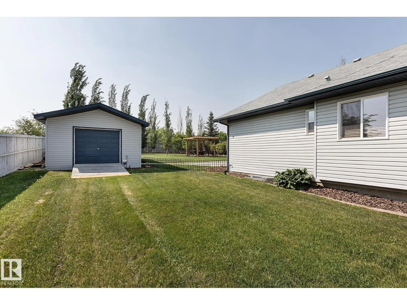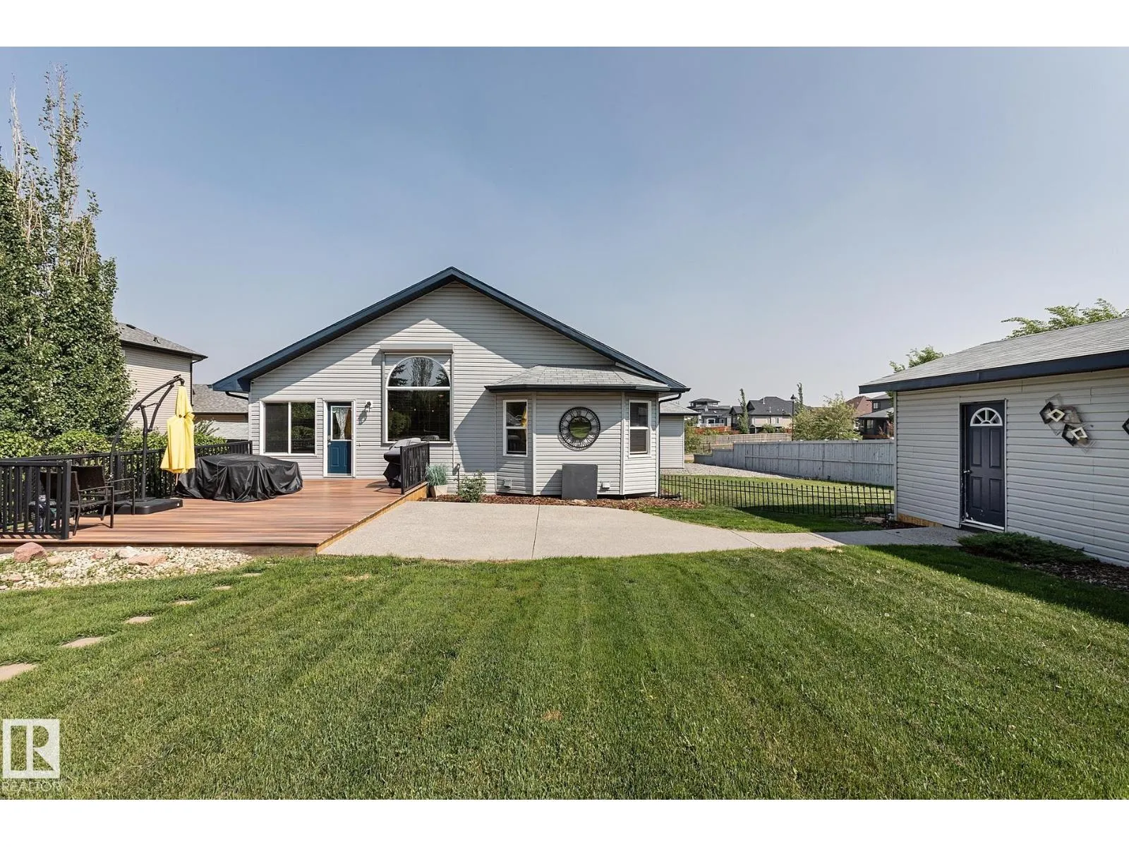 TRIPLE GARAGE-BUNGALOW on 1/3 ACRE LOT! Welcome to this immaculate 1757 sq ft bungalow in sought-after Southfort Estates! Situated on a fully landscaped 1/3-acre lot, this home blends comfort and elegance with vaulted ceilings, hardwood floors, and two cozy gas fireplaces. Natural light fills the open-concept layout, leading to a chef-inspired kitchen with NEW black stainless steel appliances with smart hub fridge, stylish cabinetry, and generous counter space. The dining area opens to the Backyard Oasis including a Fire Pit, Shed that can fit a car, & composite deckâideal for entertaining and soaking up the sun's rays. The luxurious primary suite features vaulted ceilings, a walk-in closet, and a spa-like ensuite. The basement is partially finished with a spacious rec room, additional bedroom, and full bathâoffering flexible living space & tonnes of storage. Not to be missed - Main floor den, remote window shutter, tile accents, central vac. garage with Radiant Heating. Flexible possession. A true gem! (id:27476)