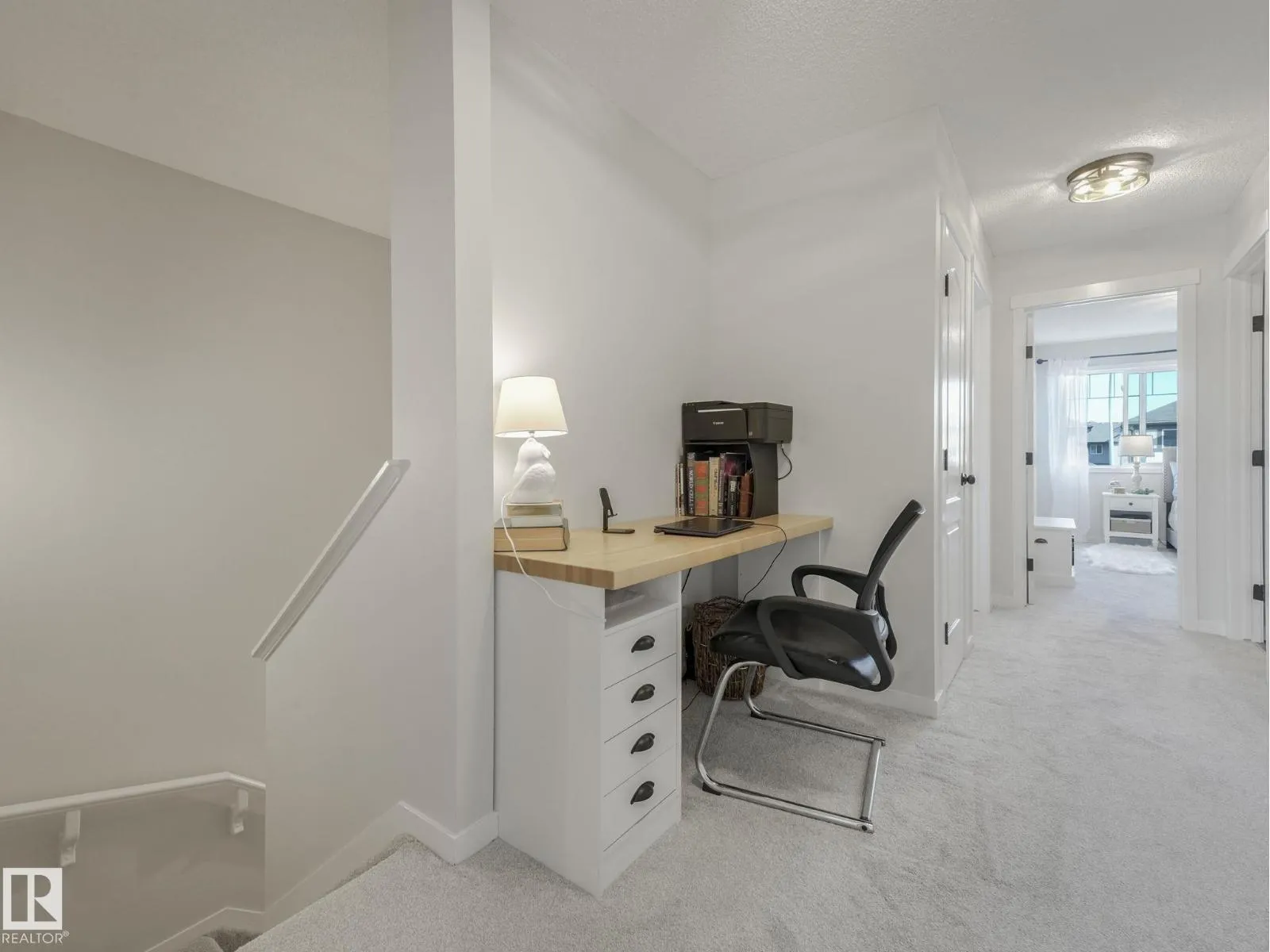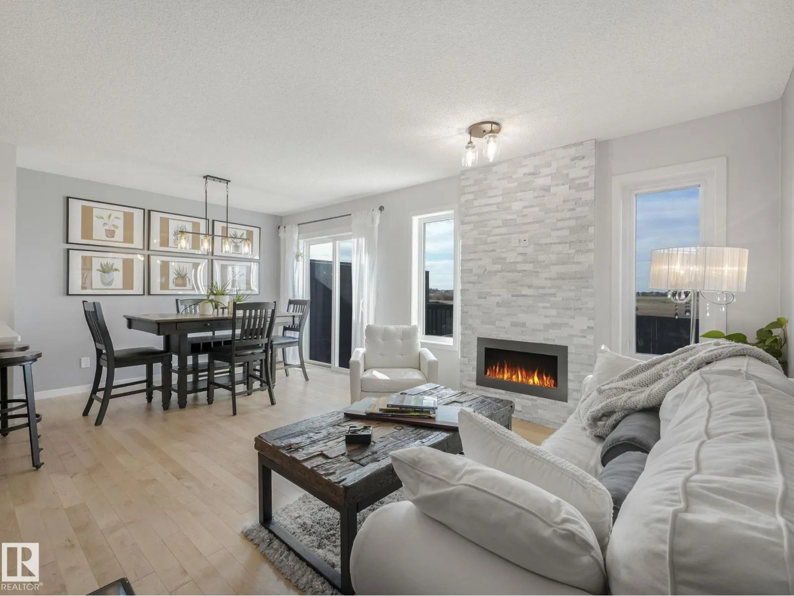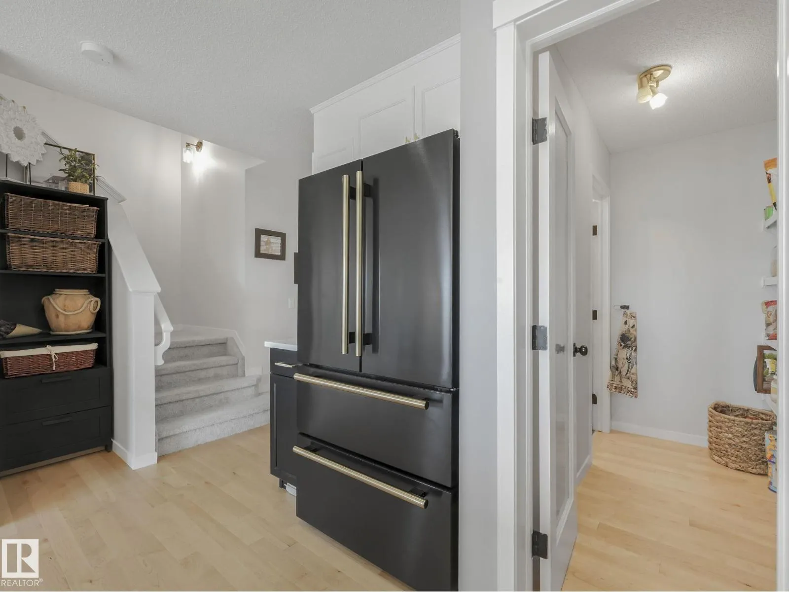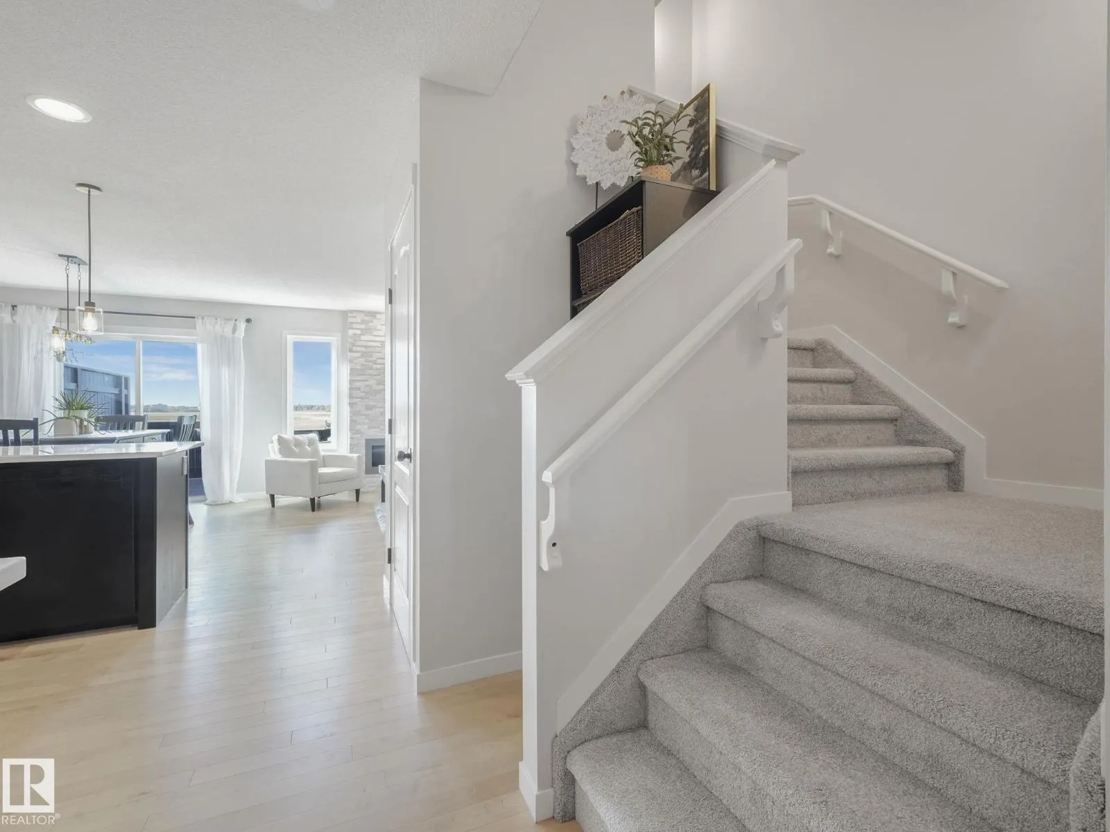Welcome to Sienna, where every day feels like a fresh start! This beautifully updated duplex blends modern elegance with everyday comfort, creating a home that feels both stylish & welcoming. Step inside to find natural-finish hardwood floors that set a graceful backdrop, leading to the impressive floor-to-ceiling stone fireplace - a true centrepiece that anchors the open main floor. The reimagined kitchen dazzles with glass-fronted cabinets, gold details, & a sweeping quartz peninsula designed for both entertaining & family living. A massive walk-through pantry offers exceptional storage & convenience for effortless organization. Upstairs, a sunlit office nook, handy laundry area & an expansive primary suite with full ensuite & walk-in closet form a tranquil upper level perfect for relaxation. Fresh paint, updated flooring, chic black-&-gold fixtures & renovated baths combine to create a refined, move-in-ready vibe. The fenced yard with deck, patio & garden beds backs a serene field & school. So Perfect! (id:27476)