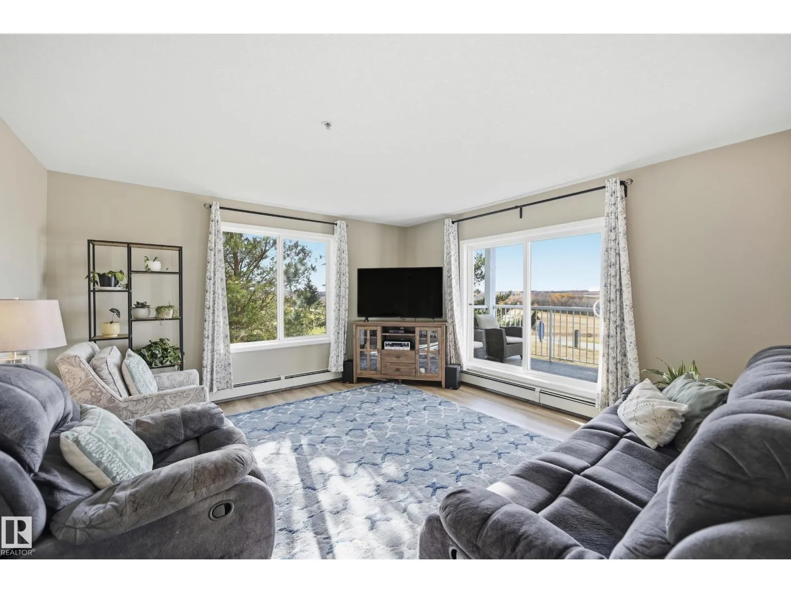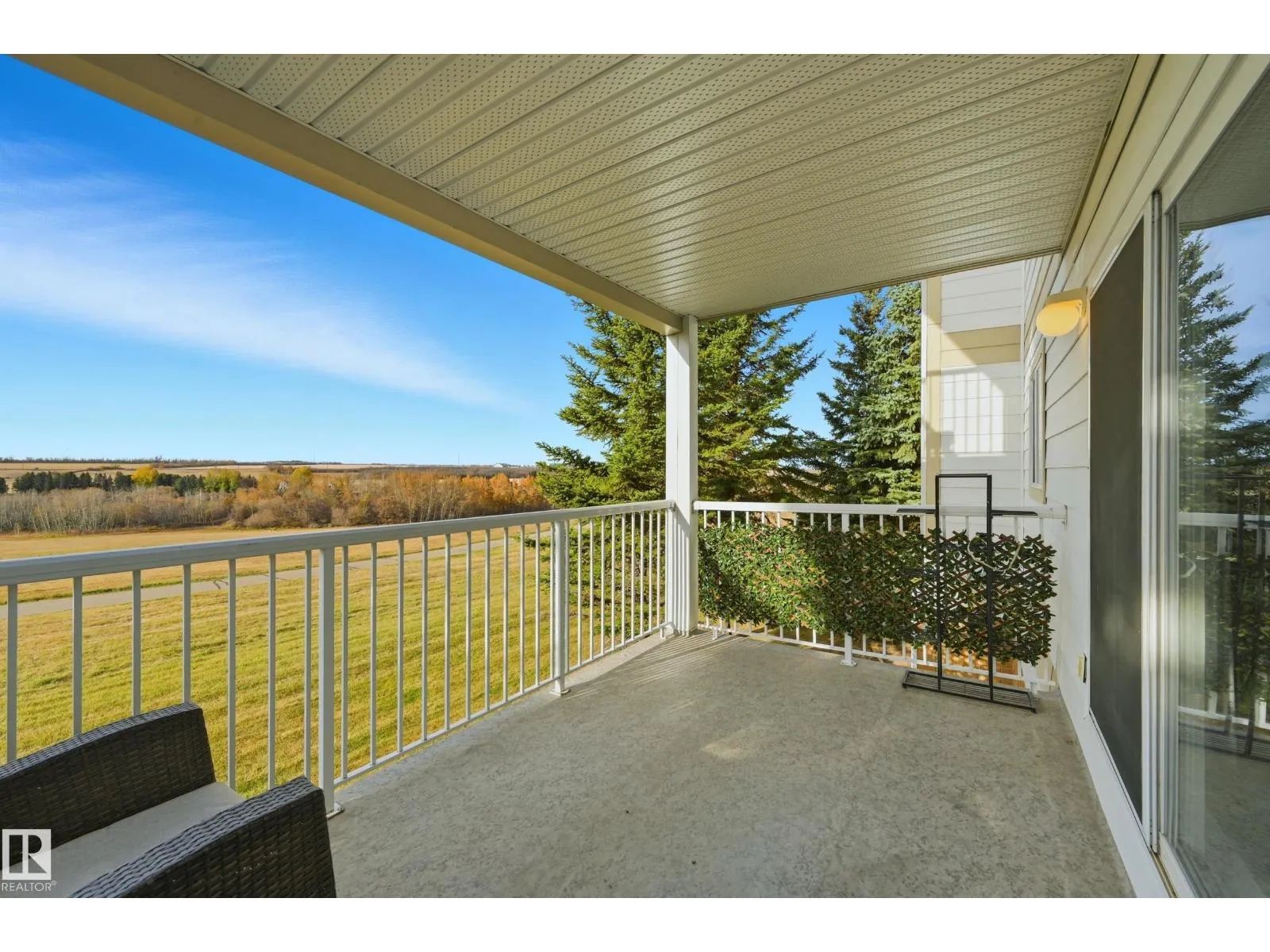 This beautifully renovated 1,015 square foot 2 bedroom condo located in Riverview Estates is sure to impress. This unit features a very functional floor plan boasting a spacious kitchen with stainless steel appliances and tons of cabinetry, great sized dining area for entertainment, and large living room overlooking the Fort Saskatchewan River Valley. Primary bedroom features a walk thru closet and 3 piece ensuite with double wide shower. The second bedroom is 10x10 and has a walk in closet. Completing the unit is loads of storage and an in suite laundry. The balcony is a place to relax and enjoy the views of the river valley. Located with in walking distance to CO OP, restaurants, and the Fort Saskatchewan downtown core. (id:27476)