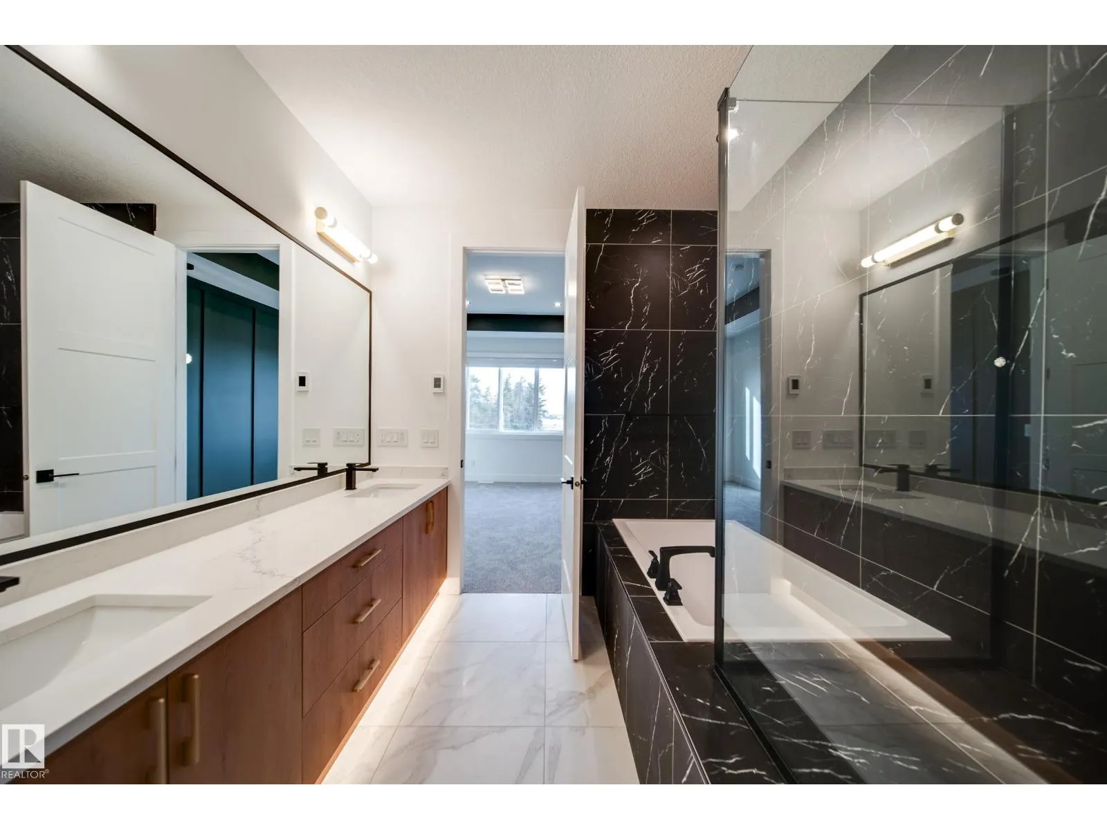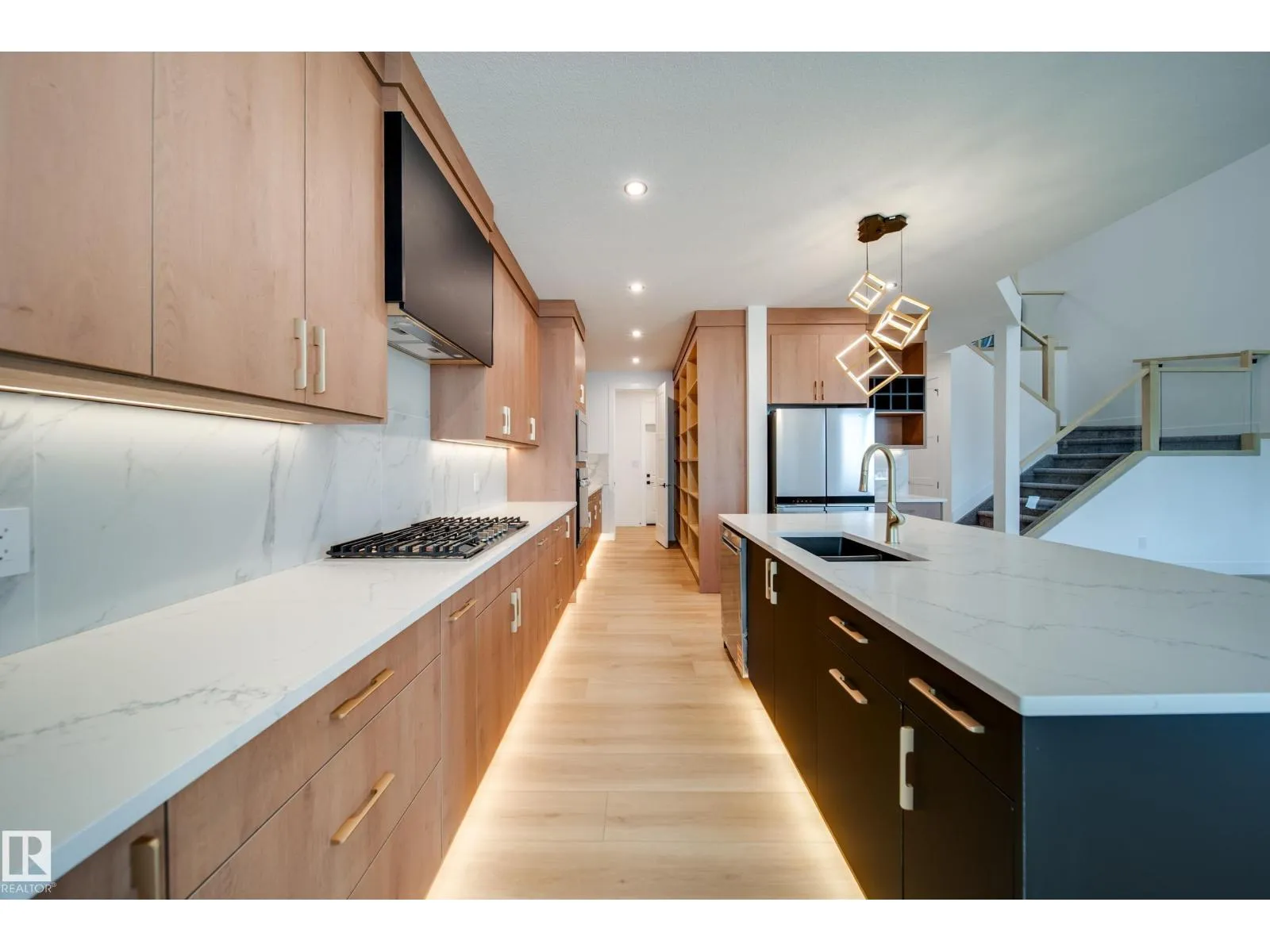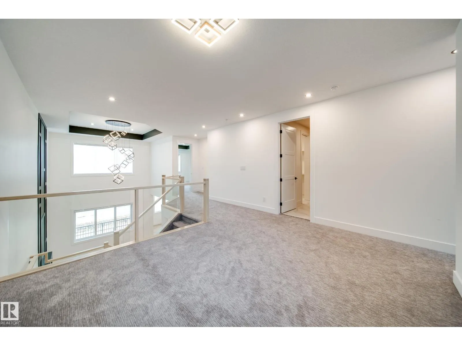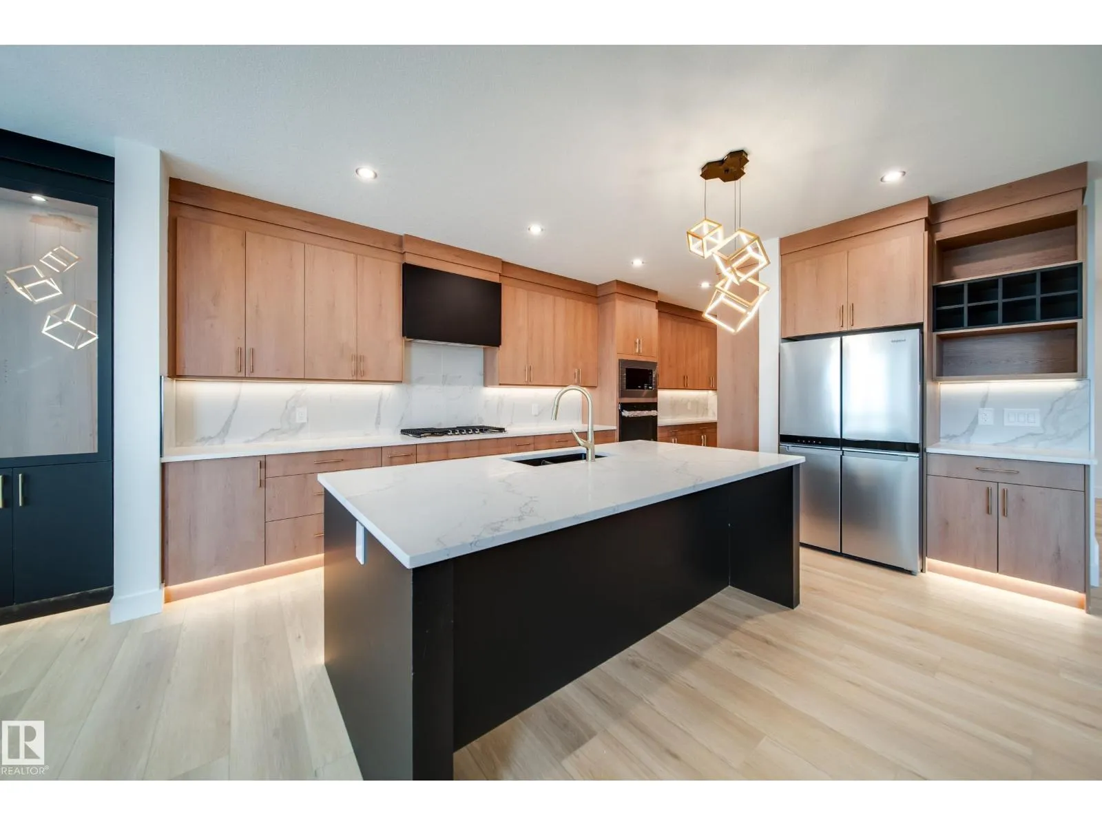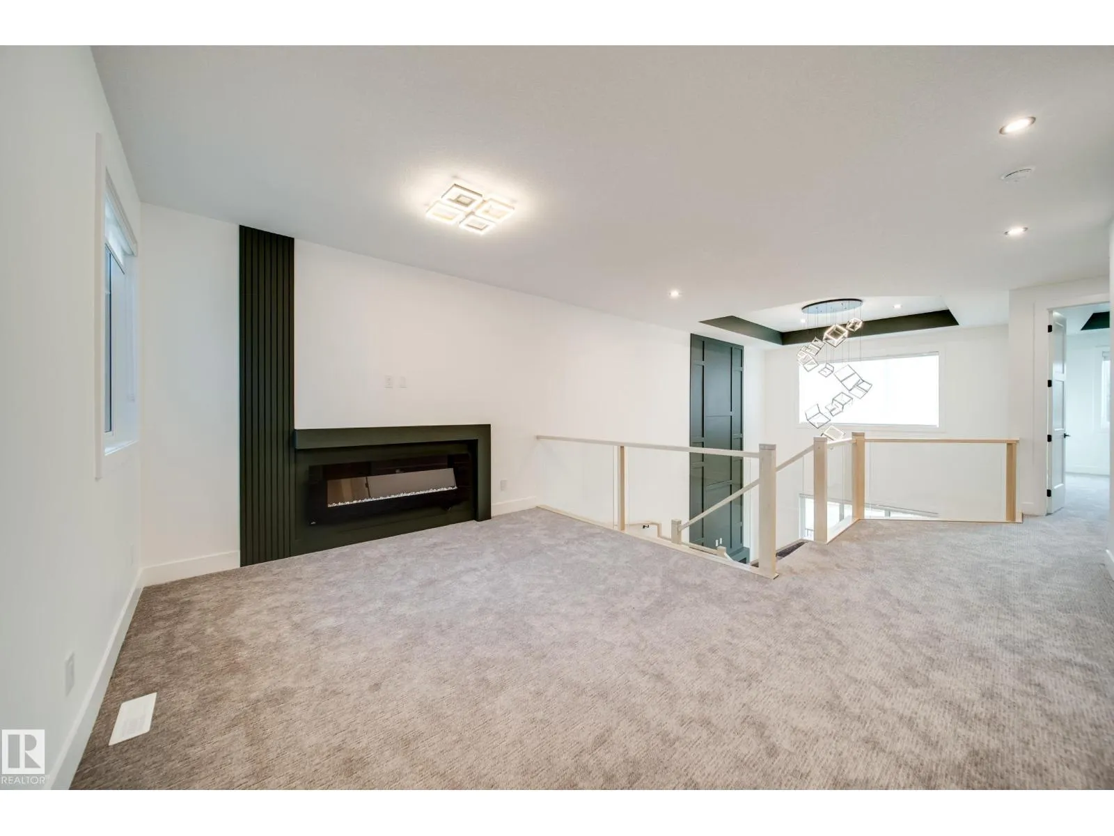 This SHOWSTOPPING TRIPLE CAR GARAGE WALKOUT home has every detail thoughtfully curated. Greeted by a bright, open layout w/9â ceilings, 8â doors, & premium finishes throughout. A dreamy chef's kitchen impresses w/ALL APPLIANCES INCLUDED, extended UPGRADED cabinetry w/ambient under lighting & sleek QUARTZ counters. An OPEN-TO-ABOVE great rm showcases a dramatic floor-to-ceiling CUSTOM millwork fireplace feat. wall. A flexible main den/4th bedrm pairs perfectly w/a 1/2 bath steps away. Upstairs, find a full bath, & unwind in a LARGE bonus rm w/a 2nd fireplace,+ 3 SPACIOUS bedrms incl. a LUXURY 5pc primary retreat w/dual sinks, HEATED TILE FLOORS, & a massive WIC conveniently connected to the upper laundry rm w/sink. An unfinished walkout basement offers endless possibilities & no rear neighbours means a serene backdrop from both the upper deck & lower patio. Complete w/exterior GEM lighting, WINDOW COVERINGS, & smart Ecobee thermostat, this home delivers turn key comfort, luxury & style from top to bottom. (id:27476)
