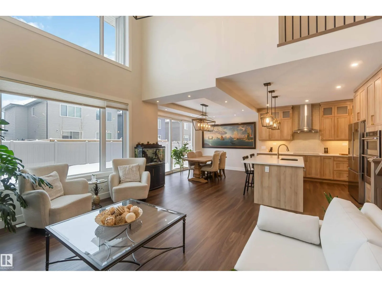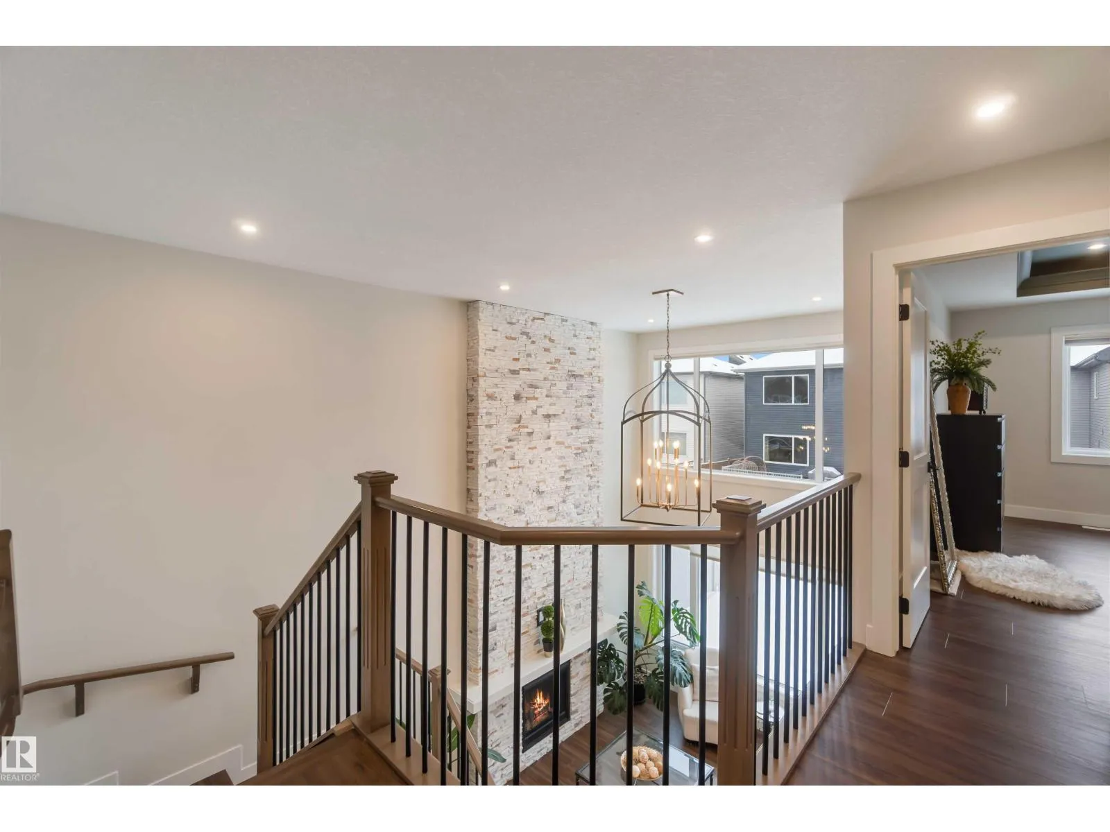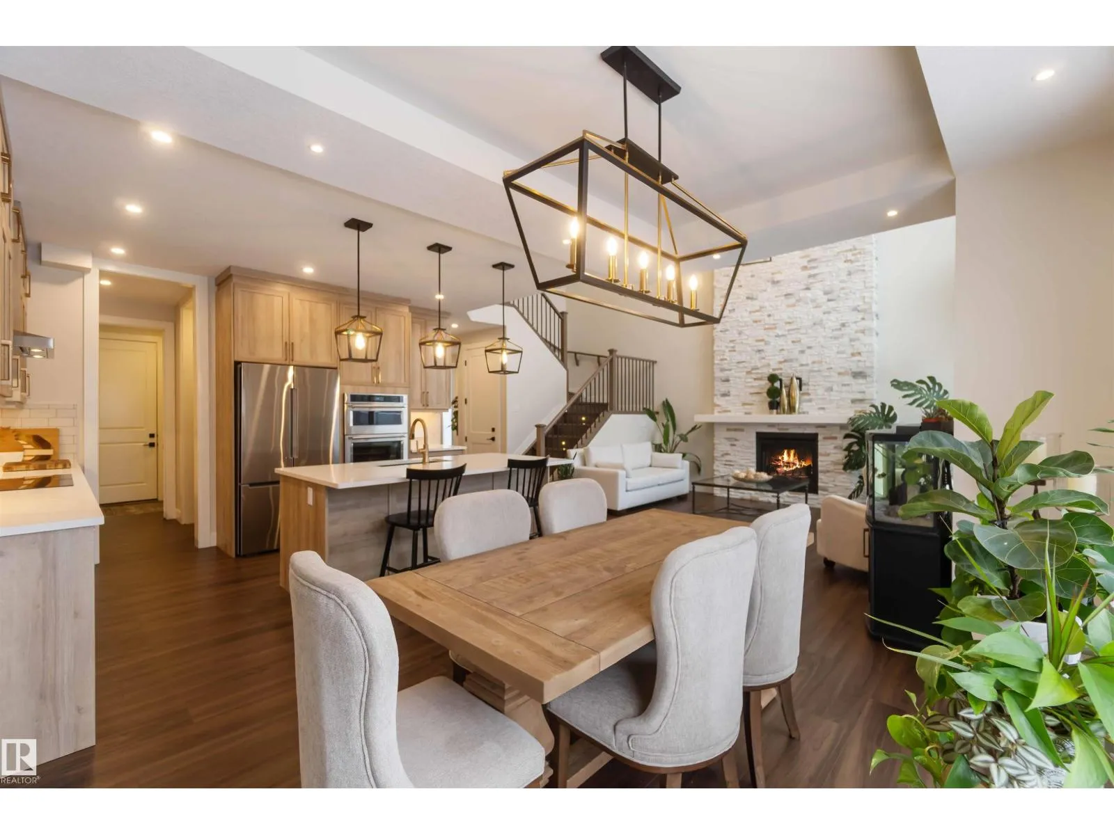 Beautiful 3-bedroom home with a triple attached heated garage and a fully finished 2-bedroom legal basement suite with separate entrance, ideal for rental income or private space for extended family. The main floor features a 2-piece bath and a striking great room with 17â ceilings, gas fireplace, and floor-to-ceiling stone feature wall. Entry from the garage leads to a spacious mudroom and butler-style walk-through pantry connecting to the kitchen, complete with real wood cabinet boxes. Additional upgrades include light commercialâgrade vinyl plank flooring, triple-pane windows with coverings, and a fully fenced backyard with low-maintenance vinyl fencing. Upstairs offers three bedrooms, including a primary suite with walk-in closet and 5-piece ensuite, a bonus room, 4-piece main bath, and convenient upper-level laundry. The legal basement suite includes its own stacked washer and dryer. Carpet is limited to the basement stairs only, ensuring easy maintenance throughout the home. (id:27476)