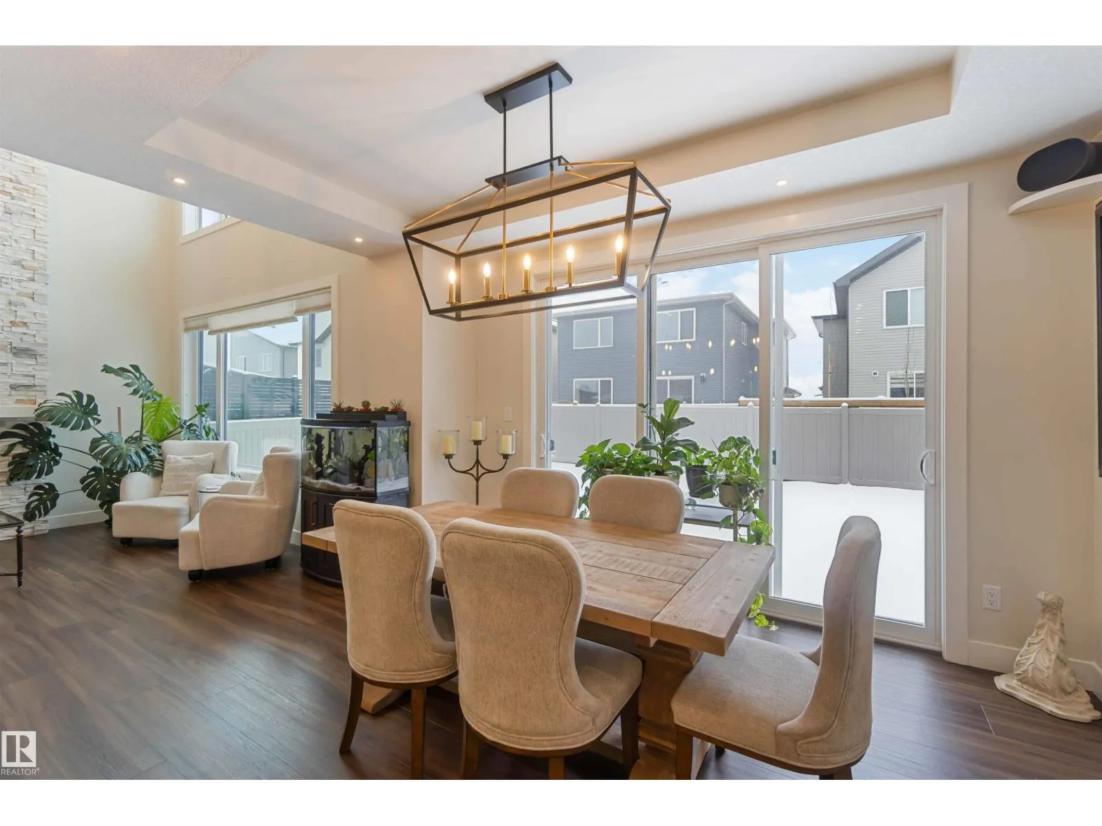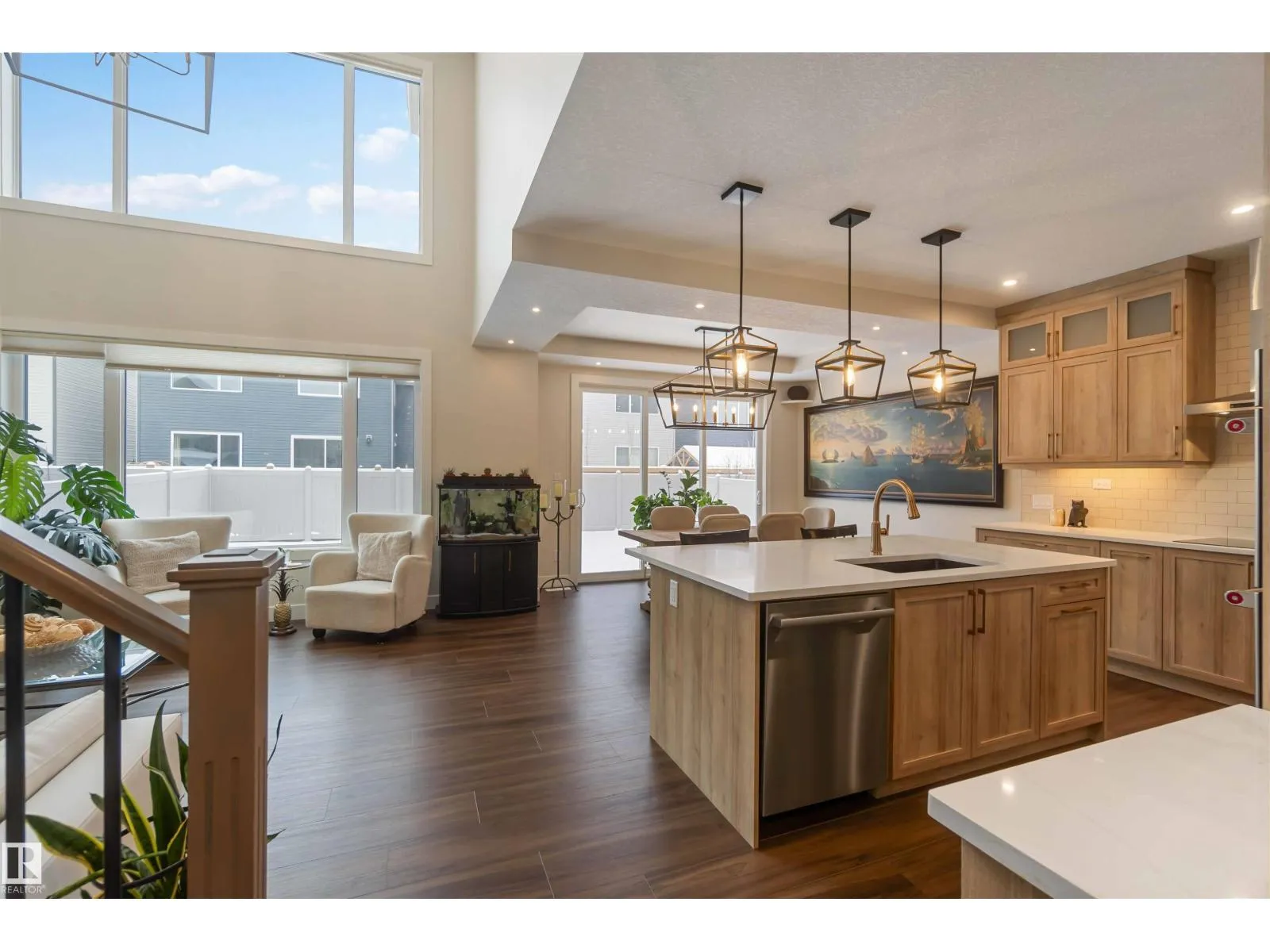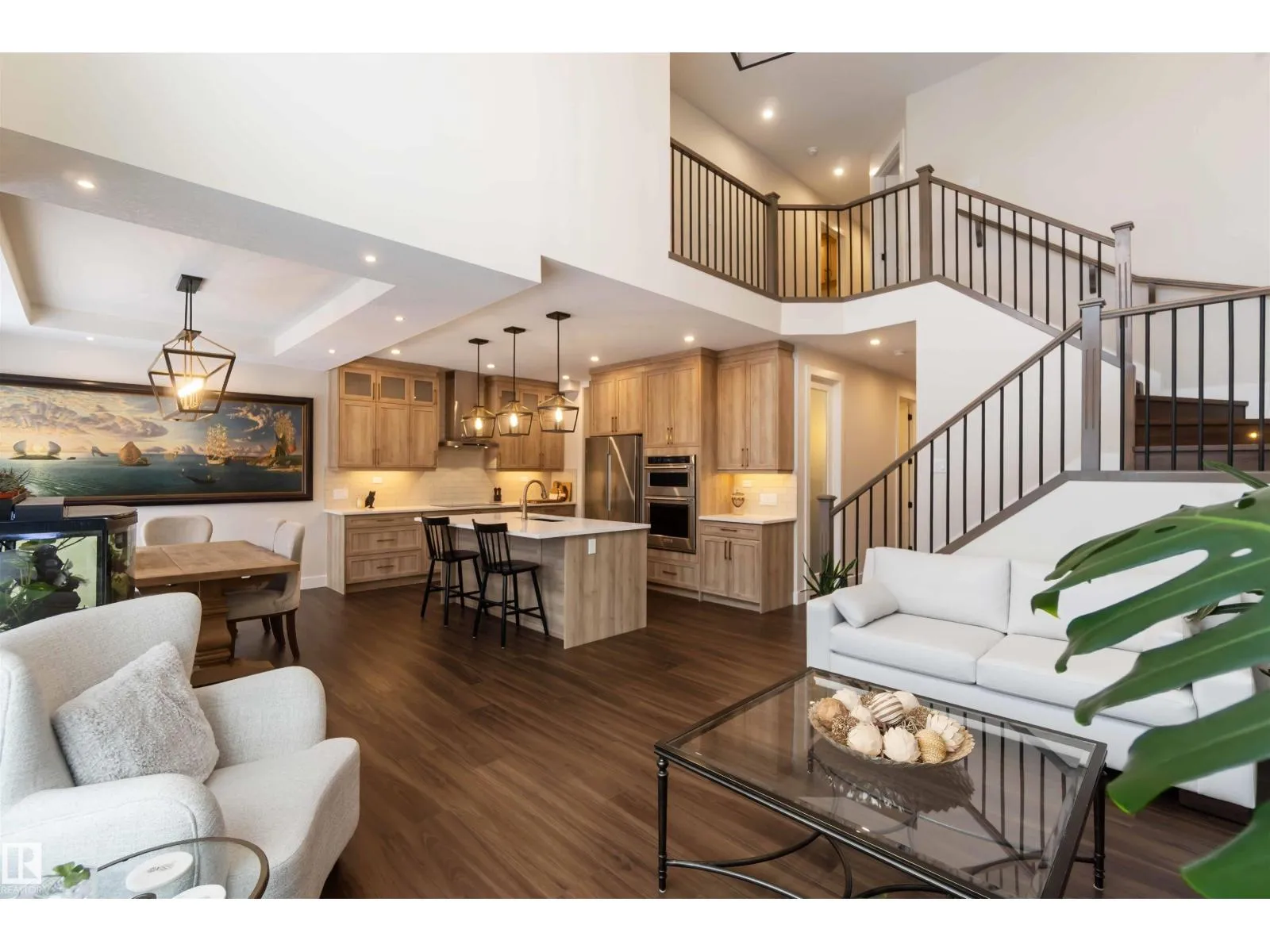 Beautiful 3-bedroom home with a triple attached heated garage and a fully finished 2-bedroom legal basement suite with separate entrance, ideal for rental income or private space for extended family. The main floor features a 2-piece bath and a striking great room with 17â ceilings, gas fireplace, and floor-to-ceiling stone feature wall. Entry from the garage leads to a spacious mudroom and butler-style walk-through pantry connecting to the kitchen, complete with real wood cabinet boxes. Additional upgrades include light commercialâgrade vinyl plank flooring, triple-pane windows with coverings, and a fully fenced backyard with low-maintenance vinyl fencing. Upstairs offers three bedrooms, including a primary suite with walk-in closet and 5-piece ensuite, a bonus room, 4-piece main bath, and convenient upper-level laundry. The legal basement suite includes its own stacked washer and dryer. Carpet is limited to the basement stairs only, ensuring easy maintenance throughout the home. (id:27476)
