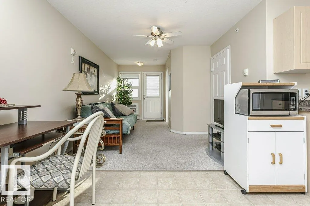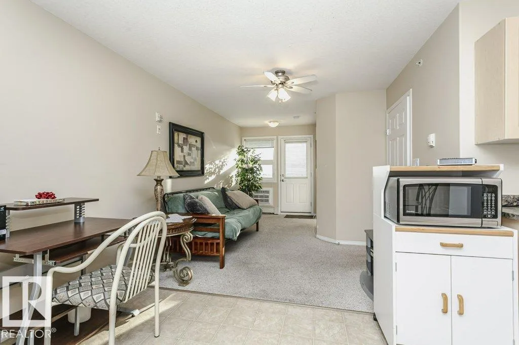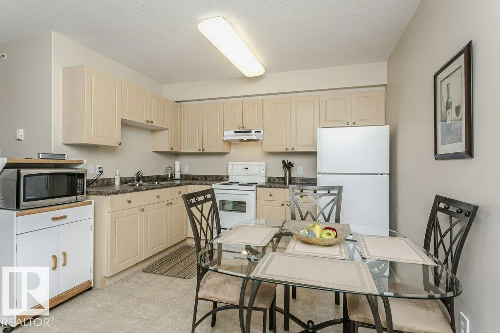 Ideal TOP floor apartment with a view of the City and South facing Balcony. Eat-in Kitchen with plenty of counter space and cabinetry and includes Fridge ,Stove ,Microwave with stand (plus all furniture and housewares are negotiable too) . Versatile suite featuring One Bedroom and garden door to deck. Spacious 3 piece bath with wide door ideal for wheelchair or walker accessibility. Total condo fee including the Meal plan is broken down as follows: $686.50 condo fee which includes Heat-Water, Cable Package, Insurance, Exterior Maintenance to Building, Reserve Fund and access to all amenities in building PLUS $420 per month for $12 per day credit for meal plan - Medical pendant for 24hr monitoring and Bi-Monthly Housekeeping and Laundry Service Total $1106.50 - Many amenities in the Fort Gardens at Southfort Bend such as: Restaurant - Social Programs - Billiards - Shuffleboard - Craft room - Social rooms and Guest Suites available for your company to stay at a nominal fee. 15 day possession available. (id:27476)