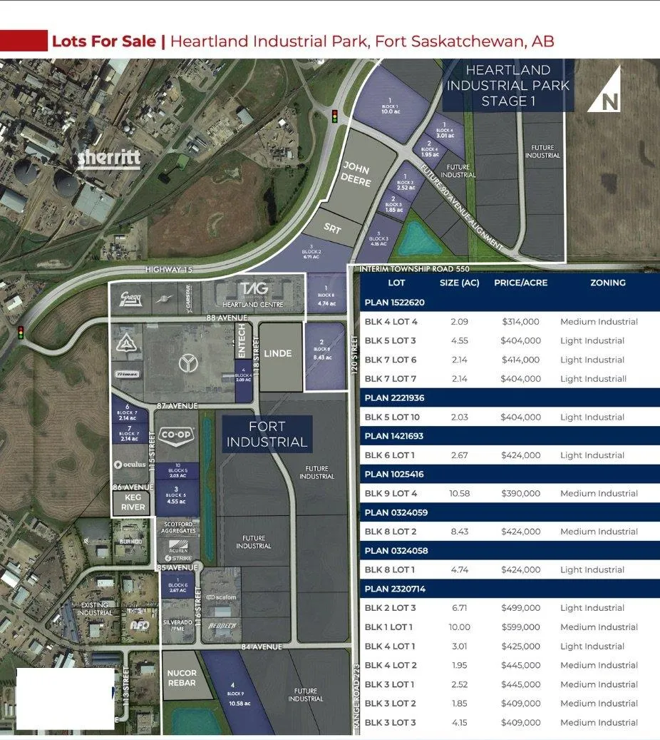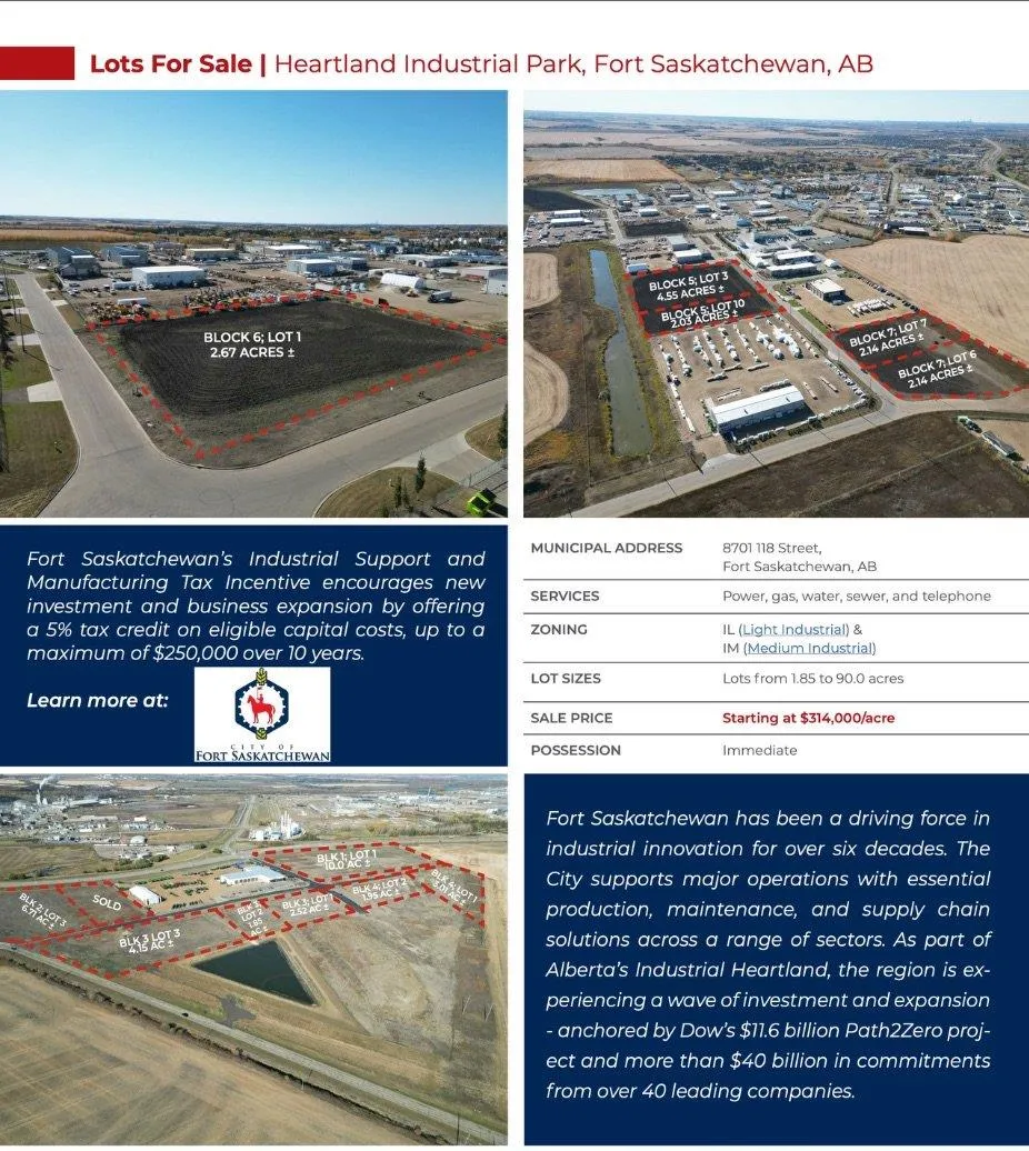Industrial lots for saleBuild to suit opportunities availableStrategically located in Albertaâs Industrial HeartlandHigh visibility along Highway 15 with traffic at an average of 52,000 vpdTax incentives available (id:27476)