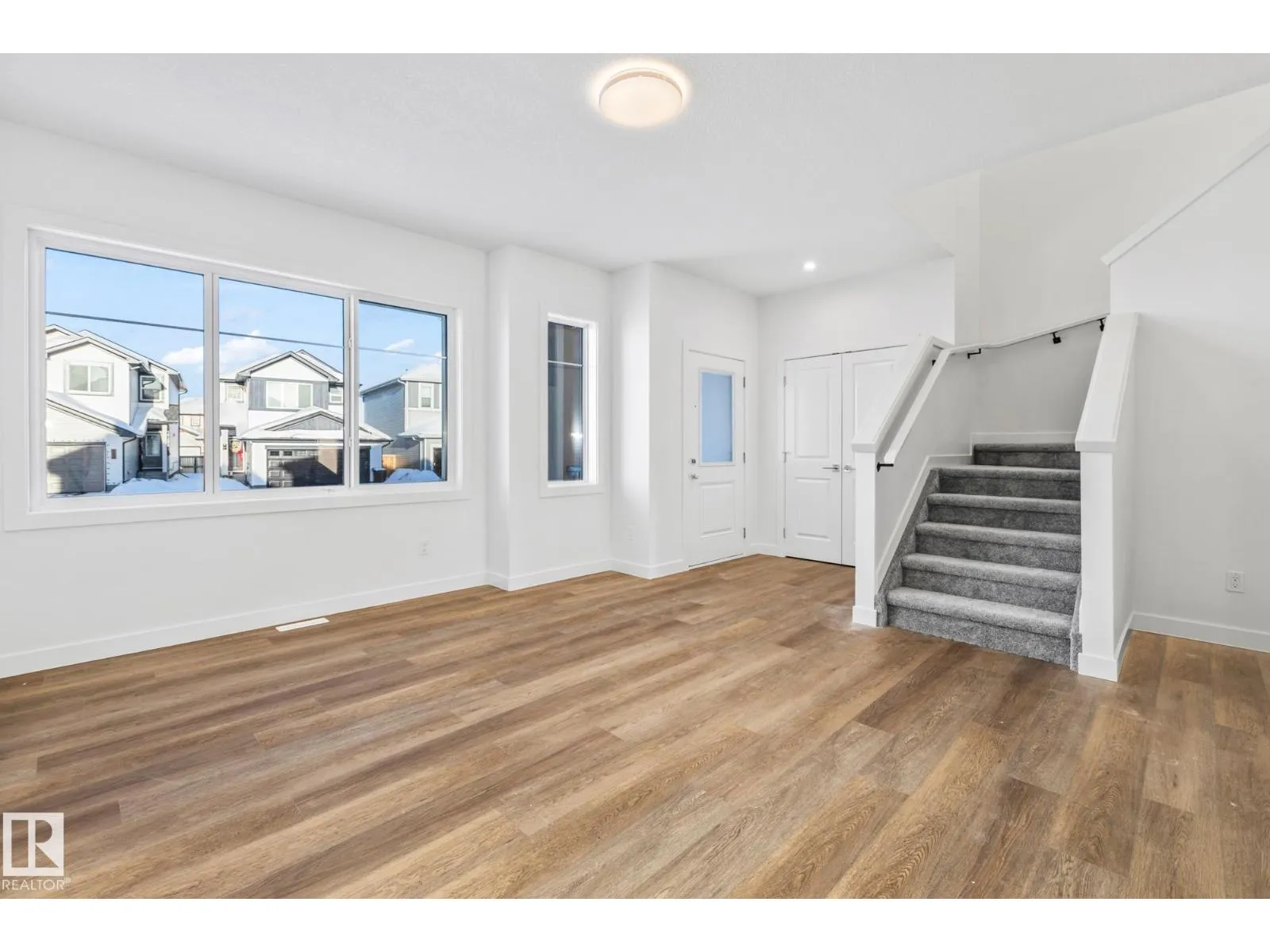 This stunning 3-bedroom, 3-bathroom single-family home offers modern comfort. The bright main floor features a welcoming living room filled with natural light from a large front window and highlighted by a sleek electric fireplace, flowing seamlessly into a spacious dining area and a well-appointed kitchen with ample cabinetry and counter space. A convenient 3-piece bathroom, den, and a functional mudroom with built-in shelving and hooks complete the main floor. Upstairs, the primary bedroom serves as a relaxing retreat with a private ensuite and walk-in closet, while two additional bedrooms, a full bathroom, and a convenient upper-level laundry room complete the space. Close to many amenities including schools and shopping centers this home is perfect for all your families needs! (id:27476)