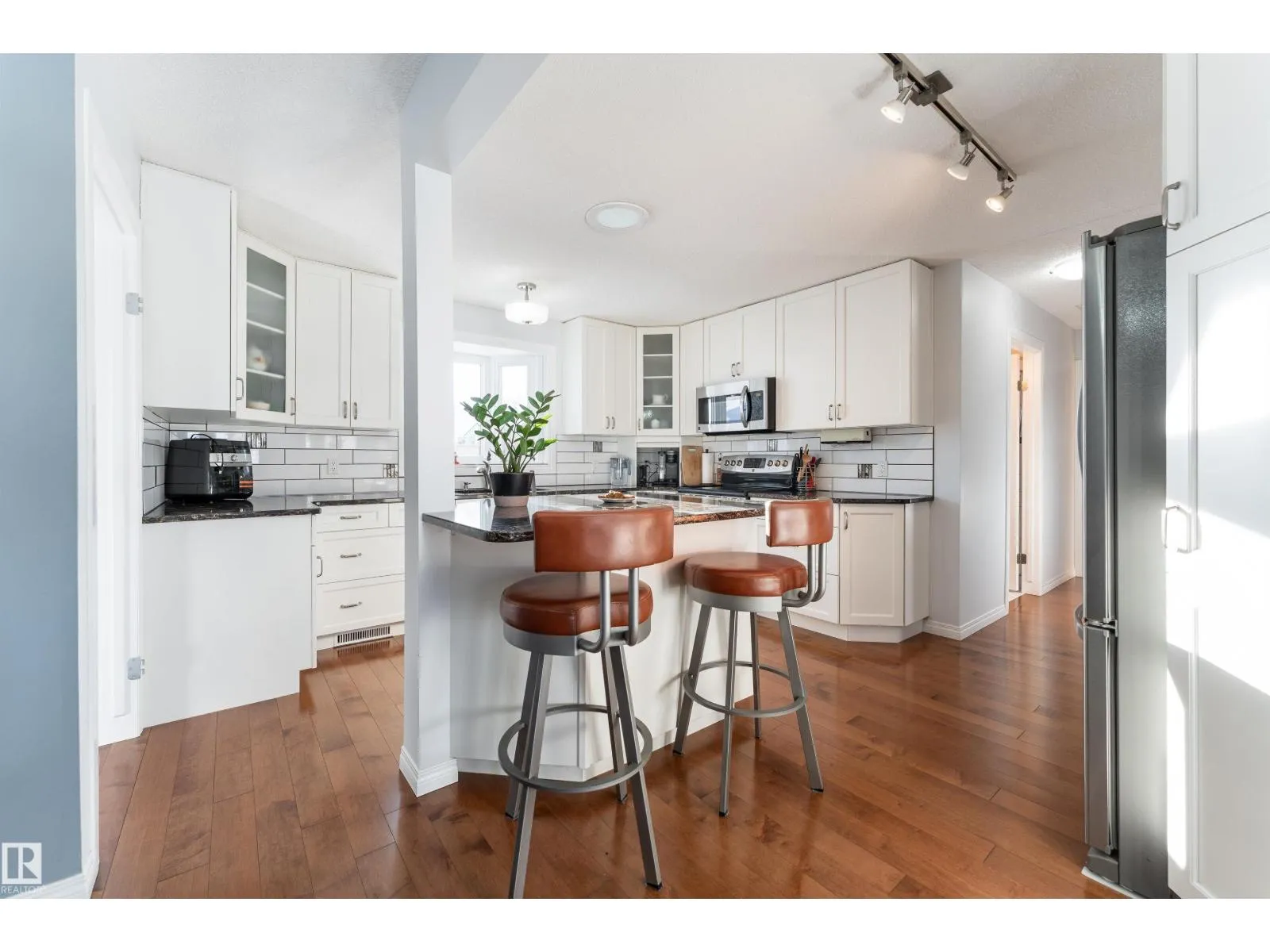 Nicely upgraded 1,316 sqft bungalow located on a quiet, tree-lined street close to schools, walking trails, and green space. The bright kitchen offers ample white cabinetry, quartz countertops, stainless steel appliances, sun tunnel and beautiful hardwood floors throughout the dining and living area. The updated 4-piece main bathroom features a separate tub and shower with convenient access from both the hallway and primary bedroom. Originally a 3-bedroom layout upstairs, two bedrooms were combined to create an expanded primary bedroom and bathroom, the original primary bedroom remains generously sized and includes a 2-piece ensuite. Numerous updates include roof(2019),front door(2019) and panel box(2024). The basement is set up with a potential second kitchen, two additional bedrooms, an updated 3-piece bathroom, and plenty of storage. Outside youâll find a heated(2022) 24â x 24â detached garage, additional front parking pad, and central A/C(2018) to keep you comfortable all summer long. (id:27476)