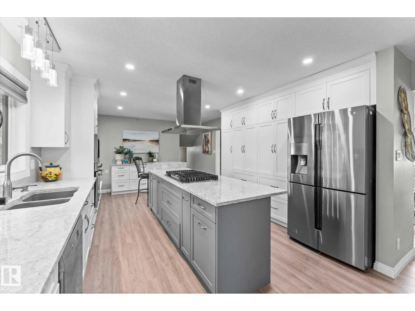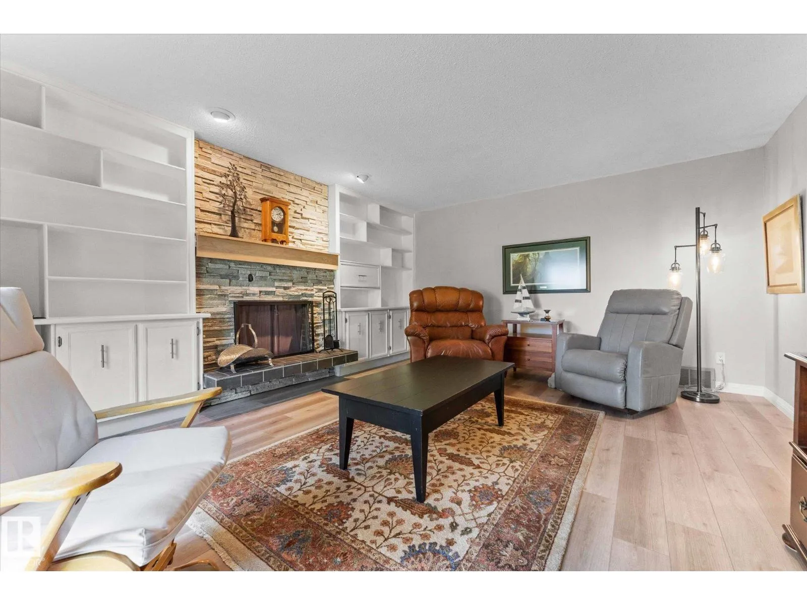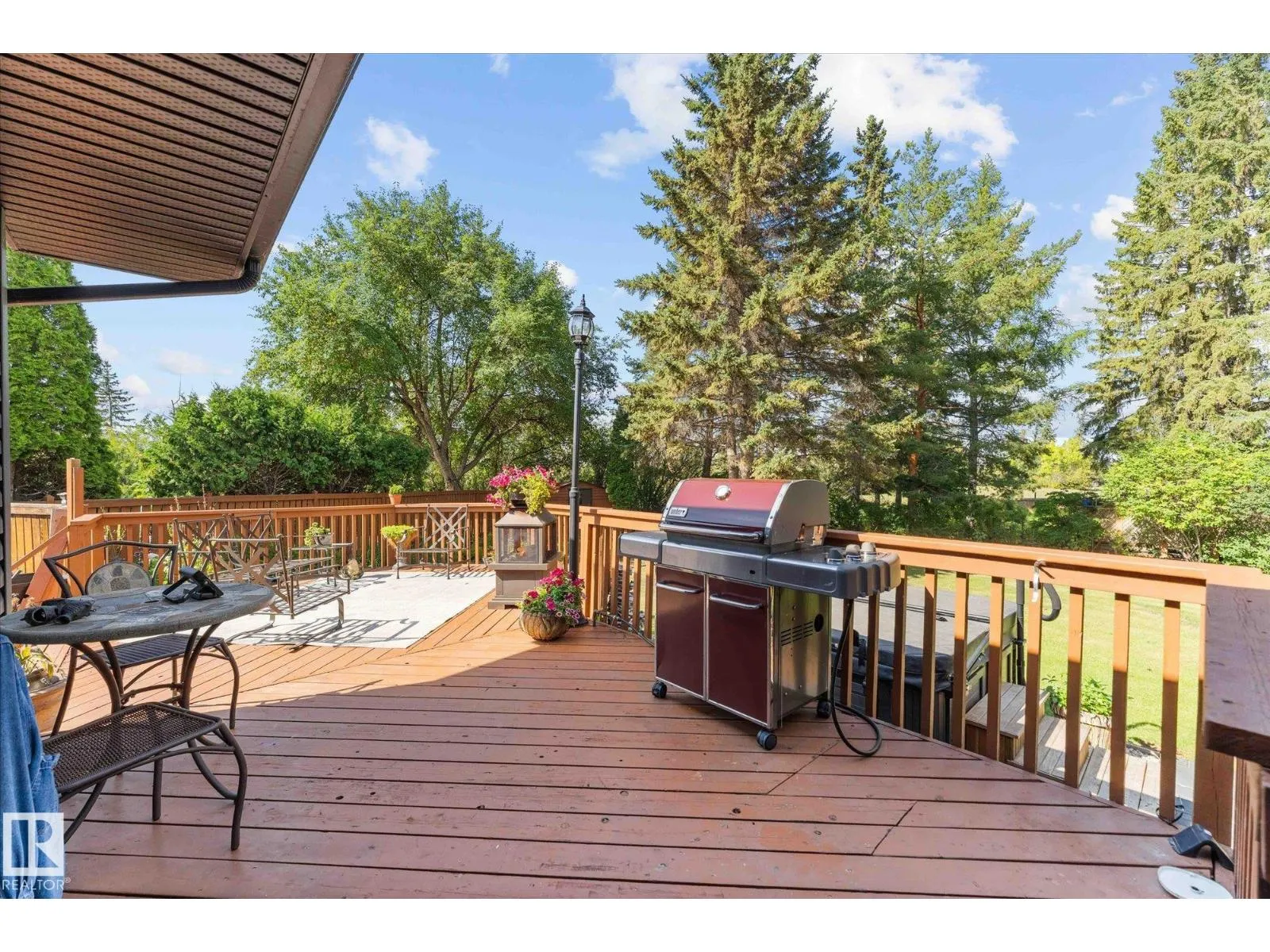 Backing directly onto the RIVER VALLEY, this 2,200+ sq ft 4-level split combines unbeatable space, location, & updates. Curb appeal shines with a completely updated exterior! Inside, new vinyl plank flooring and railings lead to a bright living room, formal dining area, & a completely remodelled kitchen with quartz counters, custom cabinetry, & modern appliances. Upstairs, discover 4 bedrooms including the primary retreat with private balcony overlooking the massive yard, walk-in closet, & 3-pc ensuite. A 4-pc bath completes this level. The lower level offers a cozy family room with stone fireplace surround and built-ins, plus sliding doors to the patio, and a convenient half bath. The finished basement adds 2 more bedrooms, laundry, and a flex/family room. Outside, enjoy the pie shape yard with a huge deck for entertaining, mature trees, fire pit area, & direct access to nature. With an attached double garage, & close to parks, schools, highway access & amenities, this is a rare river valley gem! (id:27476)