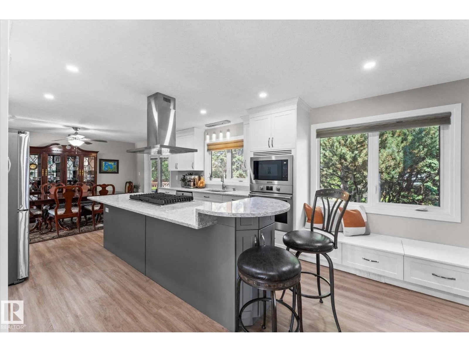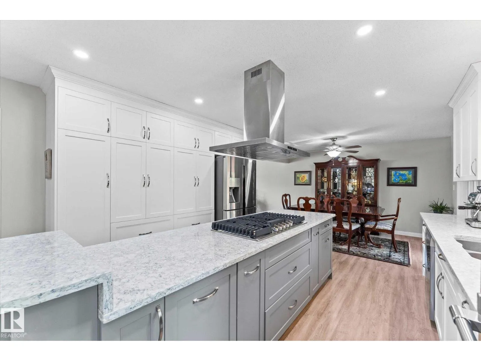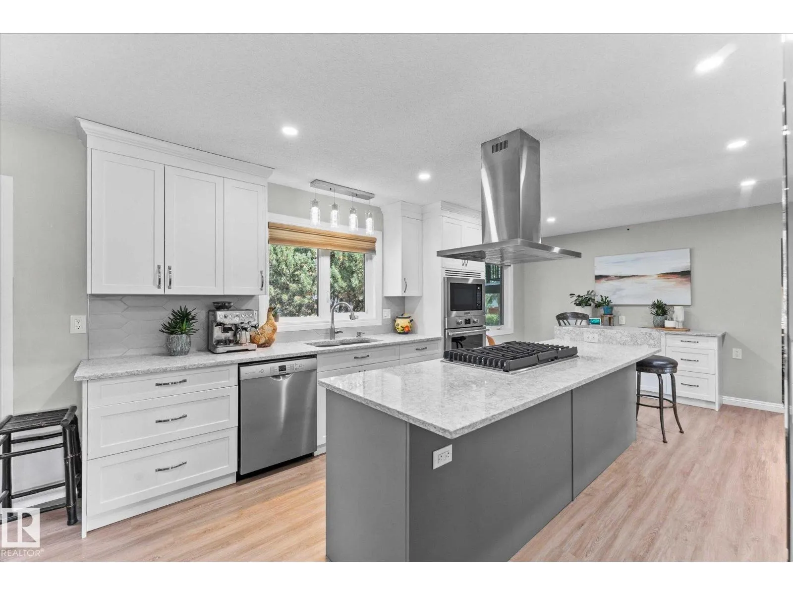 Backing directly onto the RIVER VALLEY, this 2,200+ sq ft 4-level split combines unbeatable space, location, & updates. Curb appeal shines with a completely updated exterior! Inside, new vinyl plank flooring and railings lead to a bright living room, formal dining area, & a completely remodelled kitchen with quartz counters, custom cabinetry, & modern appliances. Upstairs, discover 4 bedrooms including the primary retreat with private balcony overlooking the massive yard, walk-in closet, & 3-pc ensuite. A 4-pc bath completes this level. The lower level offers a cozy family room with stone fireplace surround and built-ins, plus sliding doors to the patio, and a convenient half bath. The finished basement adds 2 more bedrooms, laundry, and a flex/family room. Outside, enjoy the pie shape yard with a huge deck for entertaining, mature trees, fire pit area, & direct access to nature. With an attached double garage, & close to parks, schools, highway access & amenities, this is a rare river valley gem! (id:27476)