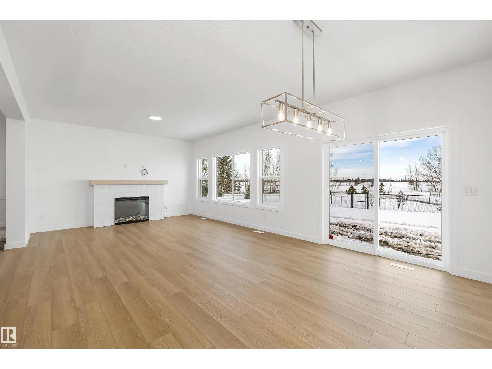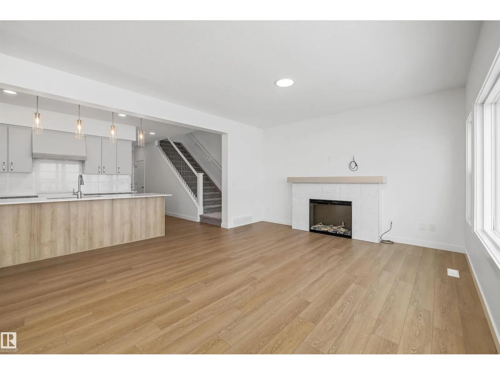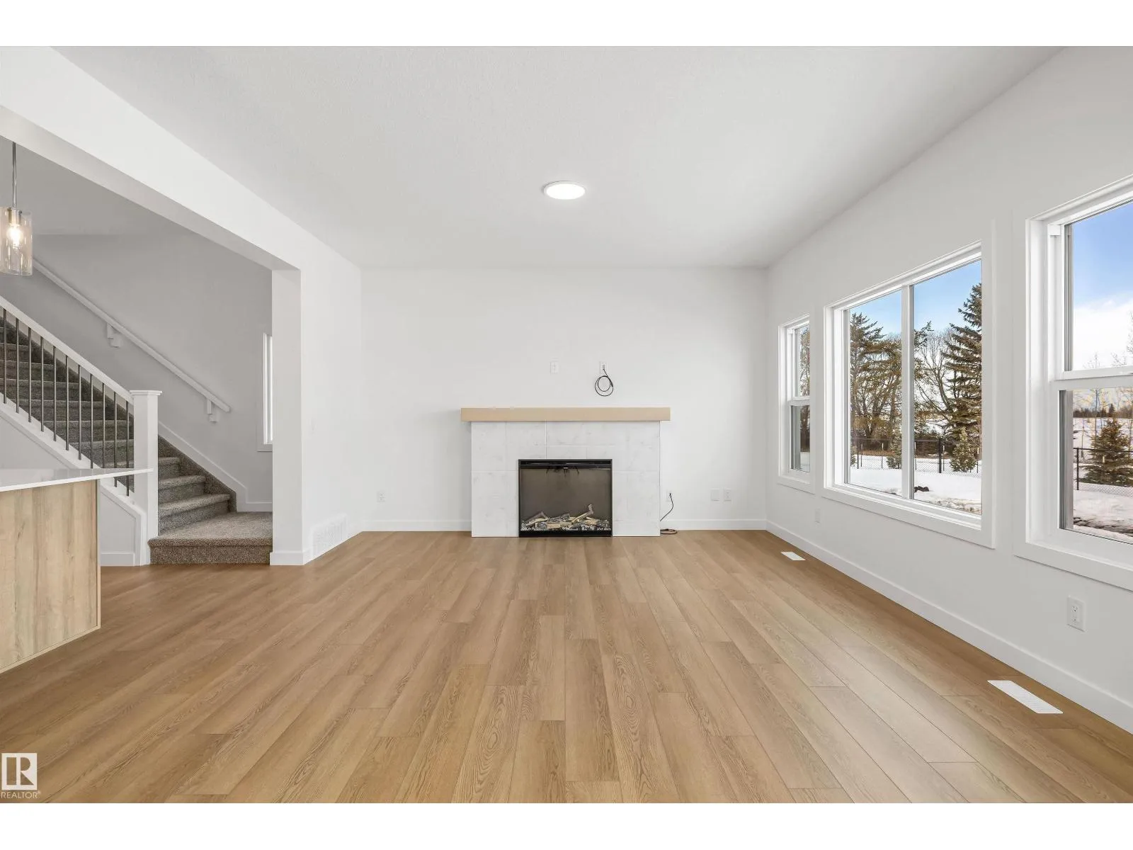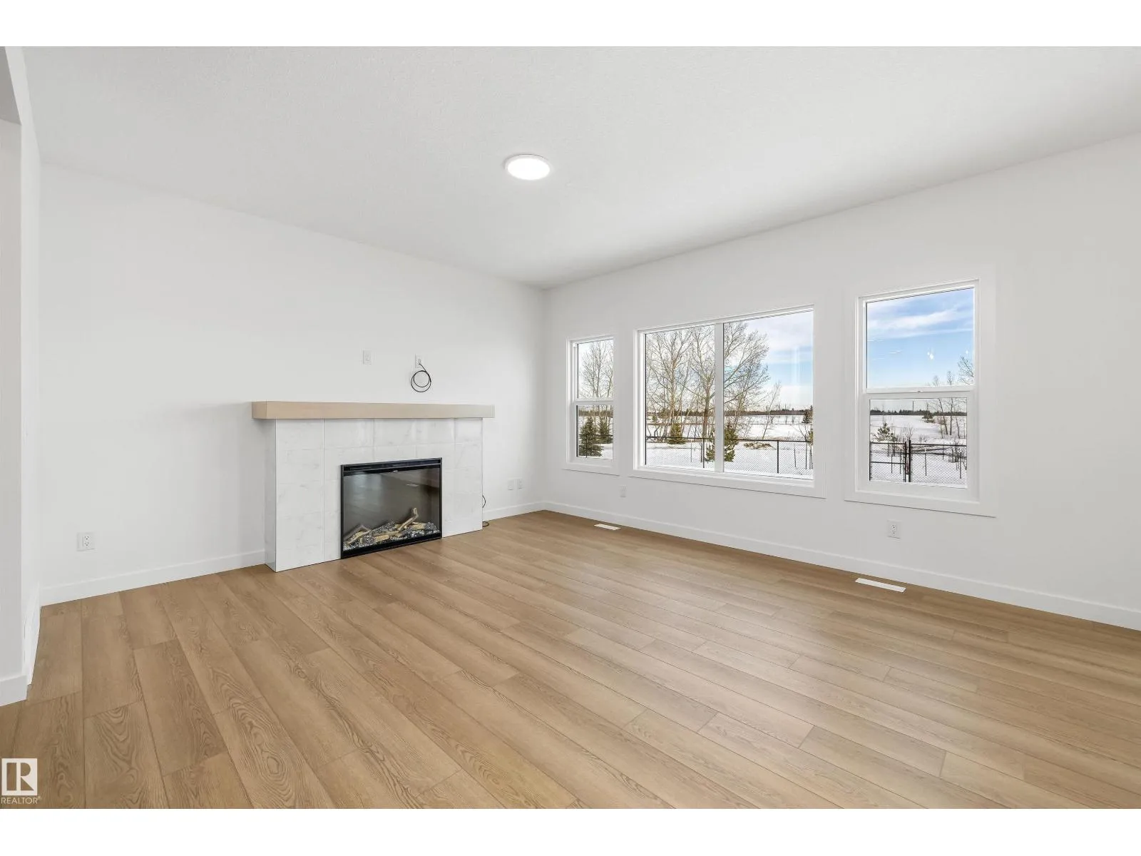 Built by Sterling Homes, this beautifully finished home in Sienna blends style and thoughtful design in a welcoming Fort Saskatchewan community. Triple pane windows and 9 ft ceilings brighten the main floor. The kitchen shines with quartz countertops, a large island, upgraded cabinetry with deep drawers and pull outs, custom hood fan, and a walk in butlerâs pantry with sink and bar fridge space. The open layout features a tiled fireplace and oversized windows overlooking the yard. Upstairs offers a bonus room, 5 piece ensuite with freestanding tub, glass shower, walk in closet with laundry access, two bedrooms, double attached garage with drain, side entrance, LVP flooring, and basement rough ins. (id:27476)