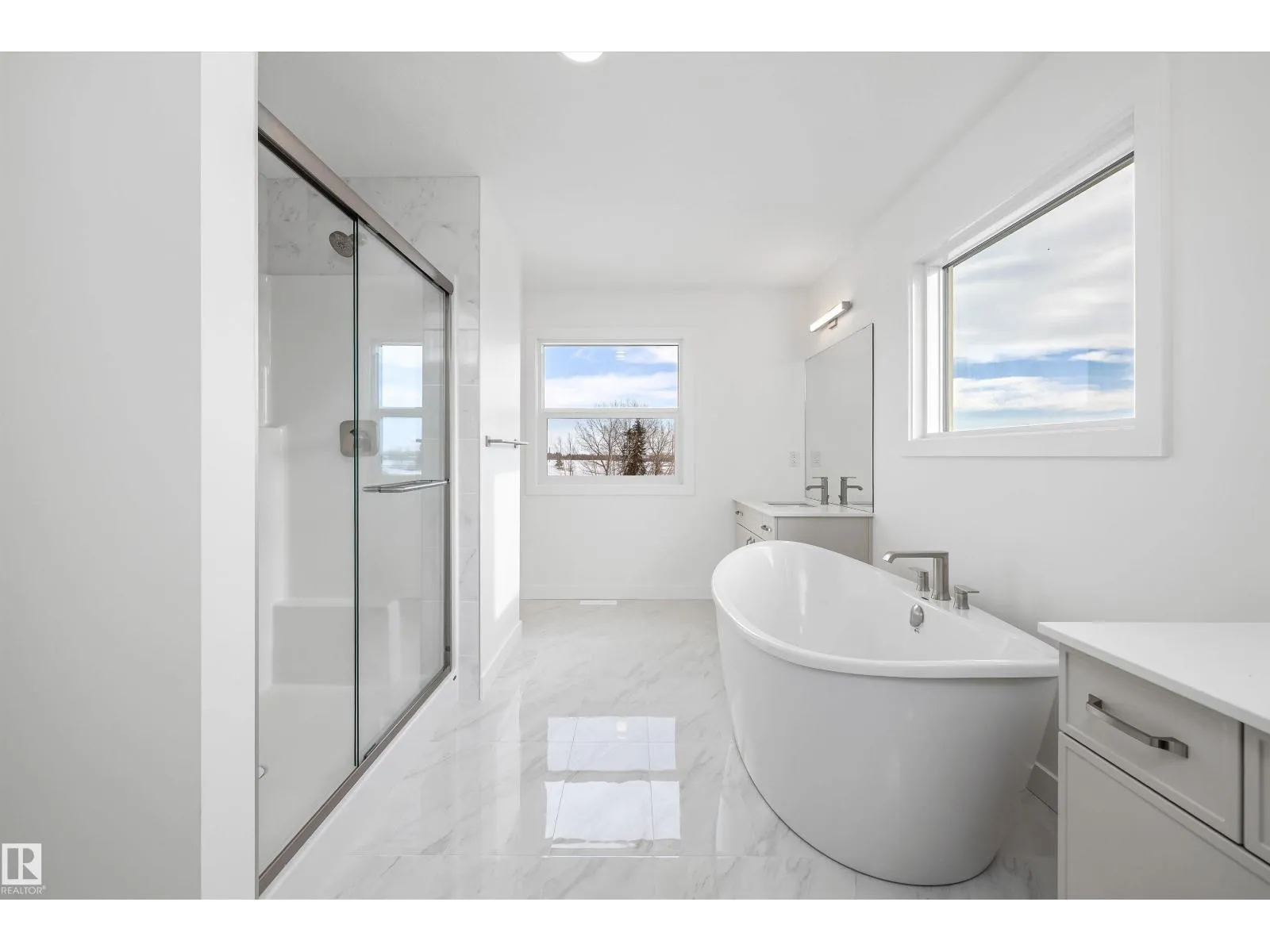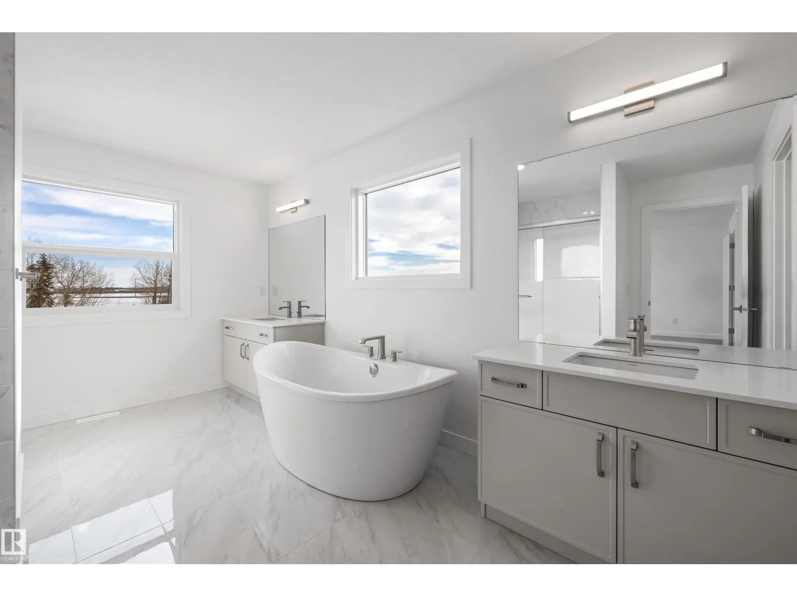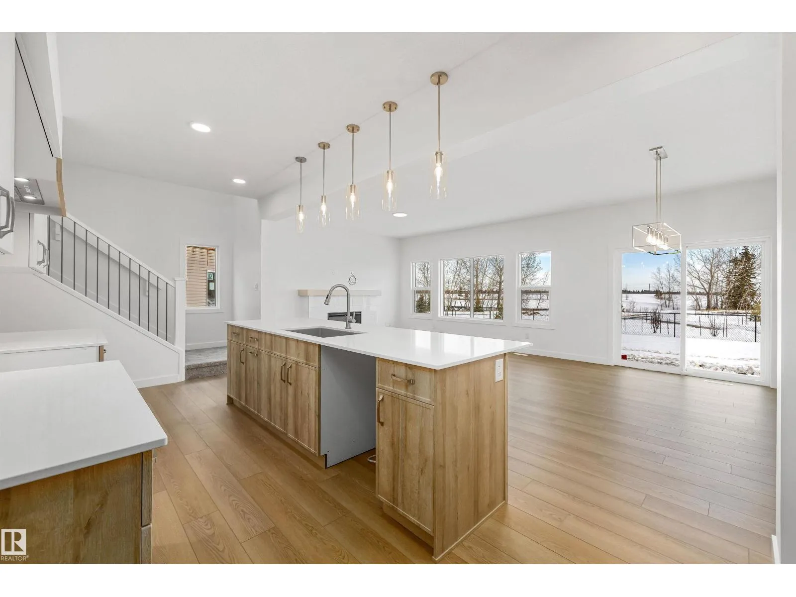 Built by Sterling Homes, this beautifully finished home in Sienna blends style and thoughtful design in a welcoming Fort Saskatchewan community. Triple pane windows and 9 ft ceilings brighten the main floor. The kitchen shines with quartz countertops, a large island, upgraded cabinetry with deep drawers and pull outs, custom hood fan, and a walk in butlerâs pantry with sink and bar fridge space. The open layout features a tiled fireplace and oversized windows overlooking the yard. Upstairs offers a bonus room, 5 piece ensuite with freestanding tub, glass shower, walk in closet with laundry access, two bedrooms, double attached garage with drain, side entrance, LVP flooring, and basement rough ins. (id:27476)