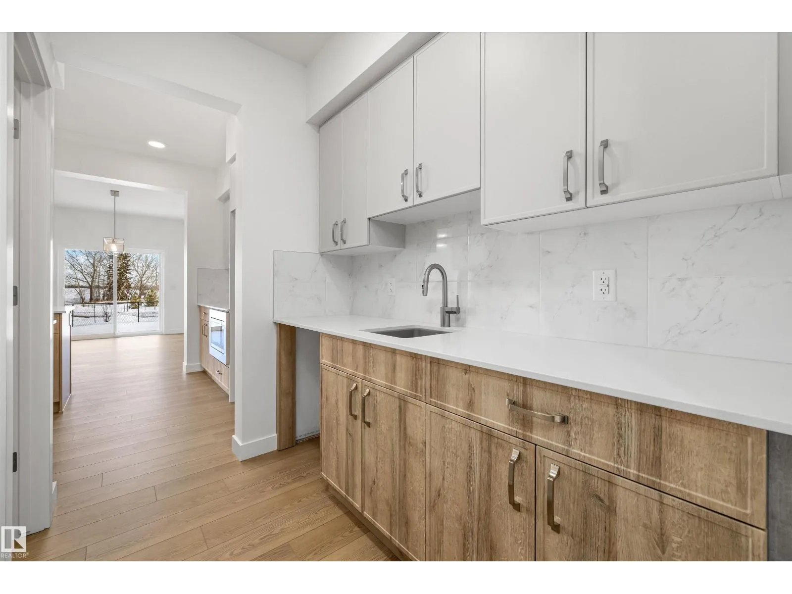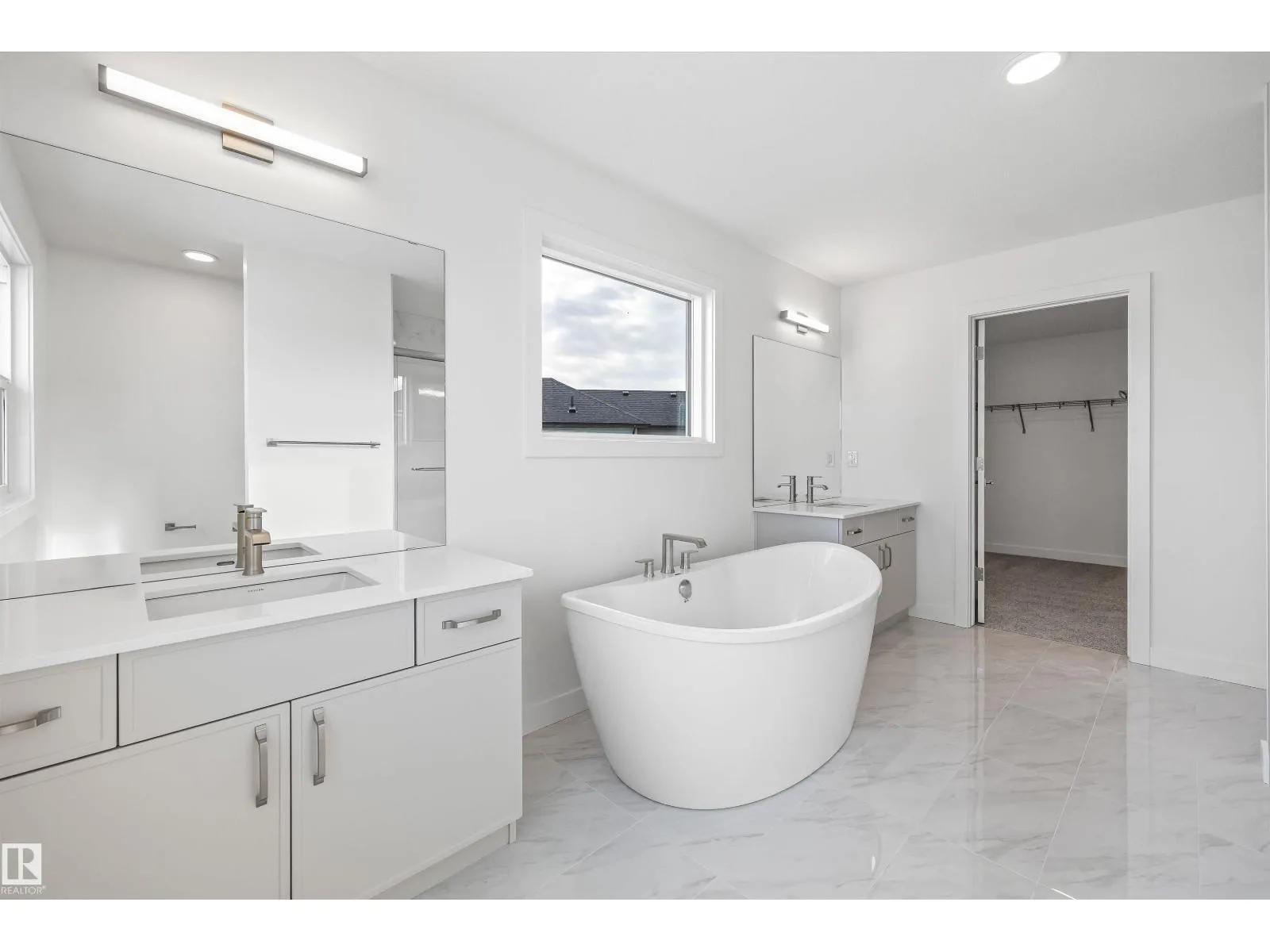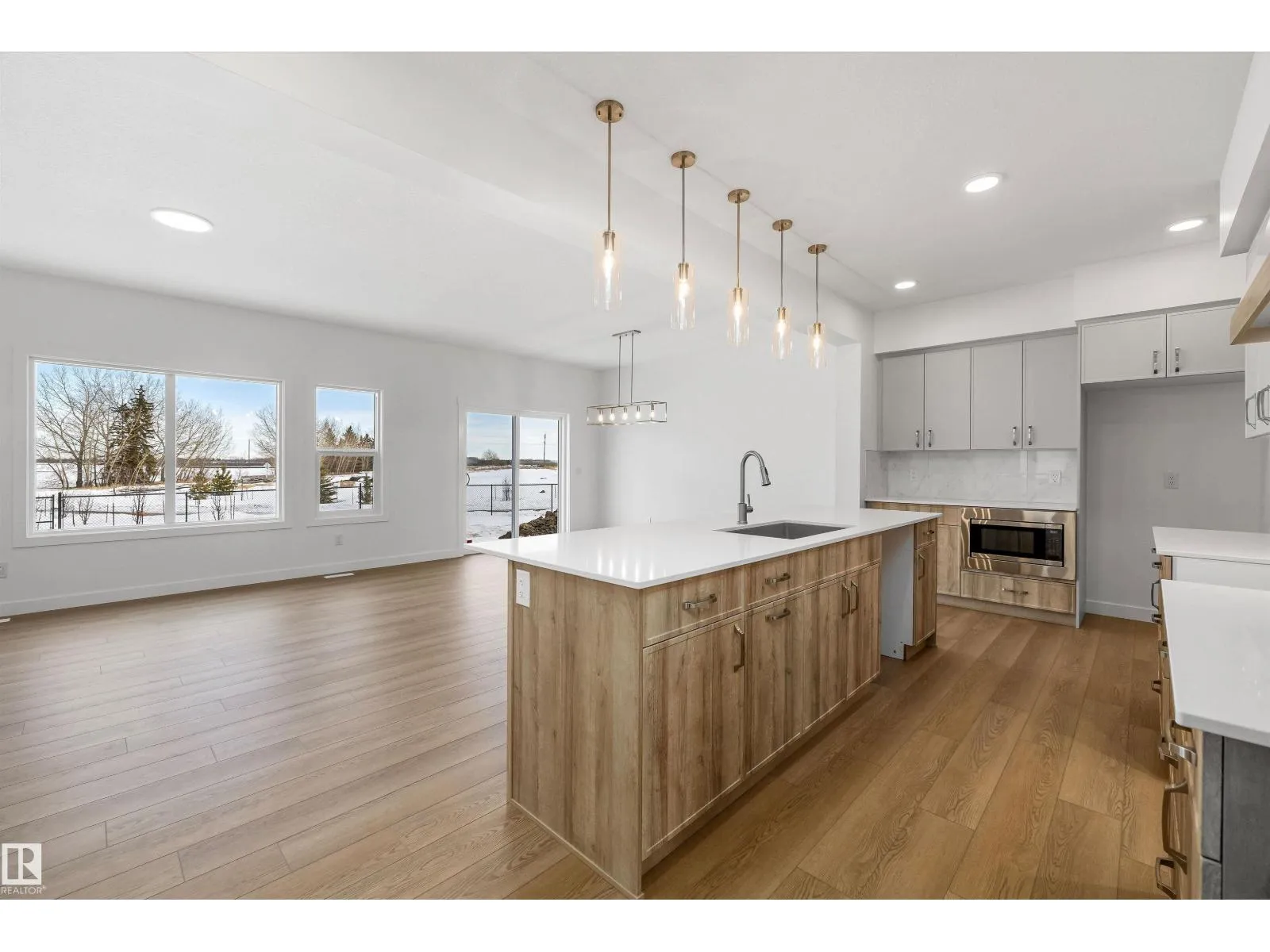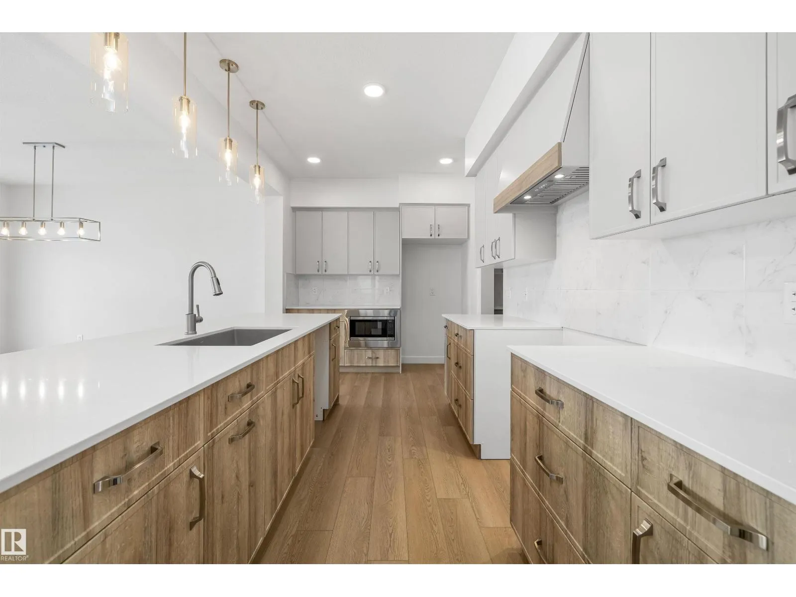 Built by Sterling Homes, this beautifully finished home in Sienna blends style and thoughtful design in a welcoming Fort Saskatchewan community. Triple pane windows and 9 ft ceilings brighten the main floor. The kitchen shines with quartz countertops, a large island, upgraded cabinetry with deep drawers and pull outs, custom hood fan, and a walk in butlerâs pantry with sink and bar fridge space. The open layout features a tiled fireplace and oversized windows overlooking the yard. Upstairs offers a bonus room, 5 piece ensuite with freestanding tub, glass shower, walk in closet with laundry access, two bedrooms, double attached garage with drain, side entrance, LVP flooring, and basement rough ins. (id:27476)