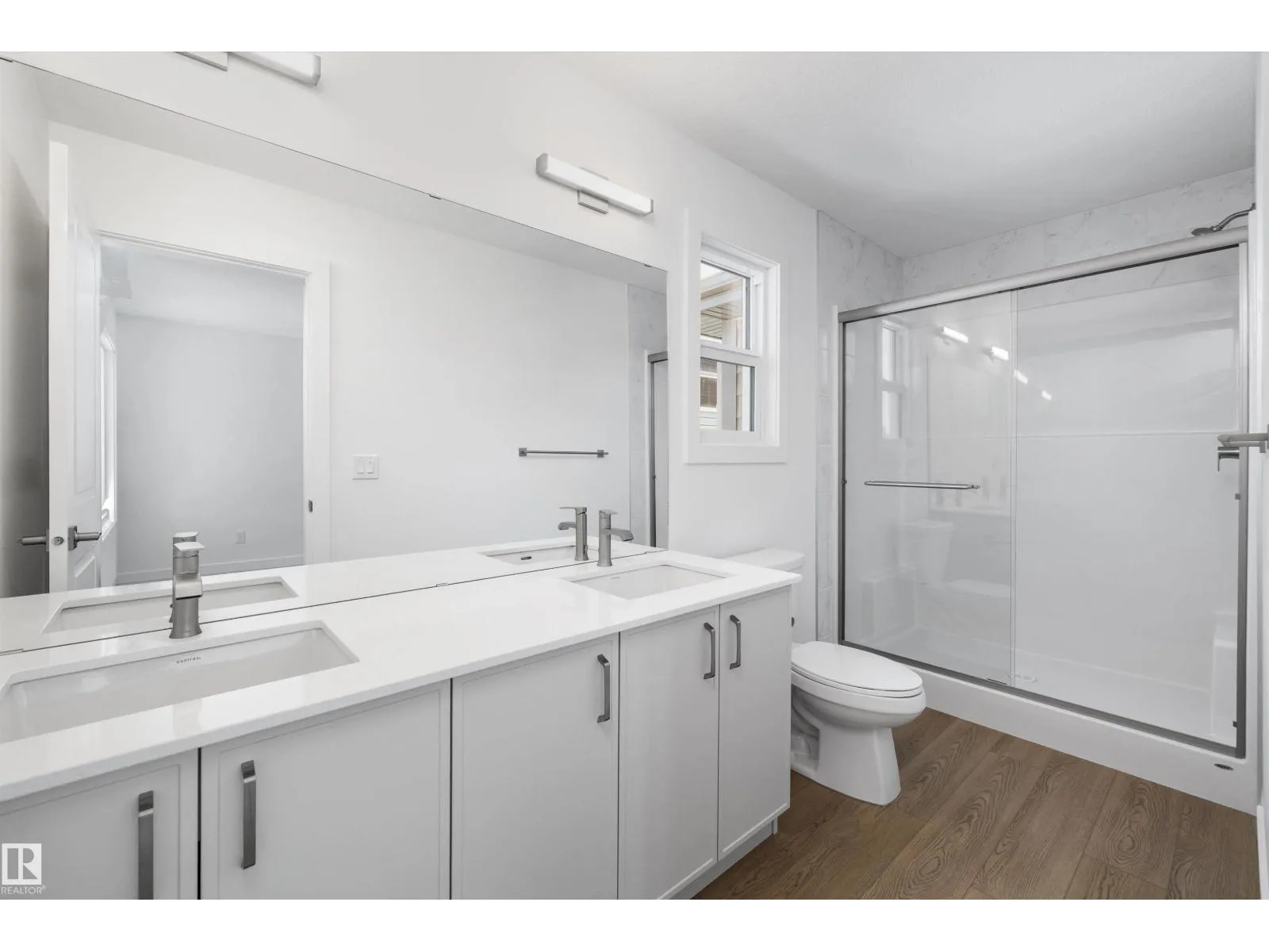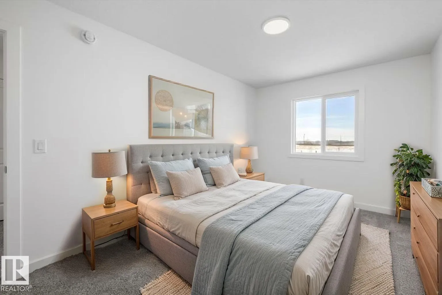 Built by Sterling Homes, this front-attached home in Sienna offers bright, modern living in a family-focused community with parks, walking paths, and nearby amenities. Triple pane windows and 9â ceilings create an open feel on the main floor, where a welcoming foyer leads to a spacious great room with an electric fireplace. The kitchen features quartz countertops, a large island with seating, upgraded cabinetry, chimney-style hood fan, built-in microwave, and a corner pantry. Large rear windows and a garden door bring in natural light, and a half bath completes the level. Upstairs, the primary suite includes a walk-in closet with a window and a 4-piece ensuite with double sinks and glass-door shower. A central bonus room, two bedrooms, full bath, and upper-floor laundry add everyday comfort. Luxury vinyl plank flooring, upgraded railings, side entrance, oversized double attached garage with floor drain, and basement rough-ins complete this Fort Saskatchewan home. (id:27476)