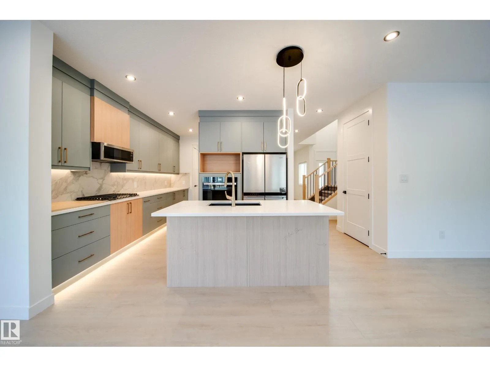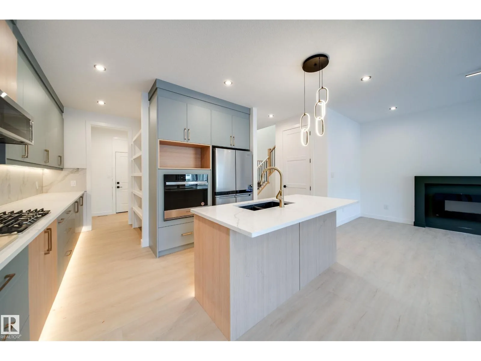 This professionally curated BRAND NEW half duplex greets you w/ a GRAND open-to-above entrance & a large front foyer that can easily accommodate an open-concept office. Included UPGRADES like WINDOW COVERINGS and WHIRPOOL APPLIANCES! Enjoy 9'ceilings, 8'doors, LVP flooring, maple railing & Ecobee wifi thermostat. Kitchen impresses w/EXTENDED walk-thru pantry, QUARTZ countertops, UPGRADED cabinetry, tile backsplash, GAS cooktop & built-in wall oven. The bright open-concept living & dining area, anchored by a cozy electric fireplace & feature wall, creates the perfect space to unwind. Upstairs, find 3 generous bedrooms & 2 bathrooms w/TILE SURROUND showers incld. primary retreat w/ WIC & 3pc ensuite, plus laundry w/SINK & built-in cabinetry & SPACIOUS bonus rm. SIDE ENTRY to the unfinished basement awaits your personal touch. OVERSIZED DOUBLE attached garage w/drain & extended driveway provides extra parking. Step outside to your yard & private deck w/glass privacy panels. (id:27476)