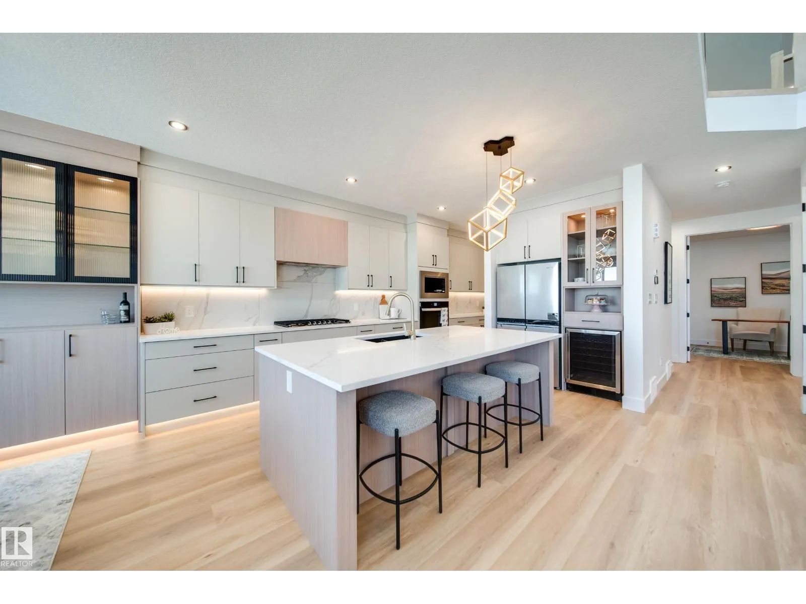 UPGRADES UPGRADES UPGRADES! Step inside to LUXURY VINYL PLANK flooring and PLUSH CARPET throughout the home! The chef inspired kitchen offers BUILT-IN WALL OVEN and GAS STOVETOP! EXTENDED UPGRADED CABINETRY w/ ambient under-lighting is sure to wow your guests. The main floor offers 9' CEILINGS W/ 8' DOORS and a cozy DEN/BEDROOM, perfect for an office or playroom! The magnificent OPEN TO BELOW living room features FLOOR TO CEILING FEATURE WALL! Upstairs, you will be welcomed by a BONUS ROOM, 3 bedrms & 2 baths. The primary suite w/ENSUITE BATHROOM features DOUBLE SINKS, and a WIC leading to UPSTAIRS LAUNDRY. Enjoy comfort using your ECOBEE SMART THERMOSTAT connected to HIGH EFFICIENCY FURNACE right from your phone! This beautiful home on a WALKOUT LOT w/UPPER DECK is perfect to enjoy the area with no rear neighbours! Enjoy extra storage room with the OVERSIZED DOUBLE GARAGE w/ GEM LIGHTING. WHIRLPOOL APPLIANCE PACKAGE INCLUDED! WINDOW COVERINGS INCLUDED! (id:27476)