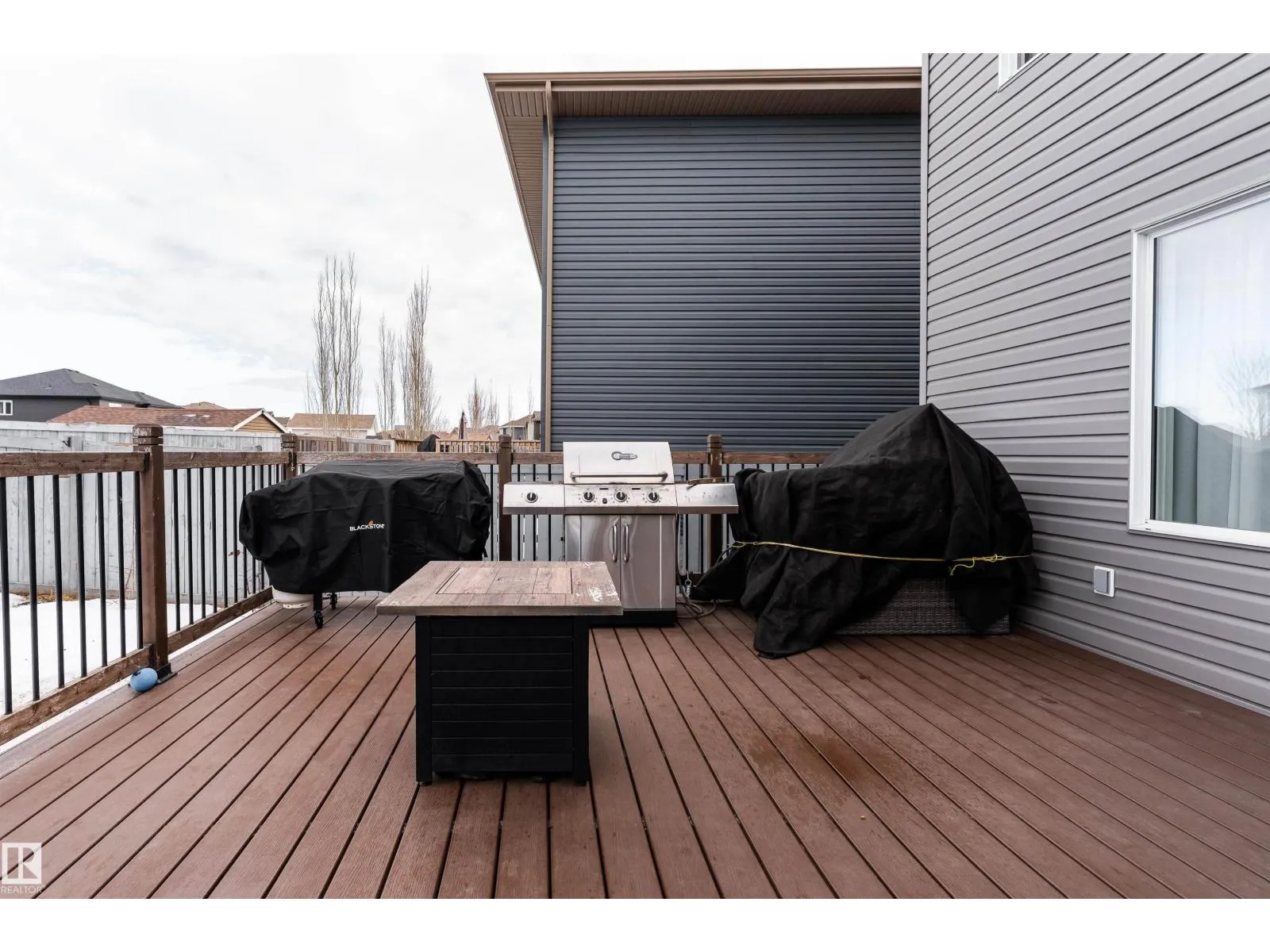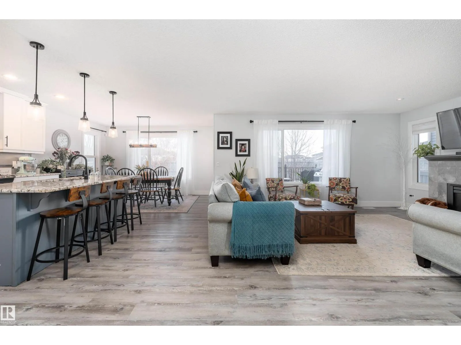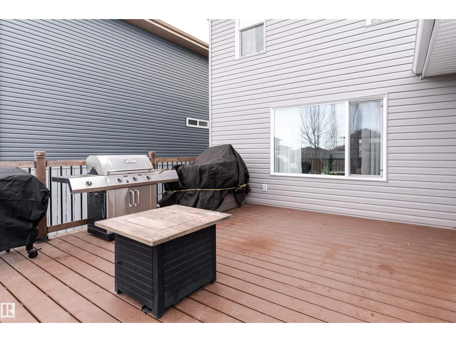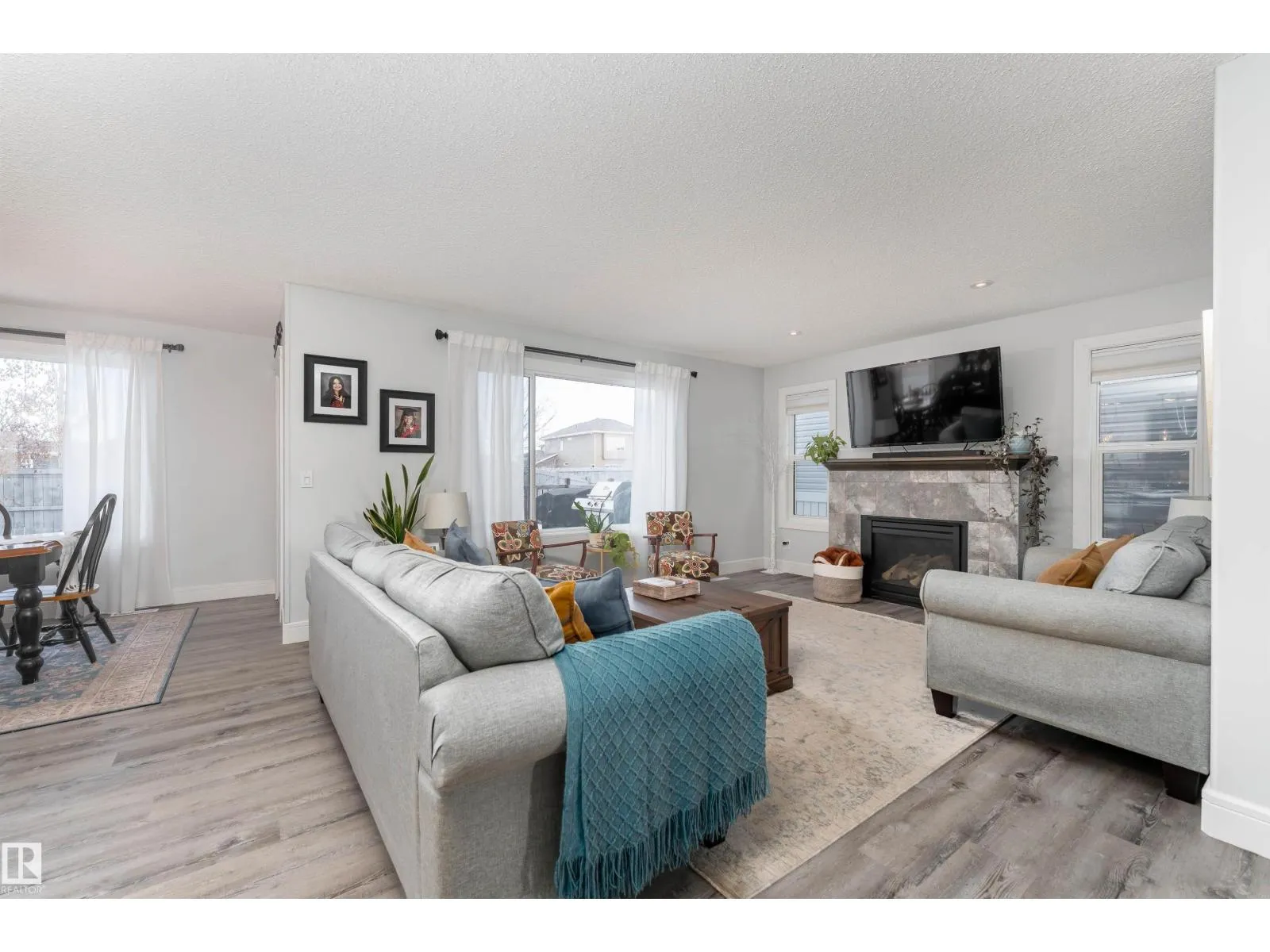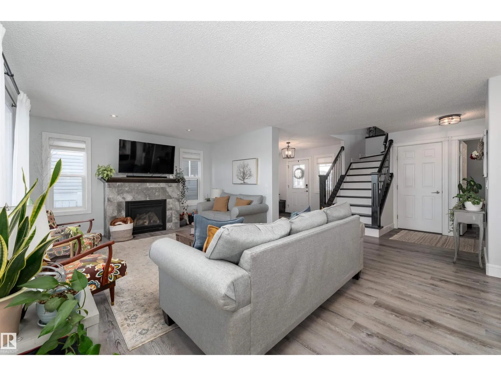 This beautiful home is located in Southfort Meadows in Fort Saskatchewan! The main floor features an open concept with updated vinyl plank flooring the living room featuring a gas fireplace, beautiful white kitchen cabinets with granite countertops. All appliances come with including a beautiful gas range. The dining room has a garden door to the spacious composite deck for those summer nights. The dog run is built in for you already and the yard is spacious without back neighbours looking directly in on you. A 2-pc bath and main floor laundry complete this level. The upper floor has a large bonus room at the front of the house, primary bedroom with a beautiful 5 pc ensuite, 2 more bedrooms and a large 4 pc main bath (perfect for sharing). The fully finished basement is complete with rec room, 4th bedroom and a 3 piece bath. A/C and garage heat included in the sale. (id:27476)