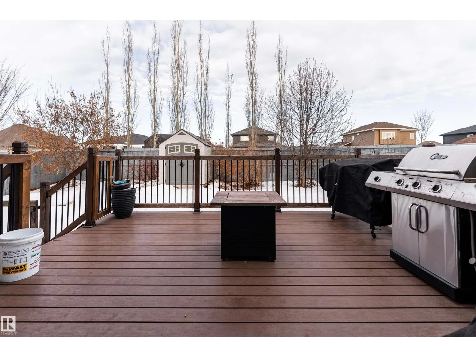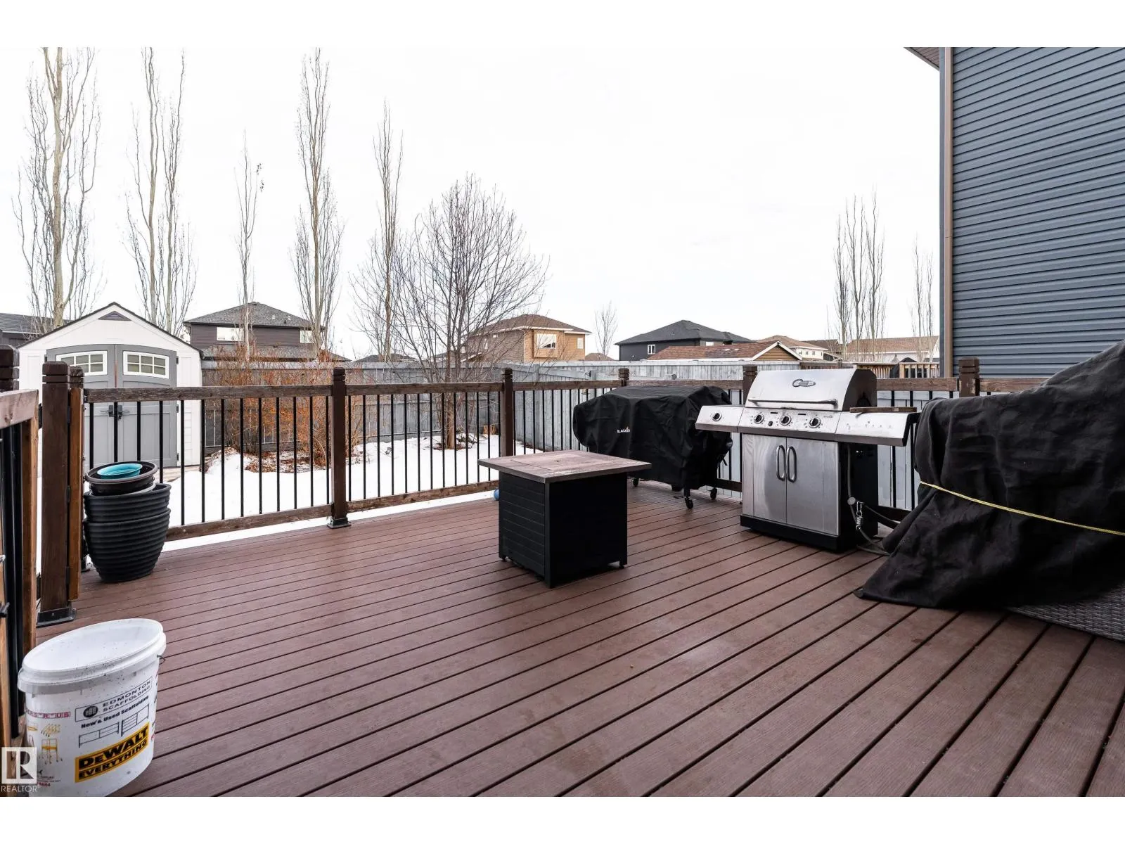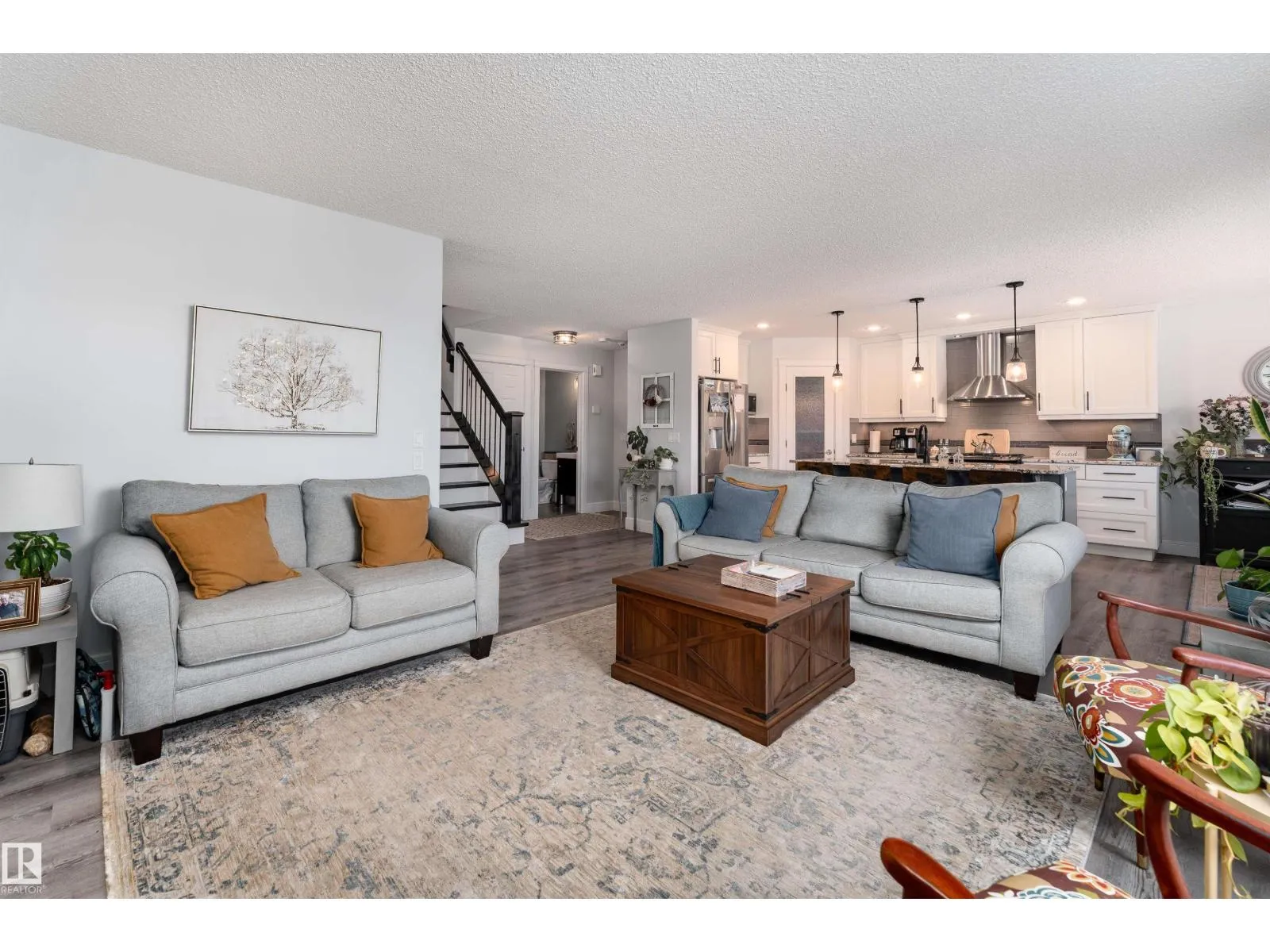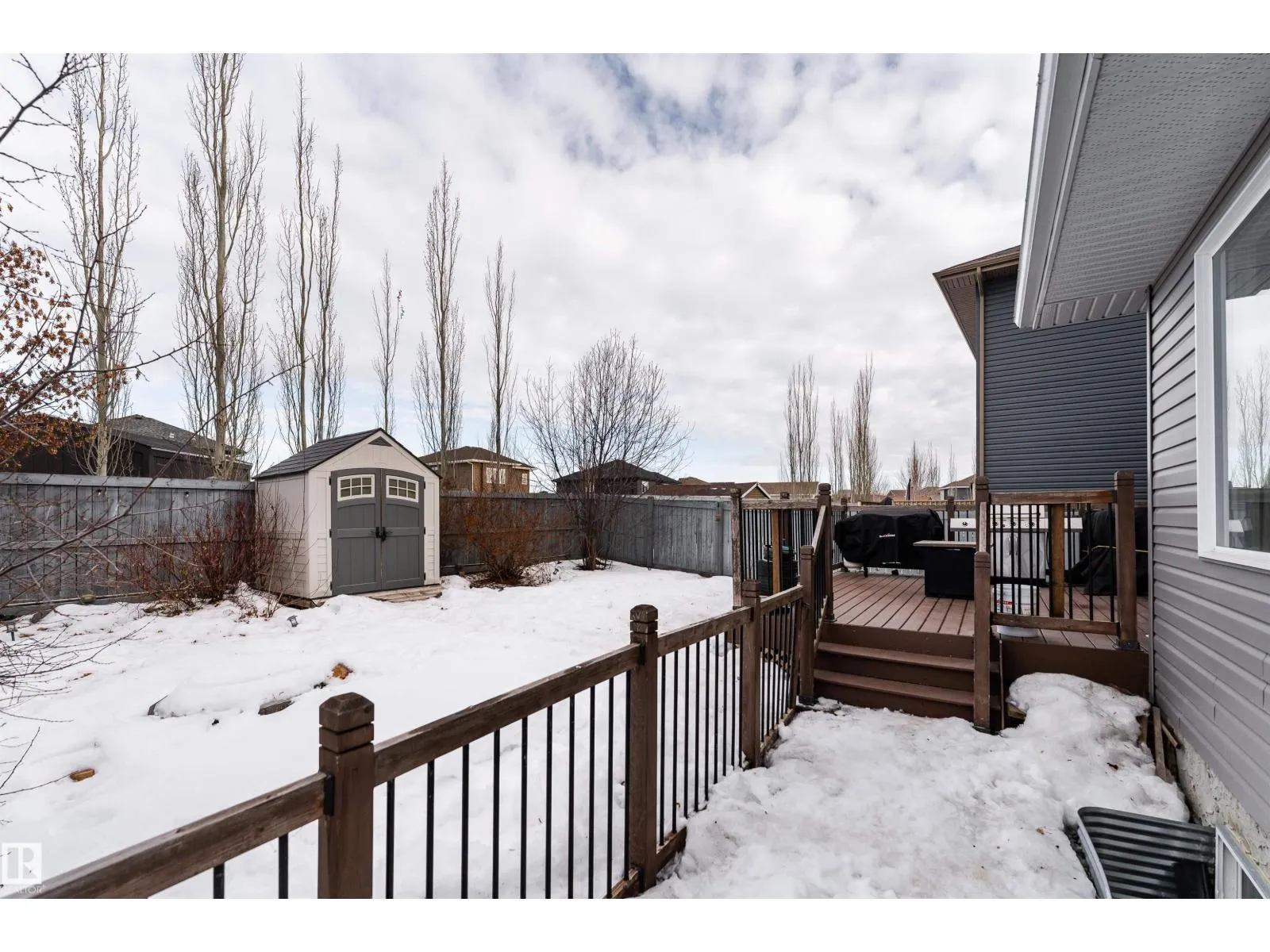 This beautiful home is located in Southfort Meadows in Fort Saskatchewan! The main floor features an open concept with updated vinyl plank flooring the living room featuring a gas fireplace, beautiful white kitchen cabinets with granite countertops. All appliances come with including a beautiful gas range. The dining room has a garden door to the spacious composite deck for those summer nights. The dog run is built in for you already and the yard is spacious without back neighbours looking directly in on you. A 2-pc bath and main floor laundry complete this level. The upper floor has a large bonus room at the front of the house, primary bedroom with a beautiful 5 pc ensuite, 2 more bedrooms and a large 4 pc main bath (perfect for sharing). The fully finished basement is complete with rec room, 4th bedroom and a 3 piece bath. A/C and garage heat included in the sale. (id:27476)