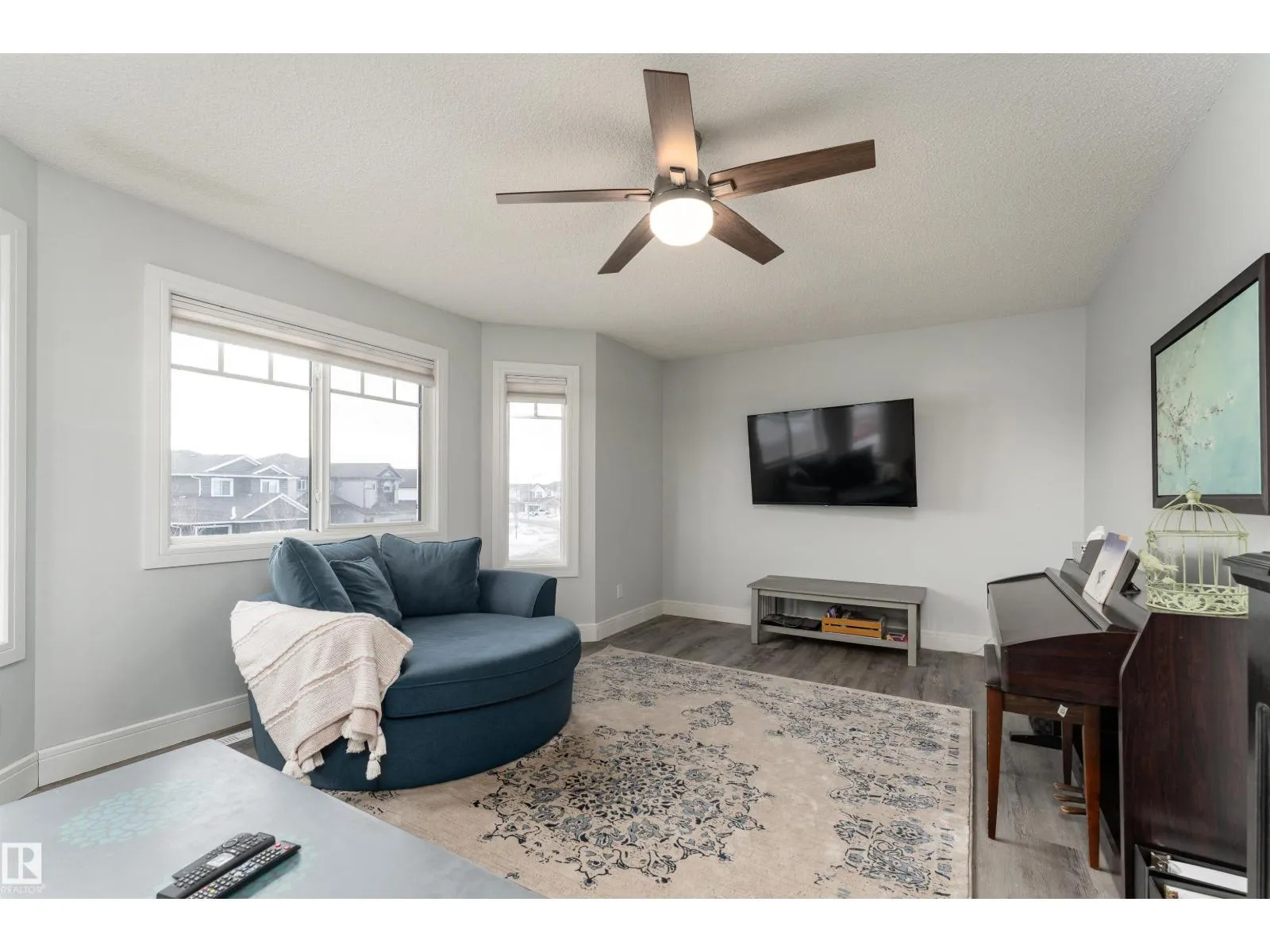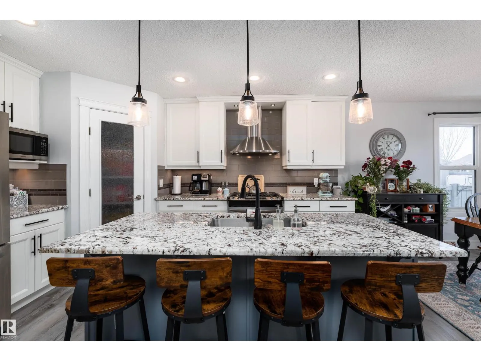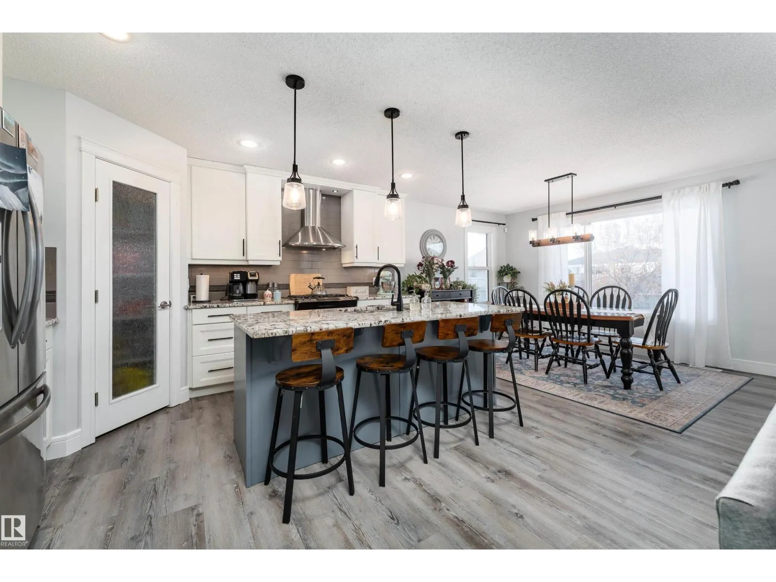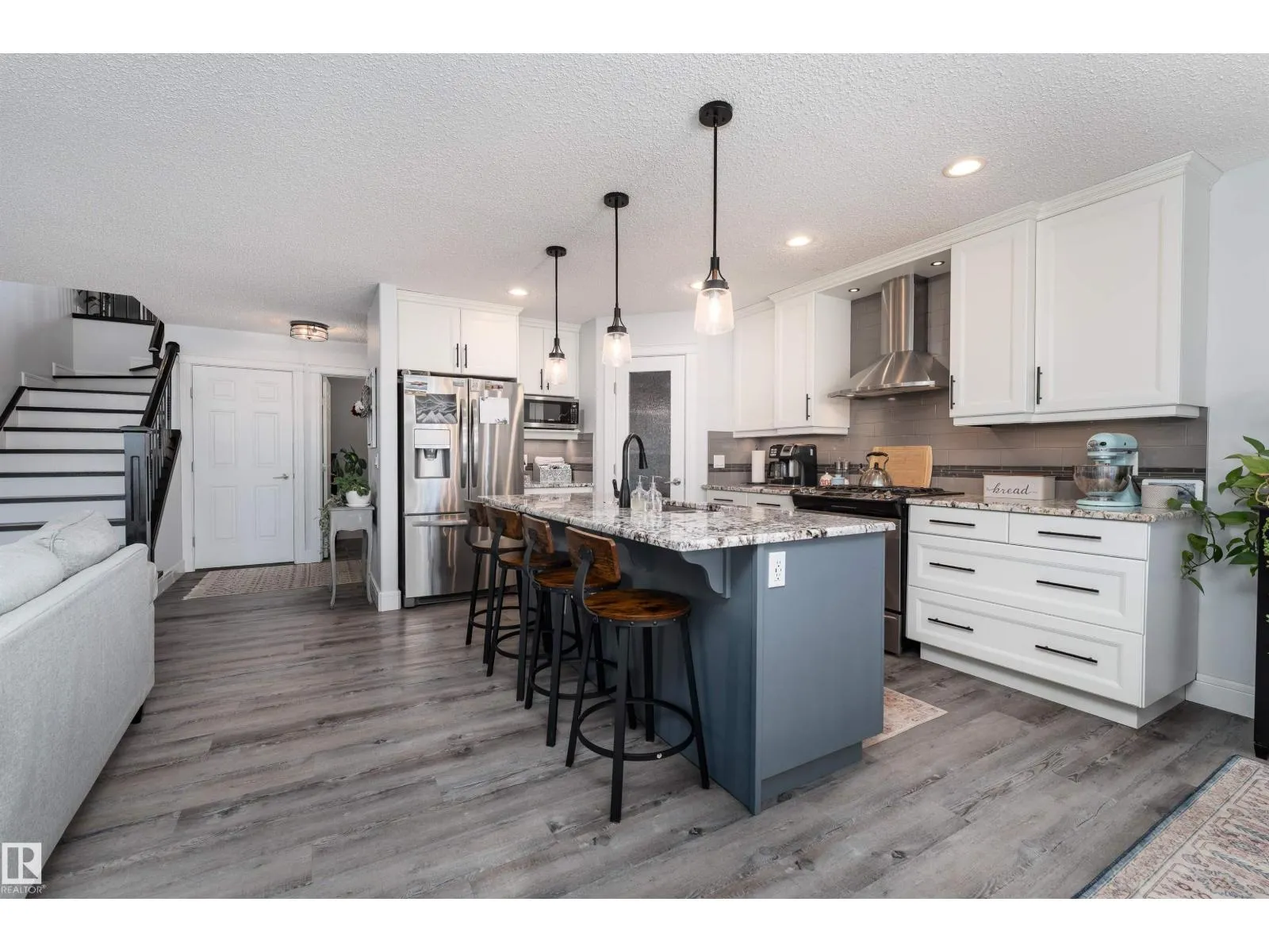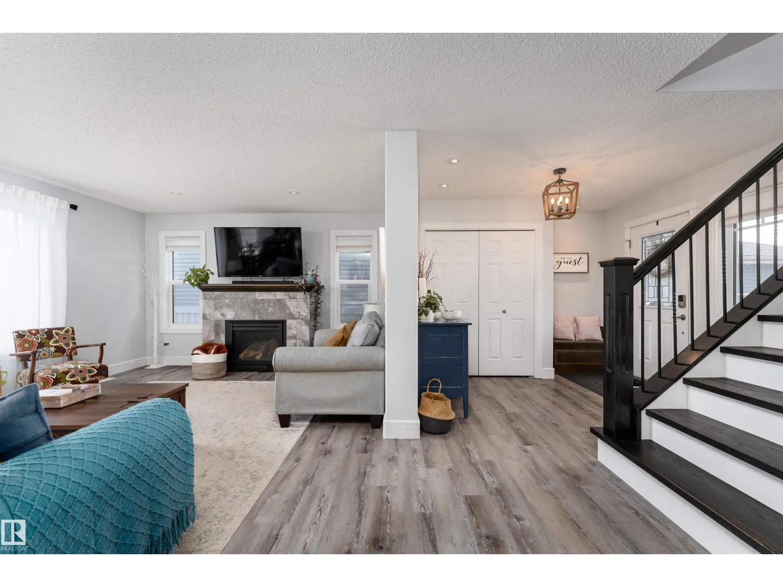 This beautiful home is located in Southfort Meadows in Fort Saskatchewan! The main floor features an open concept with updated vinyl plank flooring the living room featuring a gas fireplace, beautiful white kitchen cabinets with granite countertops. All appliances come with including a beautiful gas range. The dining room has a garden door to the spacious composite deck for those summer nights. The dog run is built in for you already and the yard is spacious without back neighbours looking directly in on you. A 2-pc bath and main floor laundry complete this level. The upper floor has a large bonus room at the front of the house, primary bedroom with a beautiful 5 pc ensuite, 2 more bedrooms and a large 4 pc main bath (perfect for sharing). The fully finished basement is complete with rec room, 4th bedroom and a 3 piece bath. A/C and garage heat included in the sale. (id:27476)