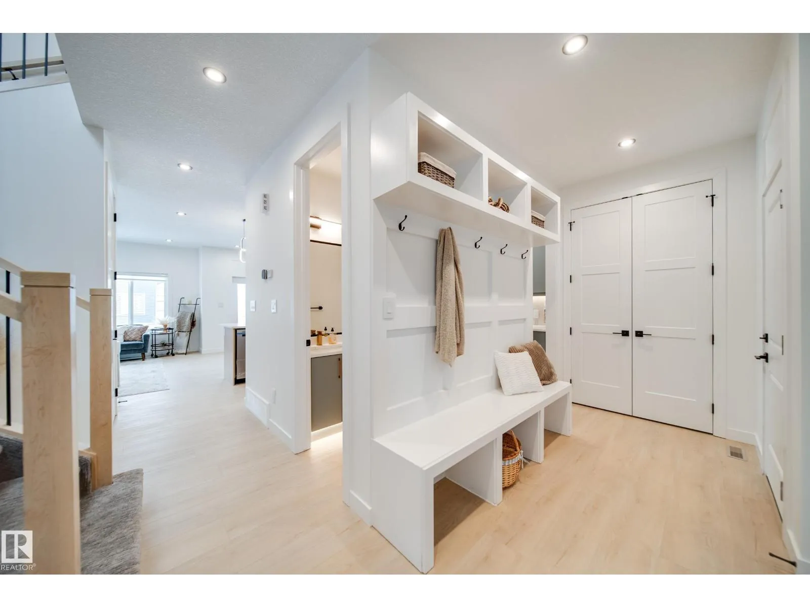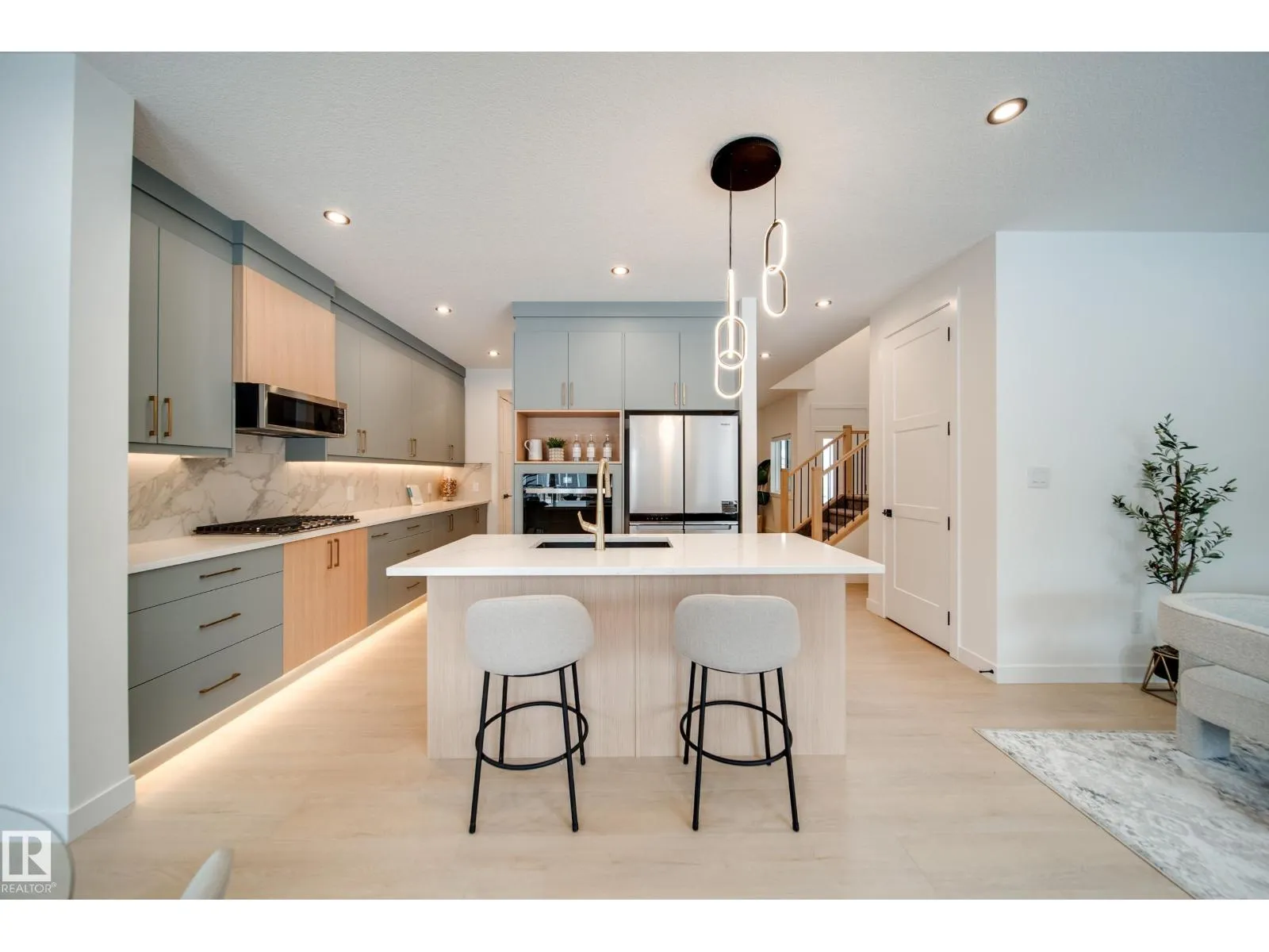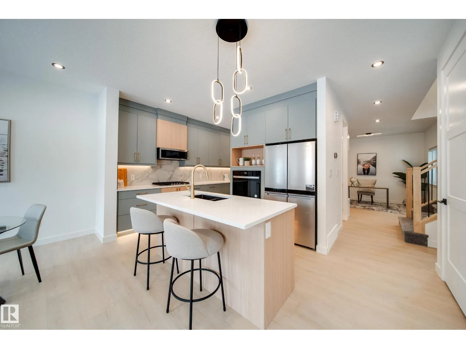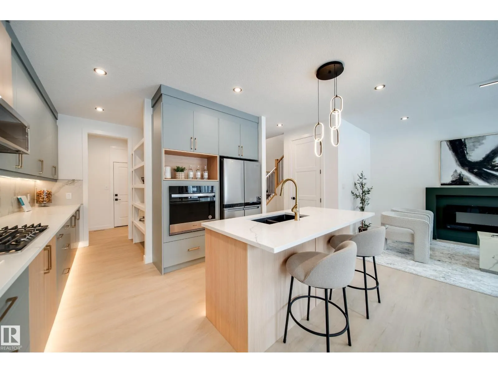 This professionally curated BRAND NEW half duplex greets you w/ a GRAND open-to-above entrance & a large front foyer that can easily accommodate an open concept office. Loaded with UPGRADES including WINDOW COVERINGS and WHIRLPOOL APPLIANCES! Enjoy 9' ceilings, 8' doors, LVP flooring, maple railing & Ecobee wifi thermostat. The kitchen impresses w/EXTENDED walk through pantry, QUARTZ countertops, UPGRADED cabinetry, tile backsplash, GAS cooktop & built-in wall oven. The bright open concept living & dining area is anchored by a cozy electric fireplace & feature wall, creating the perfect space to unwind. Upstairs, find 3 generous bedrooms & 2 bathrooms w/TILE SURROUND showers including a primary retreat w/ WIC & 3pc ensuite, plus laundry w/SINK & built in cabinetry & SPACIOUS bonus rm. A SIDE ENTRANCE to the unfinished basement awaits your personal touch. An OVERSIZED DOUBLE attached garage w/drain & extended driveway provides extra parking. Step outside to your yard & private deck w/glass privacy panels. (id:27476)