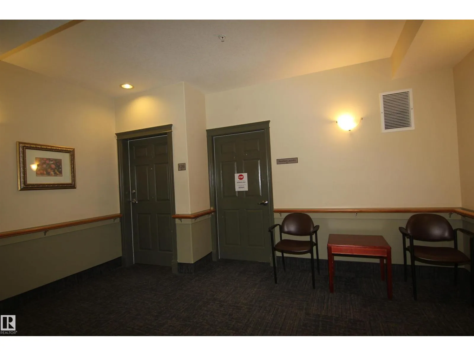 Ideal main floor 1-bedroom condo with quick access to parking and a private concrete patio for a small table and chairs. Bright eat-in kitchen with ample cabinetry and counter space, plus newer ceramic top stove and fridge. Spacious bedroom and 3-piece bath with wide doorway for wheelchair/walker accessibility. Luxurious vinal plank flooring, Newer fridge, electric stove, backsplash, Hunter Douglas blinds, wood baseboards and air-conditioning. Monthly fee of $1,106.50 includes $686.50 condo fee (heat, water, cable, insurance, exterior maintenance, reserve fund, full building amenities) plus $420 meal/service package featuring $12/day meal credit, 24-hour medical monitoring pendant, bi-monthly housekeeping and laundry service. Enjoy excellent amenities at Fort Gardens at Southfort Gardens including dining room, social programs, billiards, shuffleboard, craft room, social lounges, on site hairdresser, fitness room, chapeland guest suites (nominal fee). 15-day possession available! (id:27476)