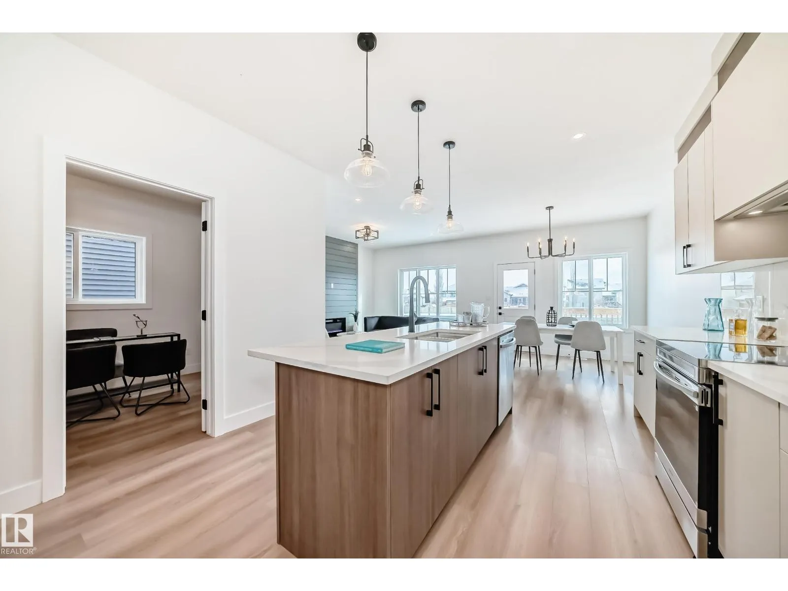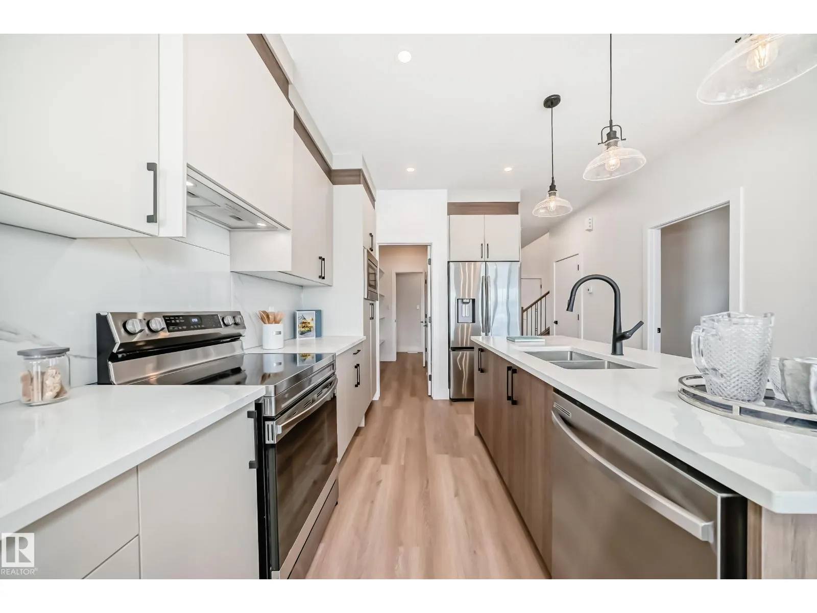 Stunning new 1943 sqft home available in South Pointe! This home features an open to above front entry with coat closet that leads to the mud room and walkthrough pantry into the kitchen with a huge island. Across from the kitchen is your own home office. Main floor is finished off with a perfect living room with electric fireplace feature wall, spacious dining room and a 2-piece bath. Rear entry door leads to a fully finished deck. On the second floor you have your primary bedroom with an indented ceiling, 5-piece bath, and spacious walk-in closet with MDF shelving. 2 additional bedrooms, bonus room, a full bathroom, and walk-in laundry complete the second floor. (id:27476)