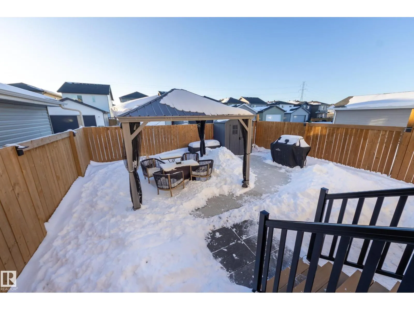 Welcome to this beautifully upgraded home close to river valley trails in Fort Saskatchewan. The bright and open main floor features a dedicated dining space and a large versatile den - perfect for a home office or bedroom - while upstairs offers three comfortable bedrooms and convenient upper-floor laundry. Downstairs, a one-bedroom legal basement suite provides immediate income potential. Since purchasing, the sellers have added valuable upgrades including: some new appliances (induction stove and LG Studio dishwasher, upstairs washer and dryer), Culligan smart water softener, smart thermostat, and motion-sensor lighting. Enjoy warm summer evenings in the fully fenced backyard featuring a composite deck with aluminum railings and a charming gazebo. The exterior is complete with landscaping, a new concrete sidewalk to the side entrance, and app-controlled LED soffit lighting for a stunning modern touch. Turnkey and move-in ready! (id:27476)