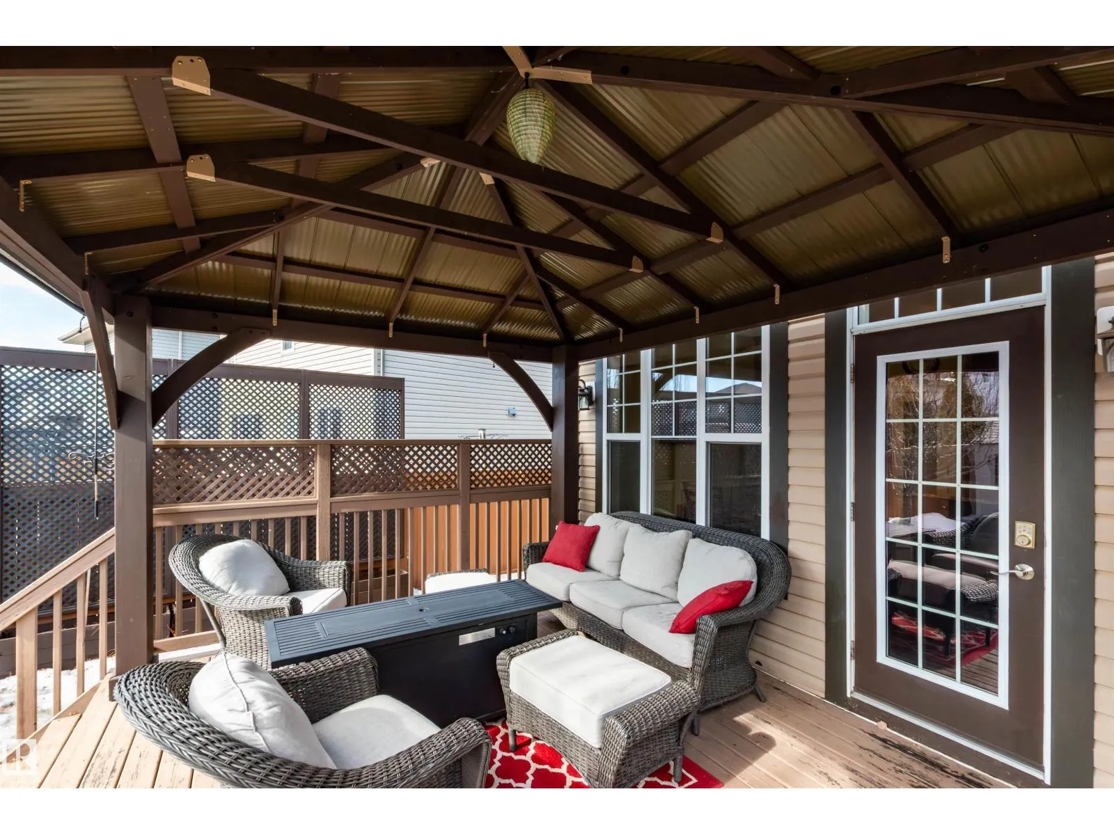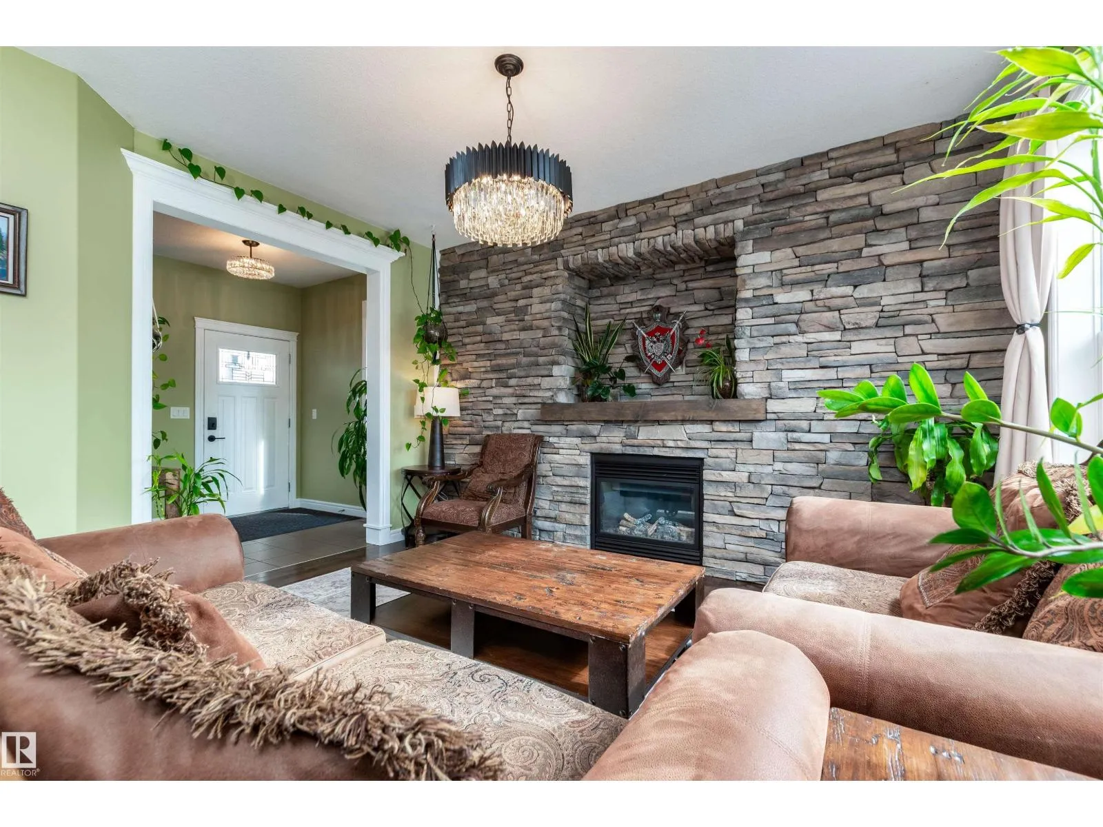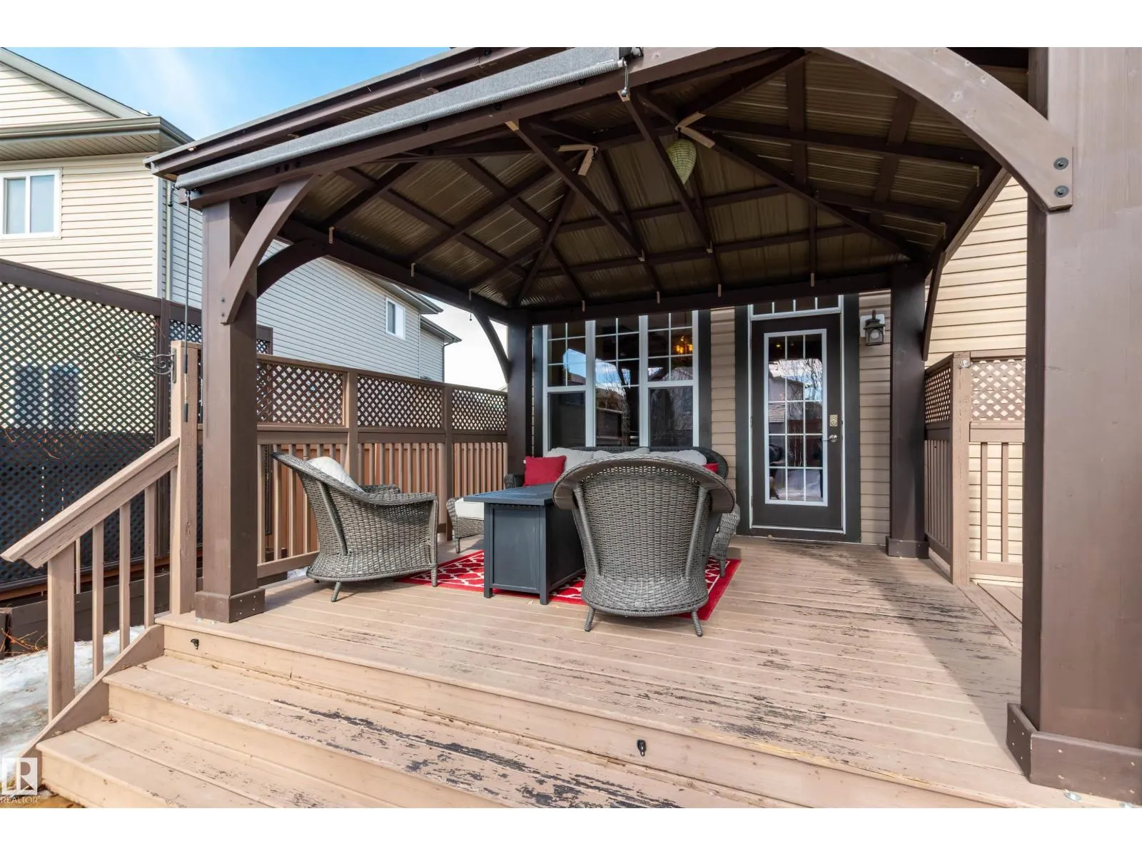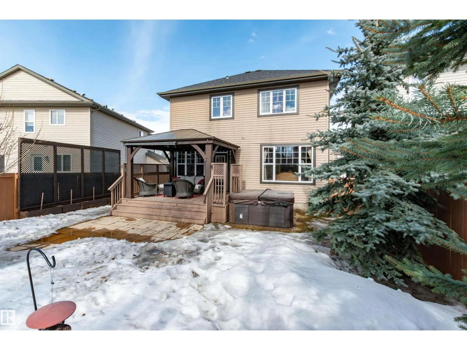 Did you say Oversized Triple Garage?? This immaculately appointed 4 bed, 3 1/2 bath 2 storey beauty, in the family friendly Fort Sask. comm. of Westpark, checks all the boxes. Once you get past the impressive and uber functional triple garage (heated and w/ 2 fl. drains and h/c water bibs), you are presented with a luxurious open concept main floor living, kitch. and eating space. The FULL WALL, floor to ceiling stone fireplace offers a unique living and entertainment area normally reserved for exclusive estate properties. So much natural light!! A well appointed kitchen with gas range, ceiling high cabinets, bar seating, and granite counters, looks directly out to an amazing outdoor gazebo covered deck w/ step in tub. The large primary bed. w/ luxury 4 pce ensuite (sep. tub and shower) sets the romantic mood. Spacious bonus room area for family entertainment. Fully finished basement w/ wet bar, and an additional bedr., full bath, and family room. Close to parks and walking trails!! Raise a family here!! (id:27476)