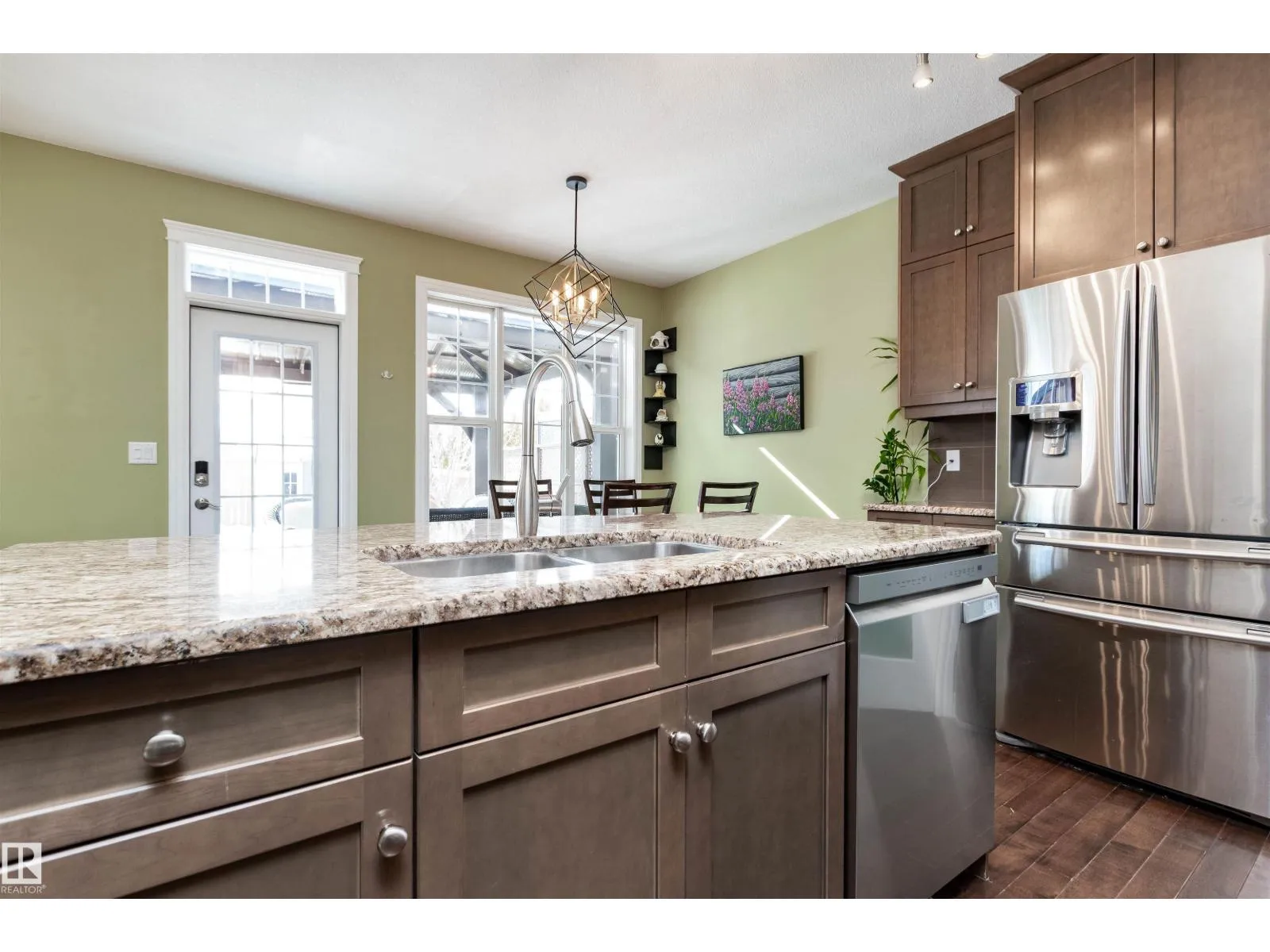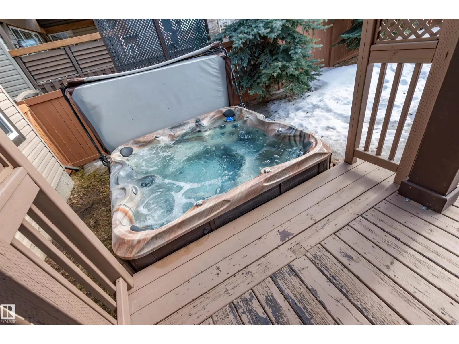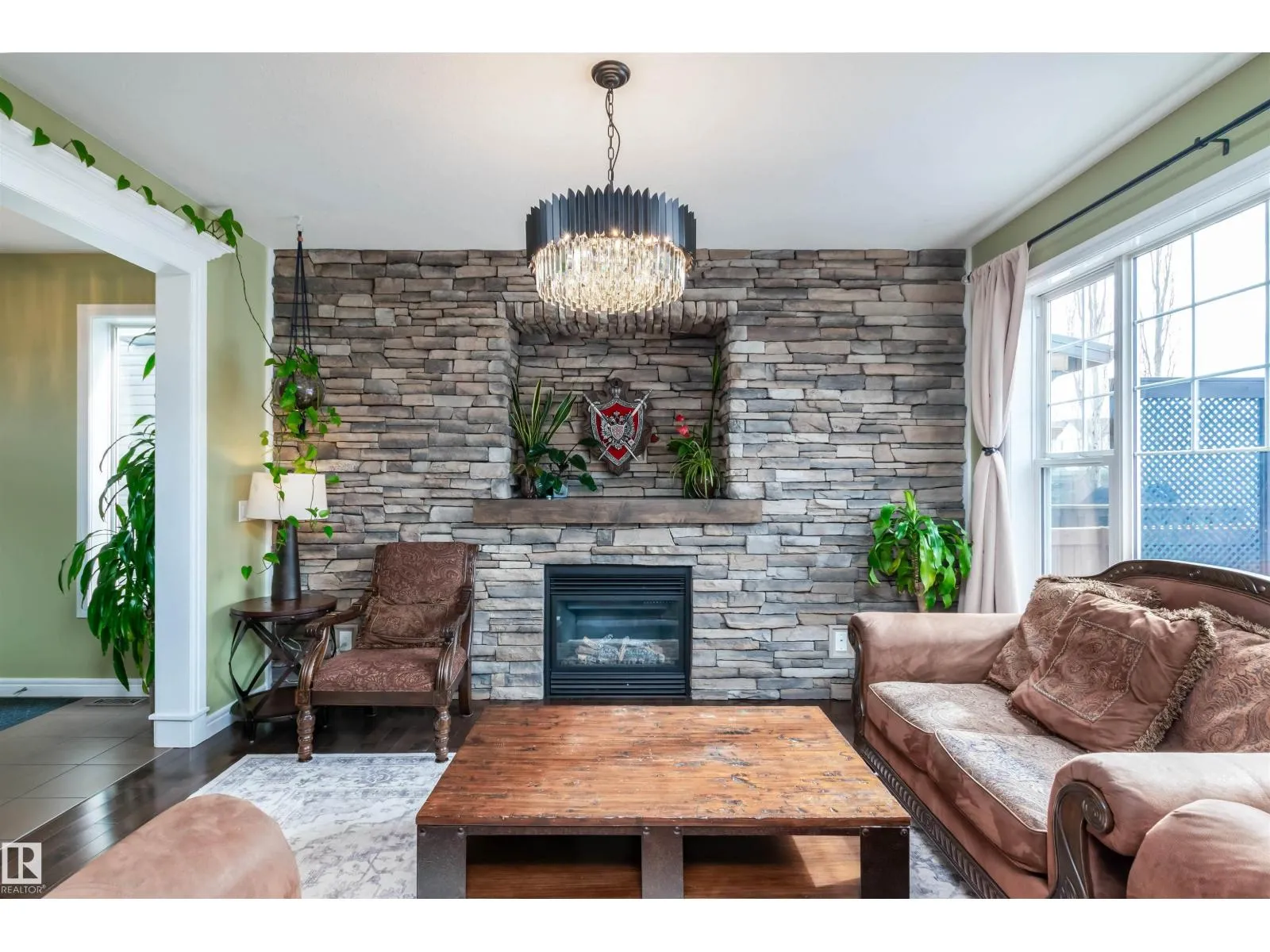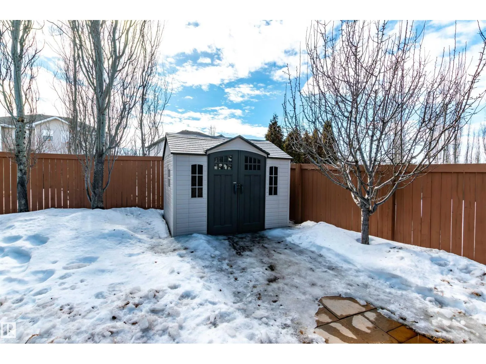 Did you say Oversized Triple Garage?? This immaculately appointed 4 bed, 3 1/2 bath 2 storey beauty, in the family friendly Fort Sask. comm. of Westpark, checks all the boxes. Once you get past the impressive and uber functional triple garage (heated and w/ 2 fl. drains and h/c water bibs), you are presented with a luxurious open concept main floor living, kitch. and eating space. The FULL WALL, floor to ceiling stone fireplace offers a unique living and entertainment area normally reserved for exclusive estate properties. So much natural light!! A well appointed kitchen with gas range, ceiling high cabinets, bar seating, and granite counters, looks directly out to an amazing outdoor gazebo covered deck w/ step in tub. The large primary bed. w/ luxury 4 pce ensuite (sep. tub and shower) sets the romantic mood. Spacious bonus room area for family entertainment. Fully finished basement w/ wet bar, and an additional bedr., full bath, and family room. Close to parks and walking trails!! Raise a family here!! (id:27476)