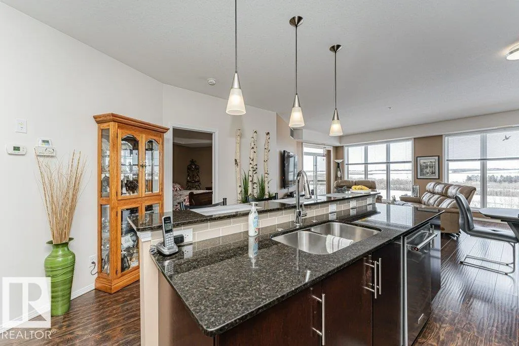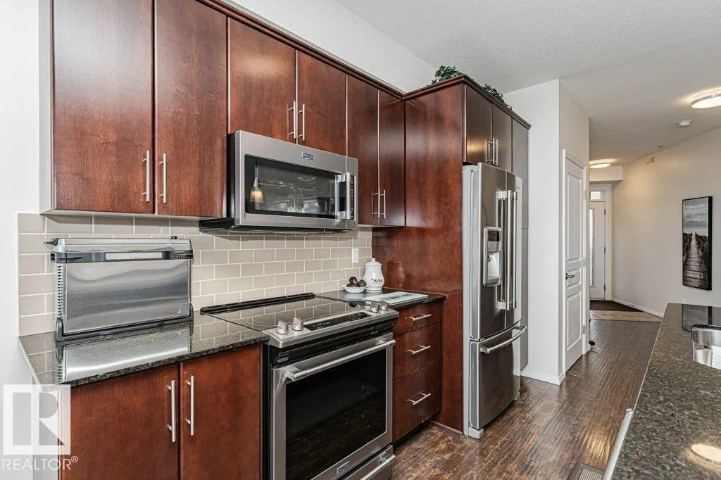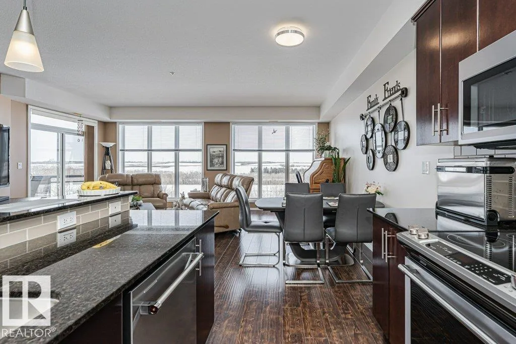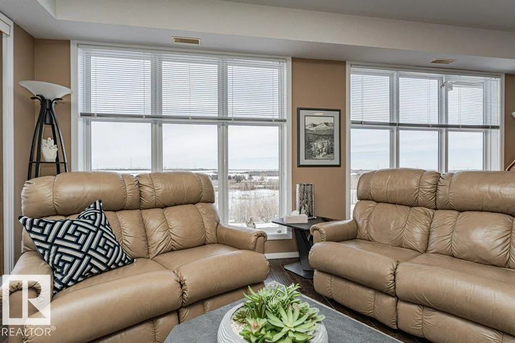 Wowâunobstructed River Valley views! Welcome to Sherridon View in sought-after Sherridon Heights. This stunning 2 bedroom, 2 bathroom condo is perfectly suited for a professional couple or empty nester seeking style and convenience. Featuring engineered Hardwood & Ceramic floors, a modern open-concept layout, and floor-to-ceiling windows that flood the space with natural light and showcase breathtaking views of the North Saskatchewan River Valley. The chef-inspired kitchen offers granite countertops and stainless steel appliances. Spacious bedrooms include a primary with full ensuite. Enjoy Central A/C, in-suite laundry, and a sunny balcony with dual gas outlets for BBQ and Fire table option â perfect for entertaining while taking in incredible sunsets. Includes TWO titled underground heated parking stalls. Steps to walking trails, parks, shopping, and public transit. Donât miss this opportunity! (id:27476)