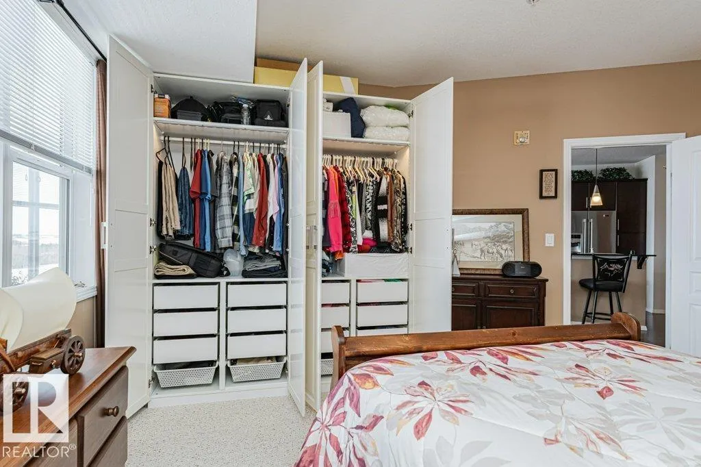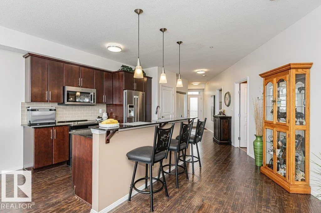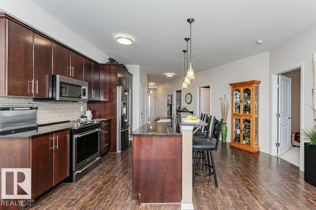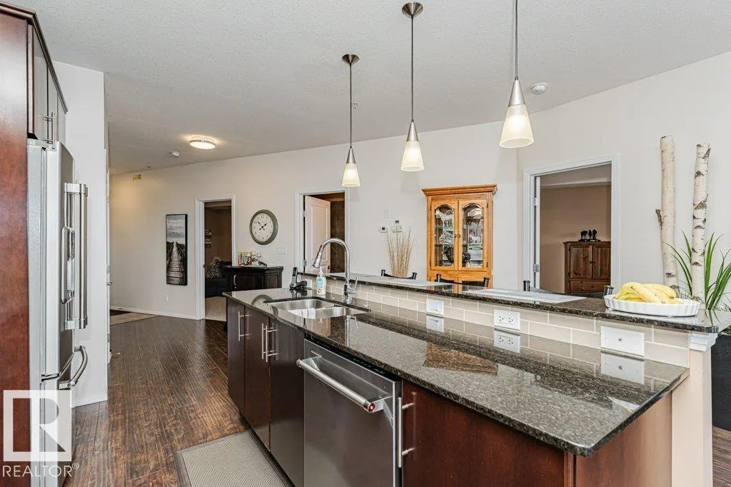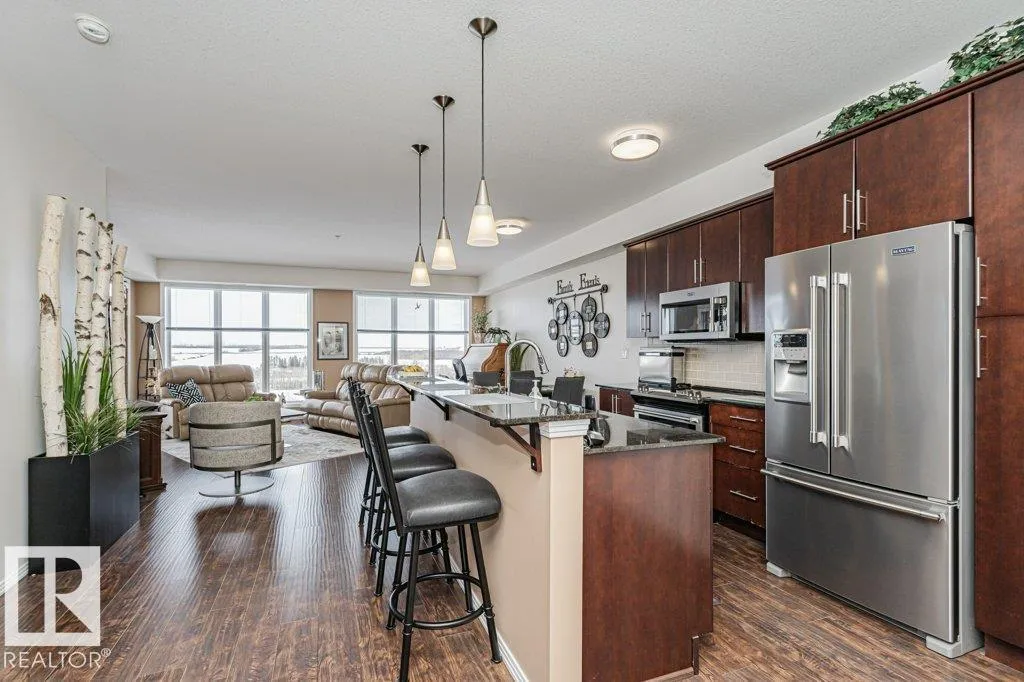 Wowâunobstructed River Valley views! Welcome to Sherridon View in sought-after Sherridon Heights. This stunning 2 bedroom, 2 bathroom condo is perfectly suited for a professional couple or empty nester seeking style and convenience. Featuring engineered Hardwood & Ceramic floors, a modern open-concept layout, and floor-to-ceiling windows that flood the space with natural light and showcase breathtaking views of the North Saskatchewan River Valley. The chef-inspired kitchen offers granite countertops and stainless steel appliances. Spacious bedrooms include a primary with full ensuite. Enjoy Central A/C, in-suite laundry, and a sunny balcony with dual gas outlets for BBQ and Fire table option â perfect for entertaining while taking in incredible sunsets. Includes TWO titled underground heated parking stalls. Steps to walking trails, parks, shopping, and public transit. Donât miss this opportunity! (id:27476)