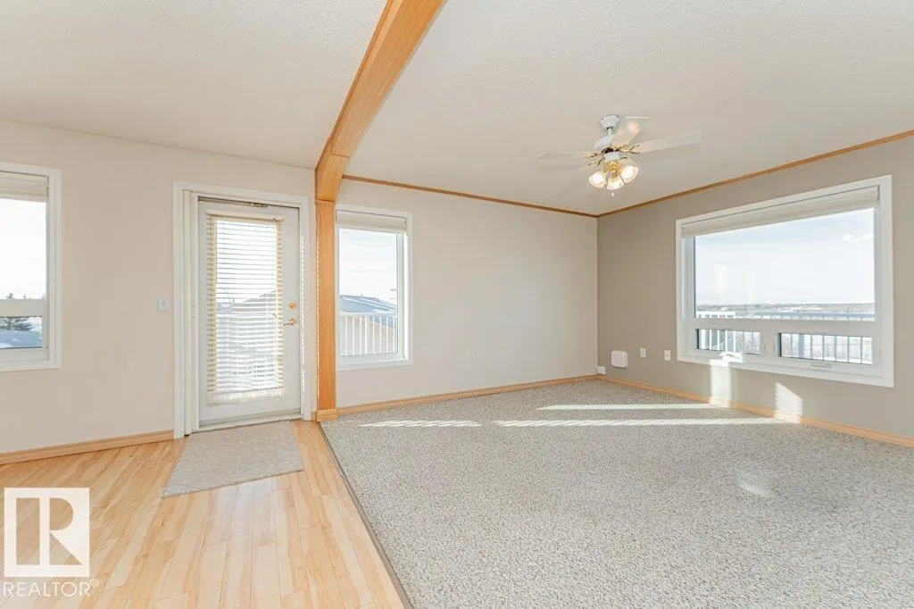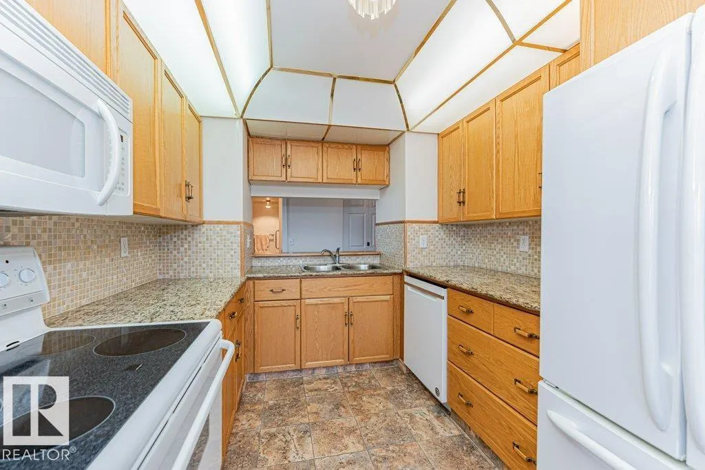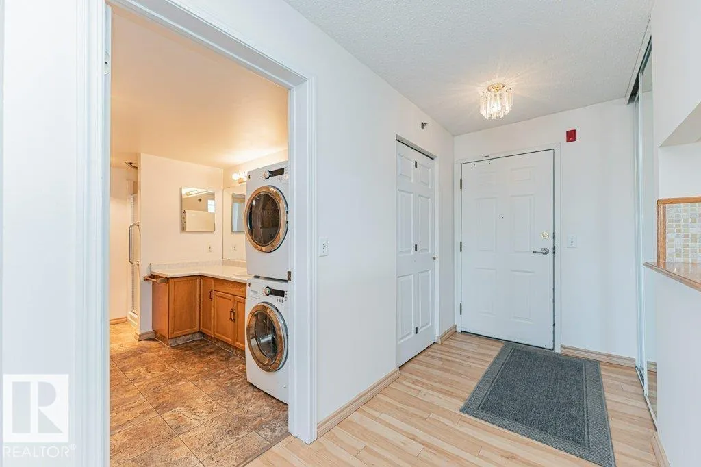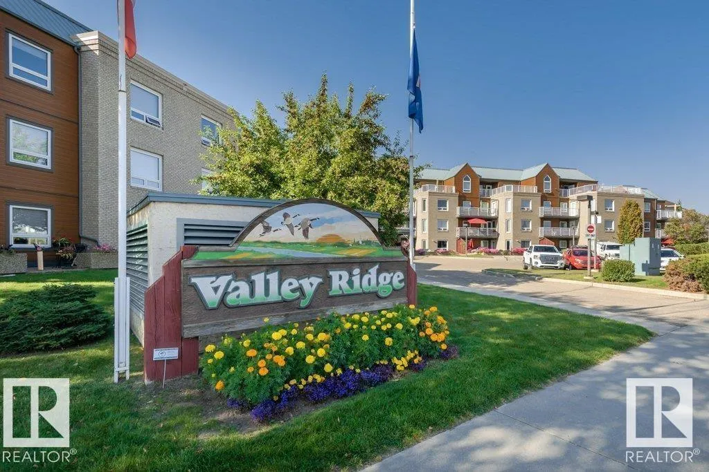 Welcome to Valley Ridgeâan exceptional 50+ community offering comfort, convenience, and lifestyle. This top-floor 2 bedroom, 1 bath condo features a rare wrap-around deck with unobstructed views of the North Saskatchewan River Valleyâperfect for enjoying peaceful mornings and stunning sunsets. Bright and move-in ready, this home includes all major appliances, in-suite laundry, and a spacious storage room. The self-managed building offers a guest suite, social room, workshop, and convenient car wash in the heated underground parkade, plus one assigned stall and storage locker in parkade. Ideally located close to parks, shopping, and public transit. Immediate possession availableâenjoy carefree living in a welcoming community! (id:27476)
